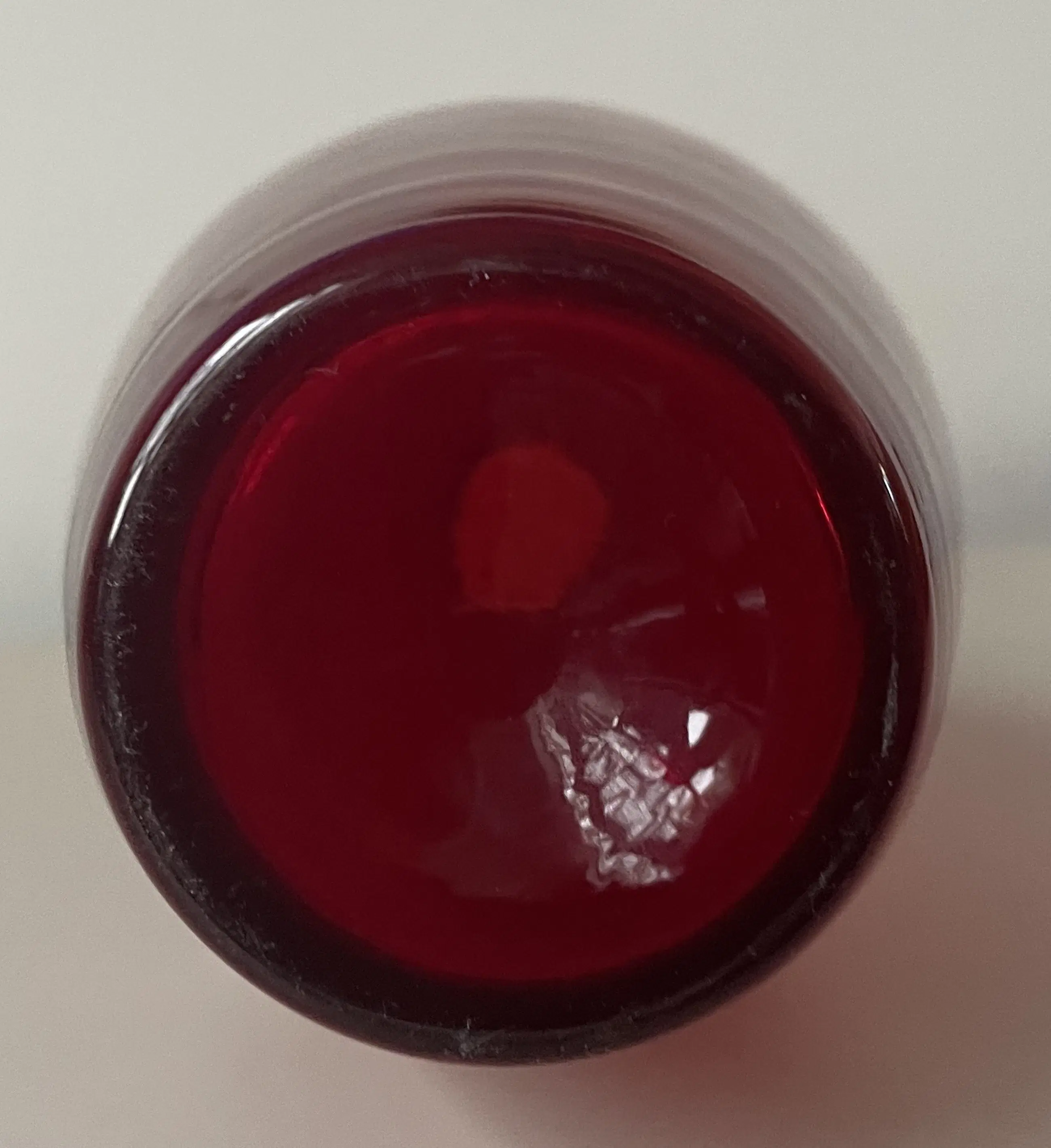 Vintage robijnrode glazen vaas ontworpen door Monica Bratt voor Reijmyre Glasbruk uit Zweden. In perfecte conditie. Niet gemerkt.