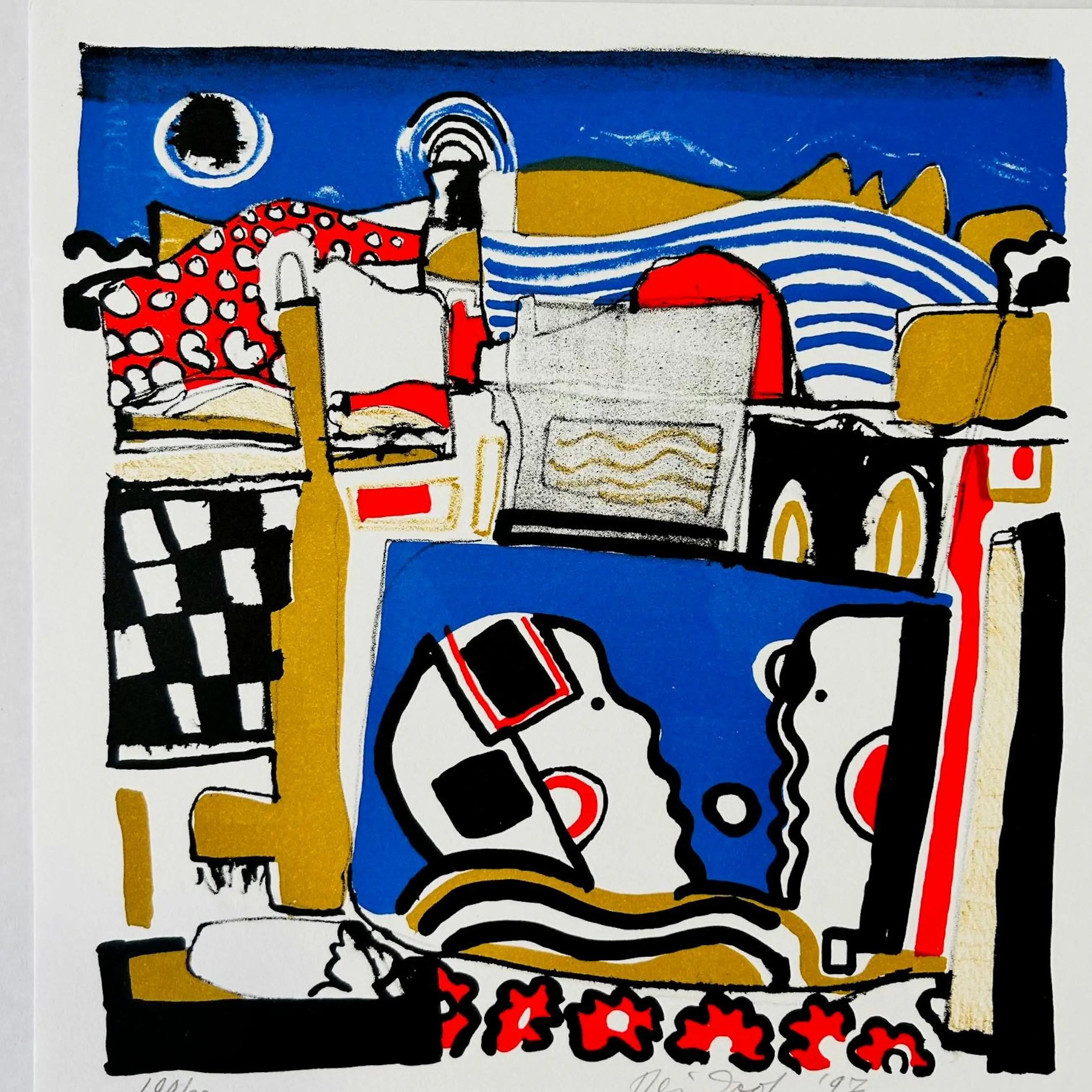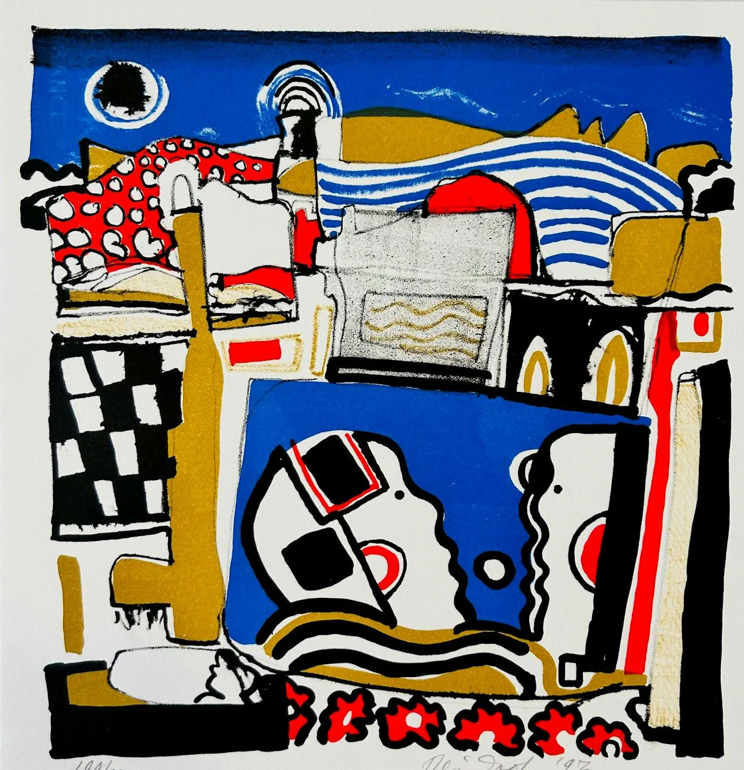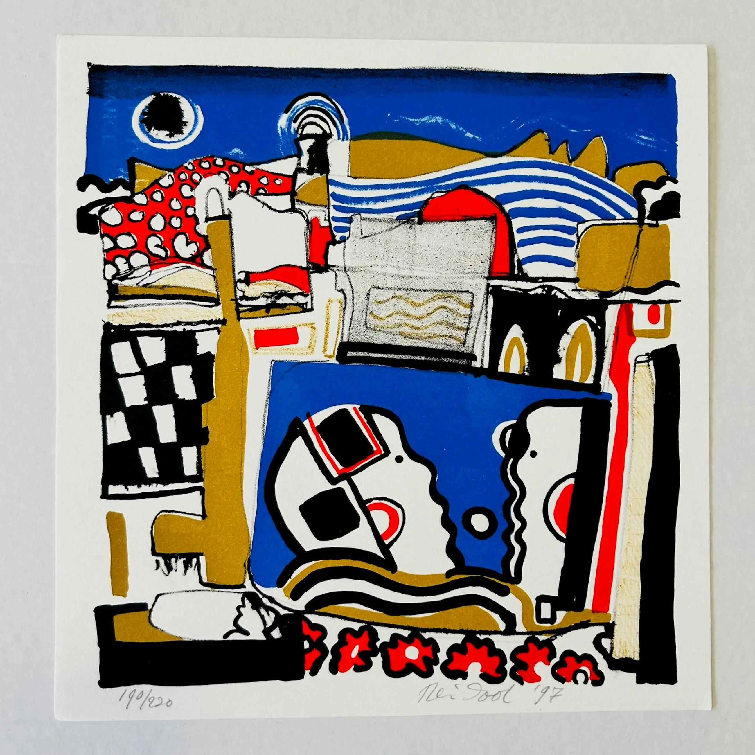 Leuk zeefdruk van Rein Dool. Gesigneerd en genummerd. Het werk kunt u vooraf komen bekijken en beoordelen. Het werk kan na aankoop afgehaald worden bij galerie Rotor in Gorinchem of per aangetekende post. Ophalen is leuker dan drinken we gelijk koffie.
