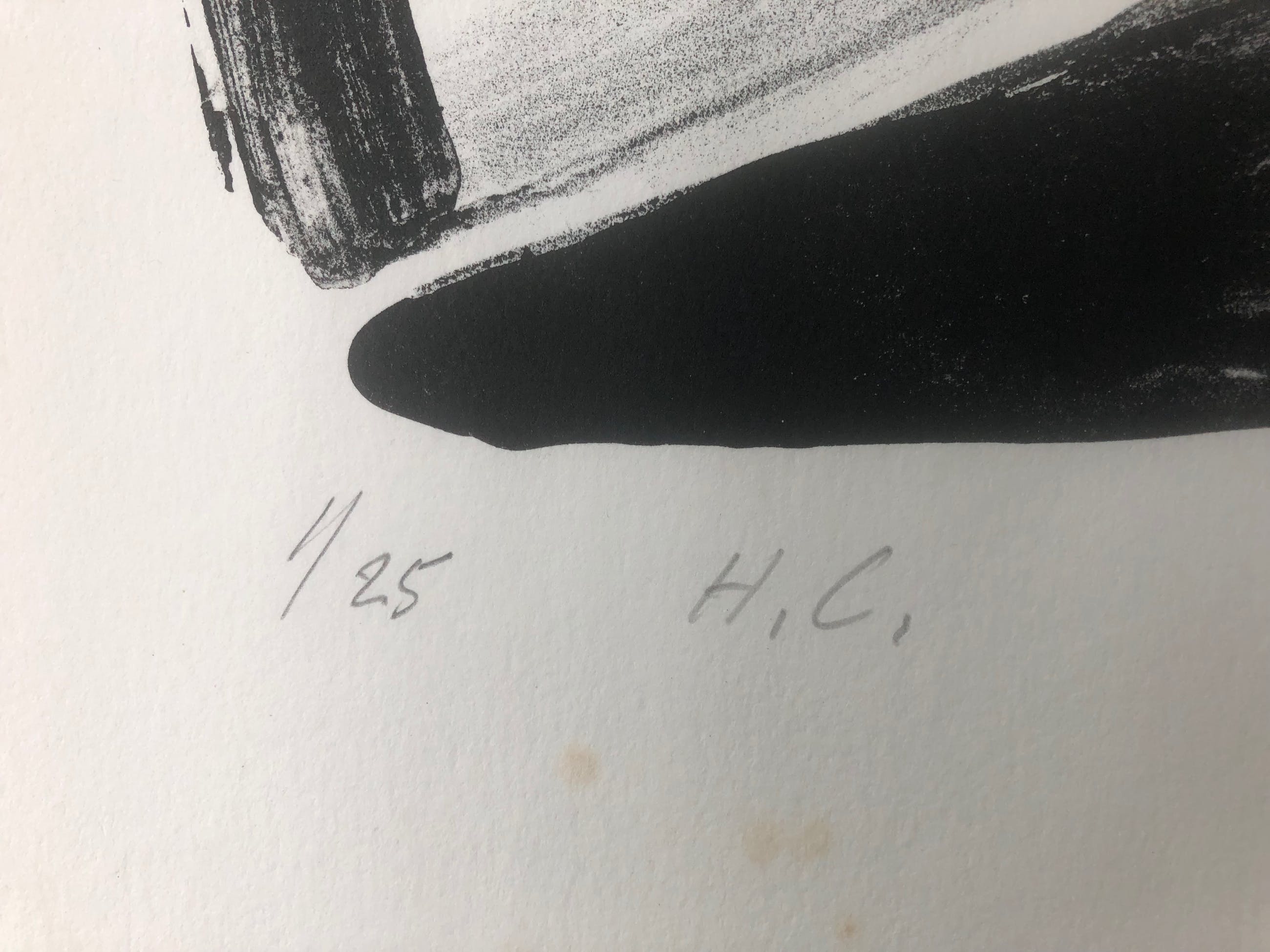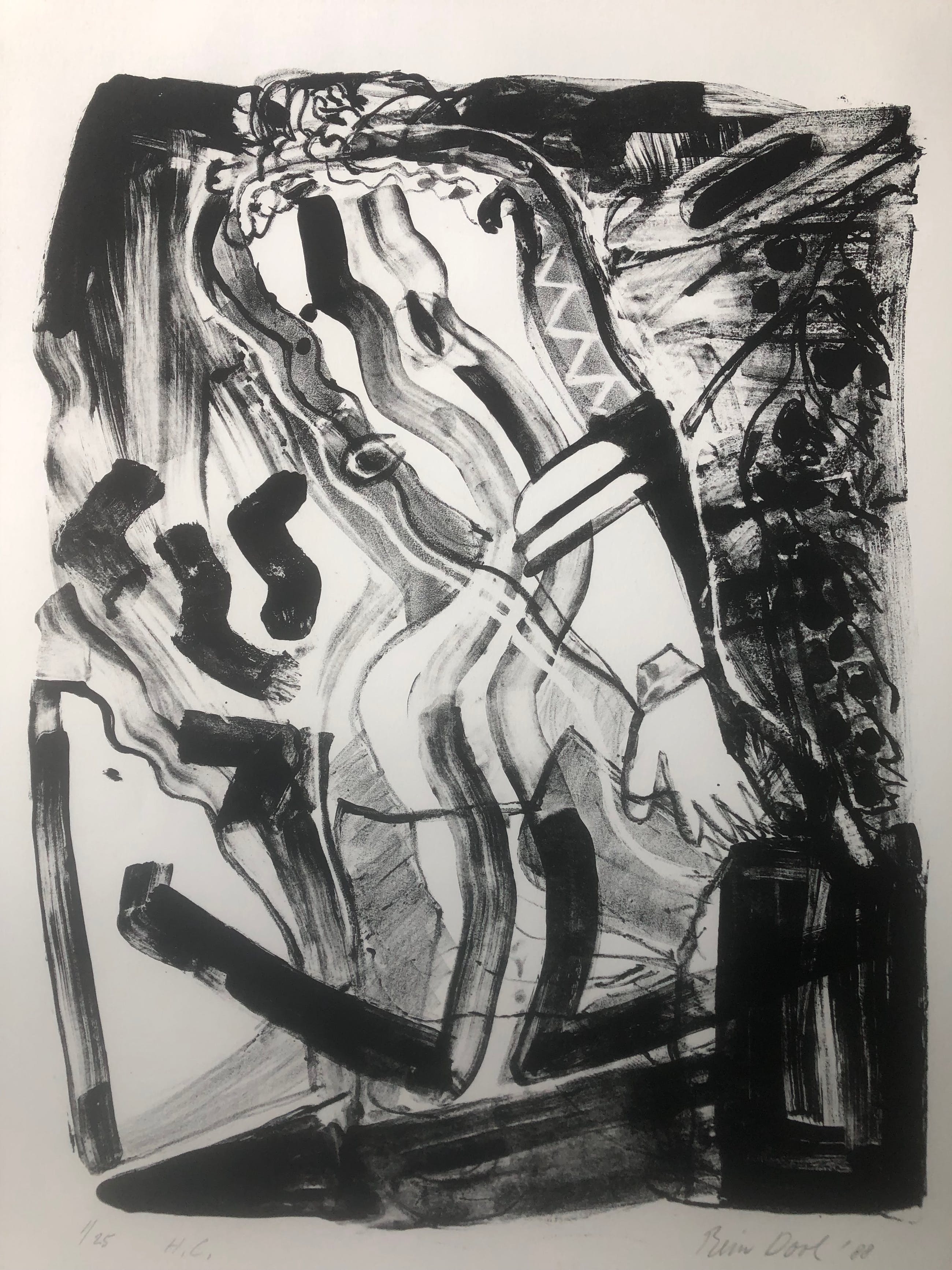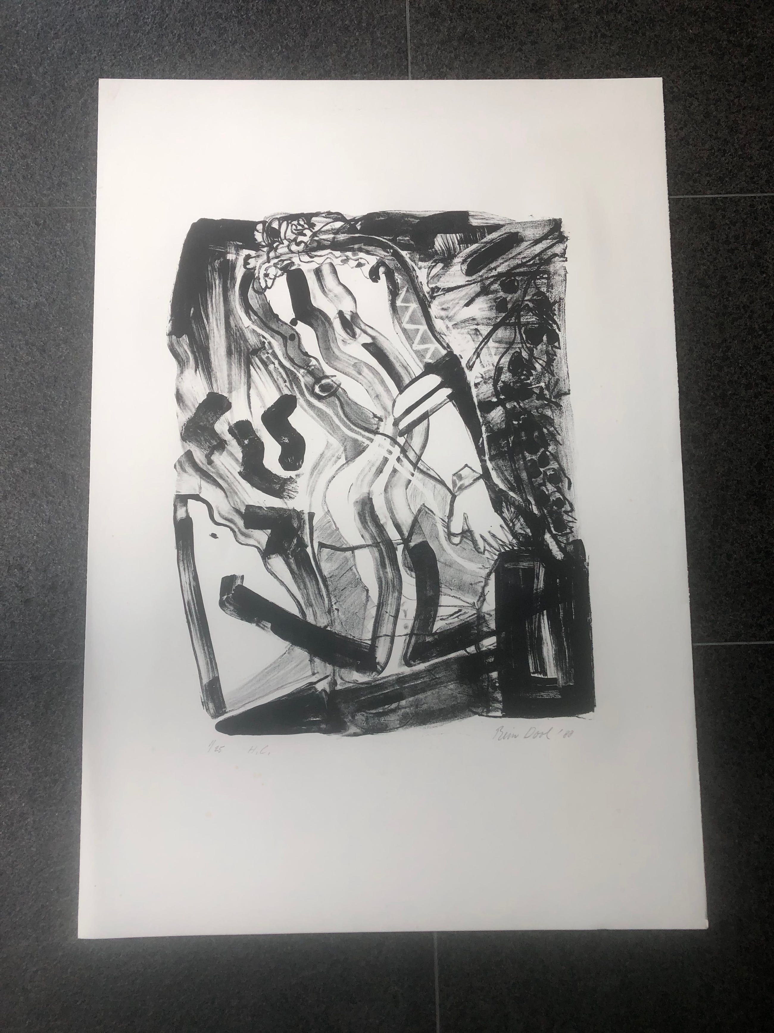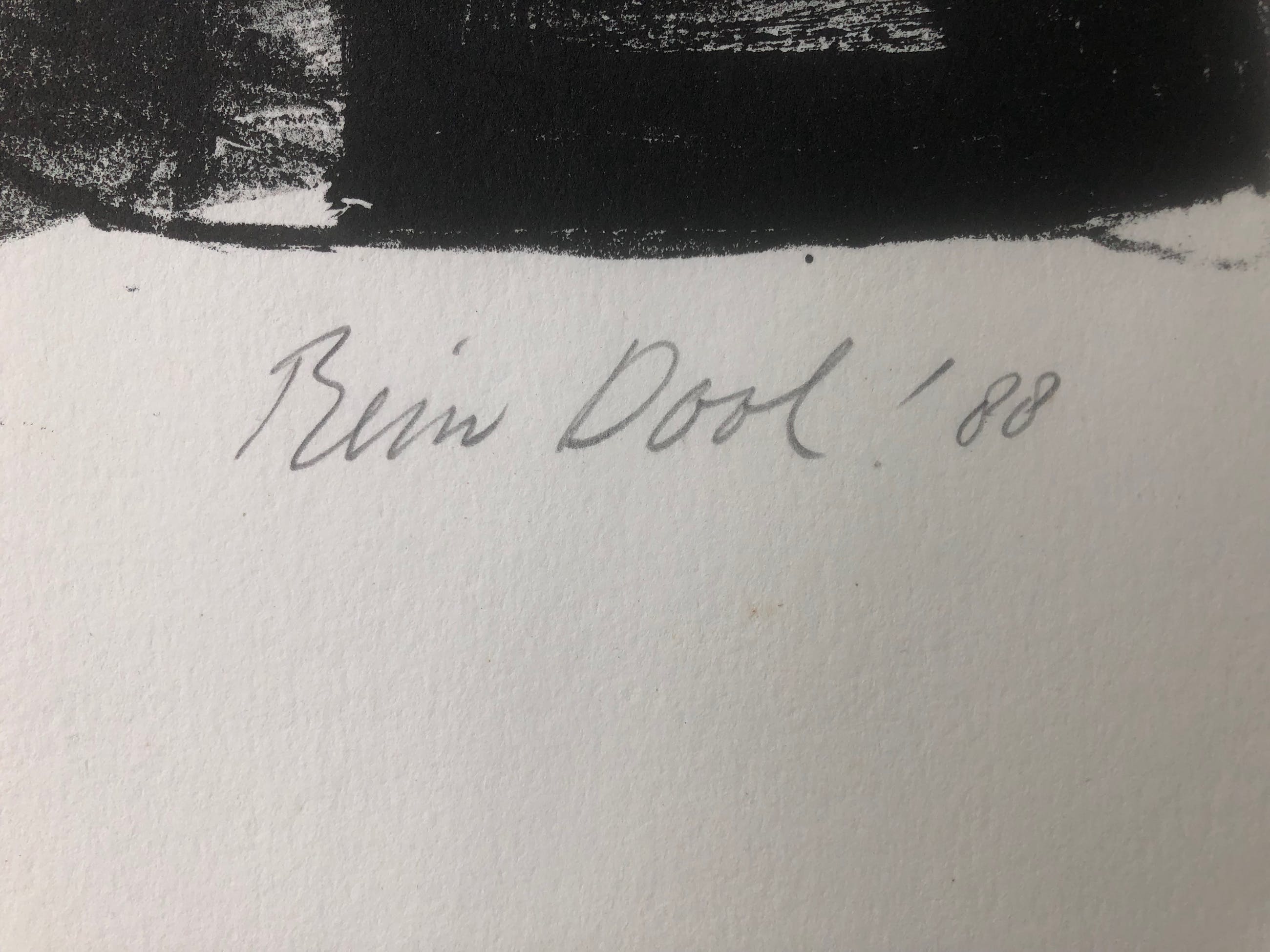 Aangeboden wordt een expressionistische steendruk van Rein Dool.