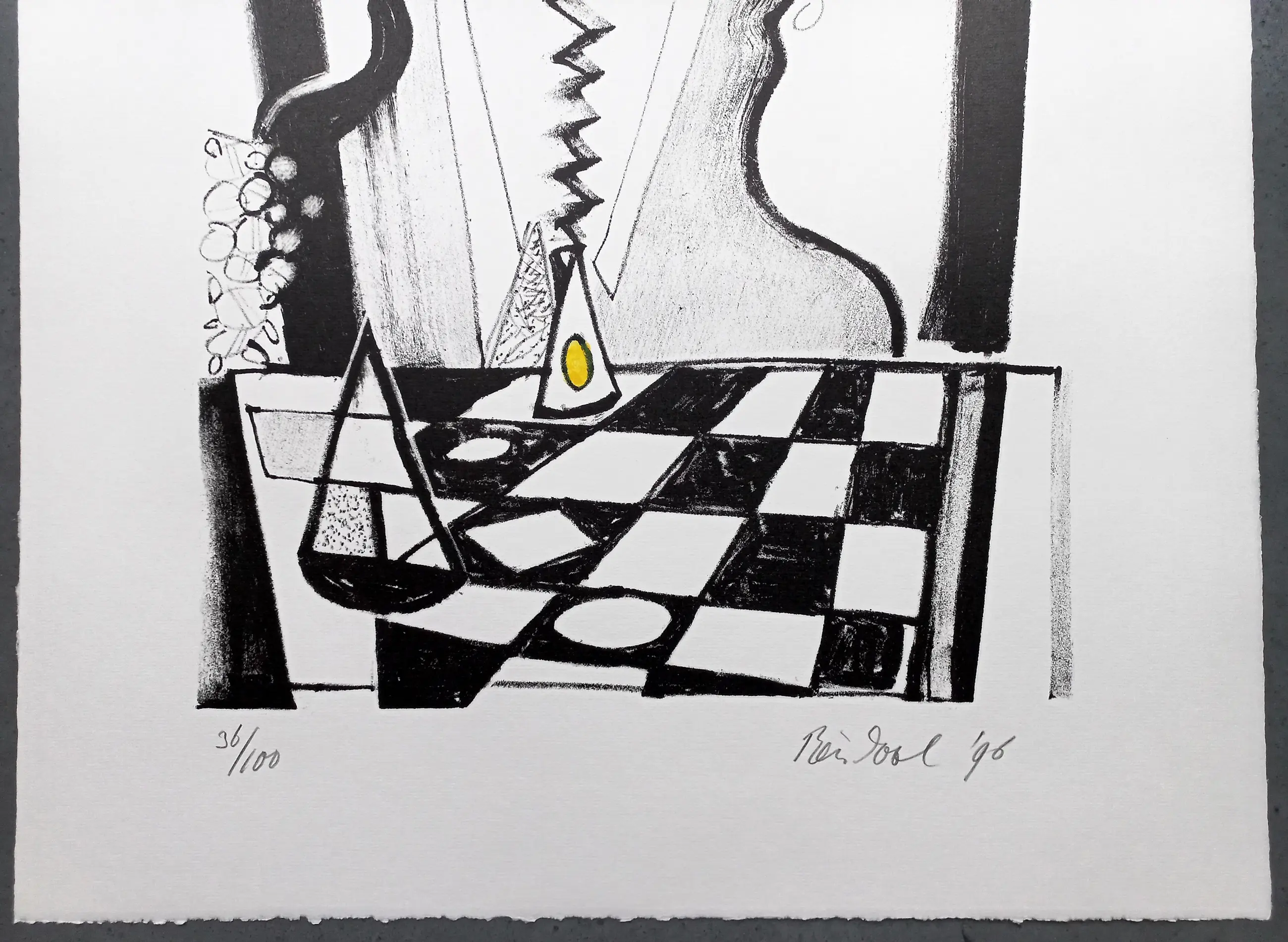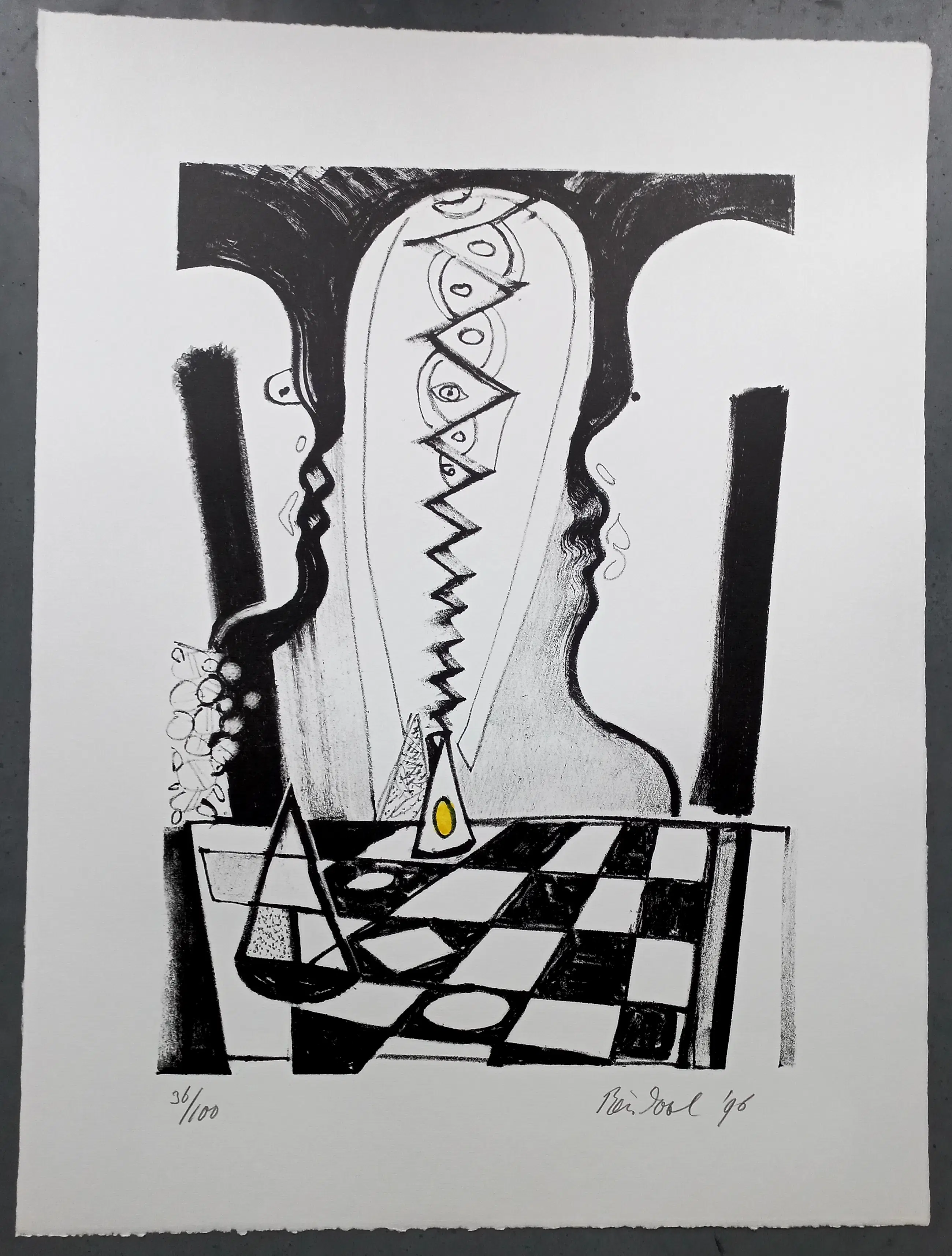 Gesigneerde litho van de kunstenaar Rein Dool (1933) gedrukt in een oplage van 100 stuks. Rechtsonder is het werk gesigneerd met Rein Dool en 96. Linksonder 36/100 Afmeting papier 64 x 48 cm. (hxb) De litho is in prima staat en is nooit ingelijst geweest.