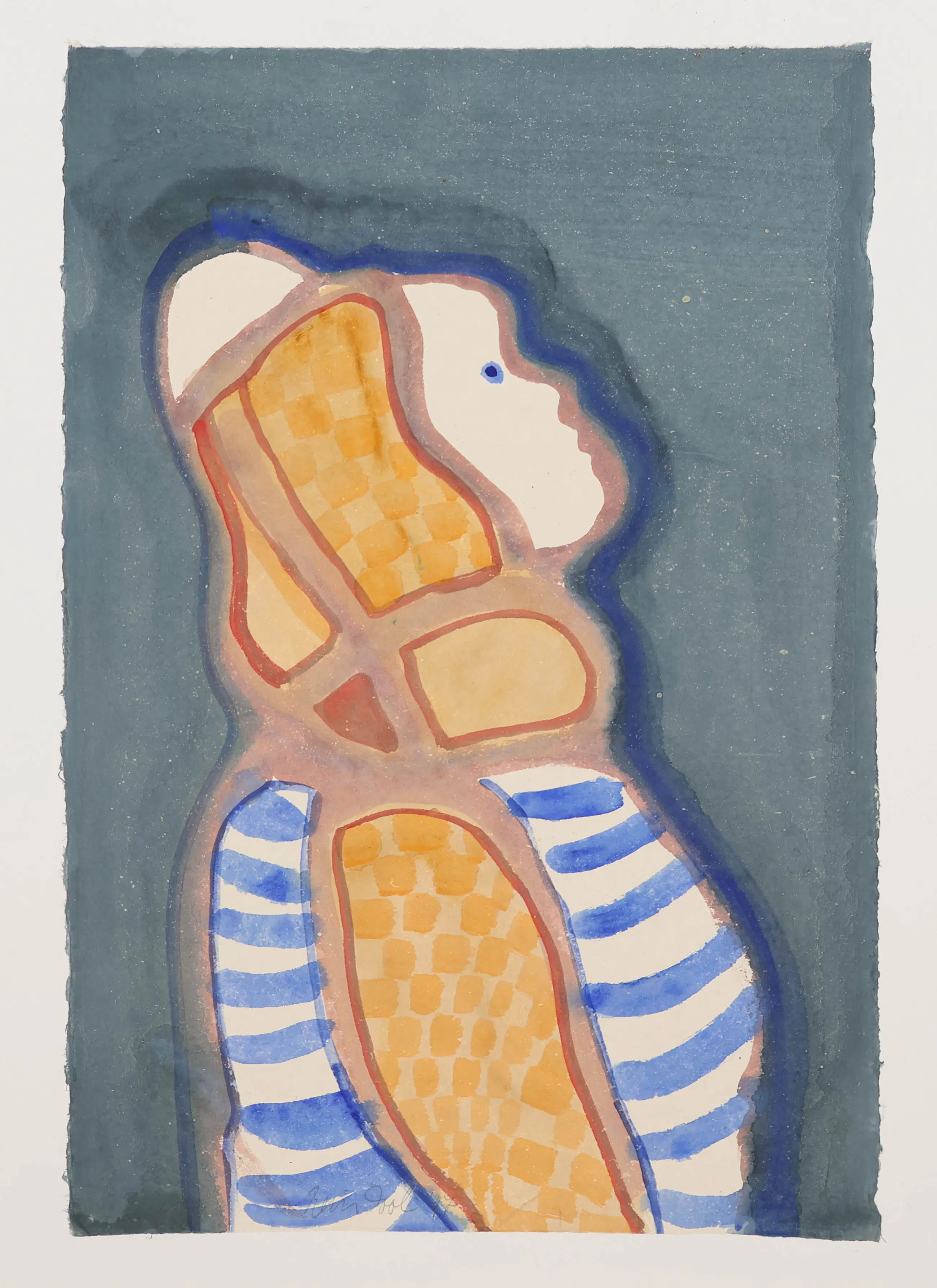 Aquarel van Reinier Arie (Rein) Dool (Leiden, 3 februari 1933), een Nederlandse kunstenaar die werkzaam is als schilder, beeldhouwer en keramist.