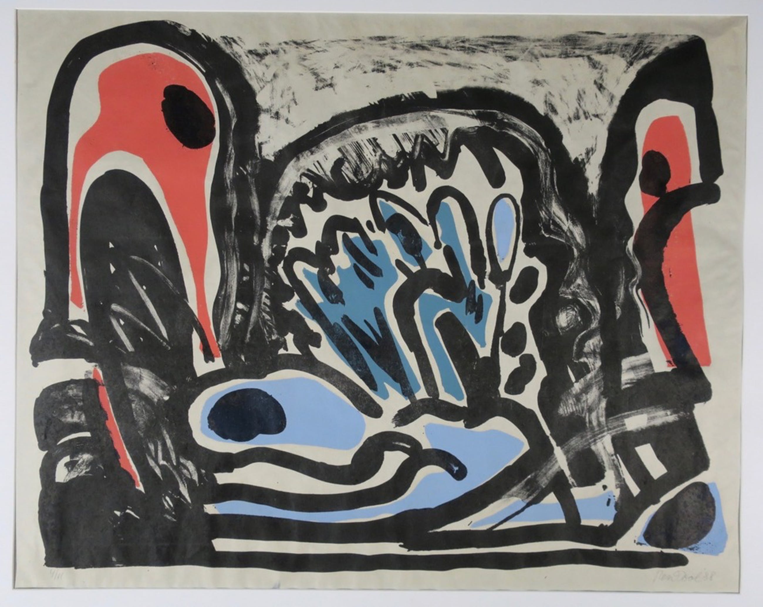 Materiaal: Litho op Rijstpapier. achter passe-partout (bovenrand geplakt)