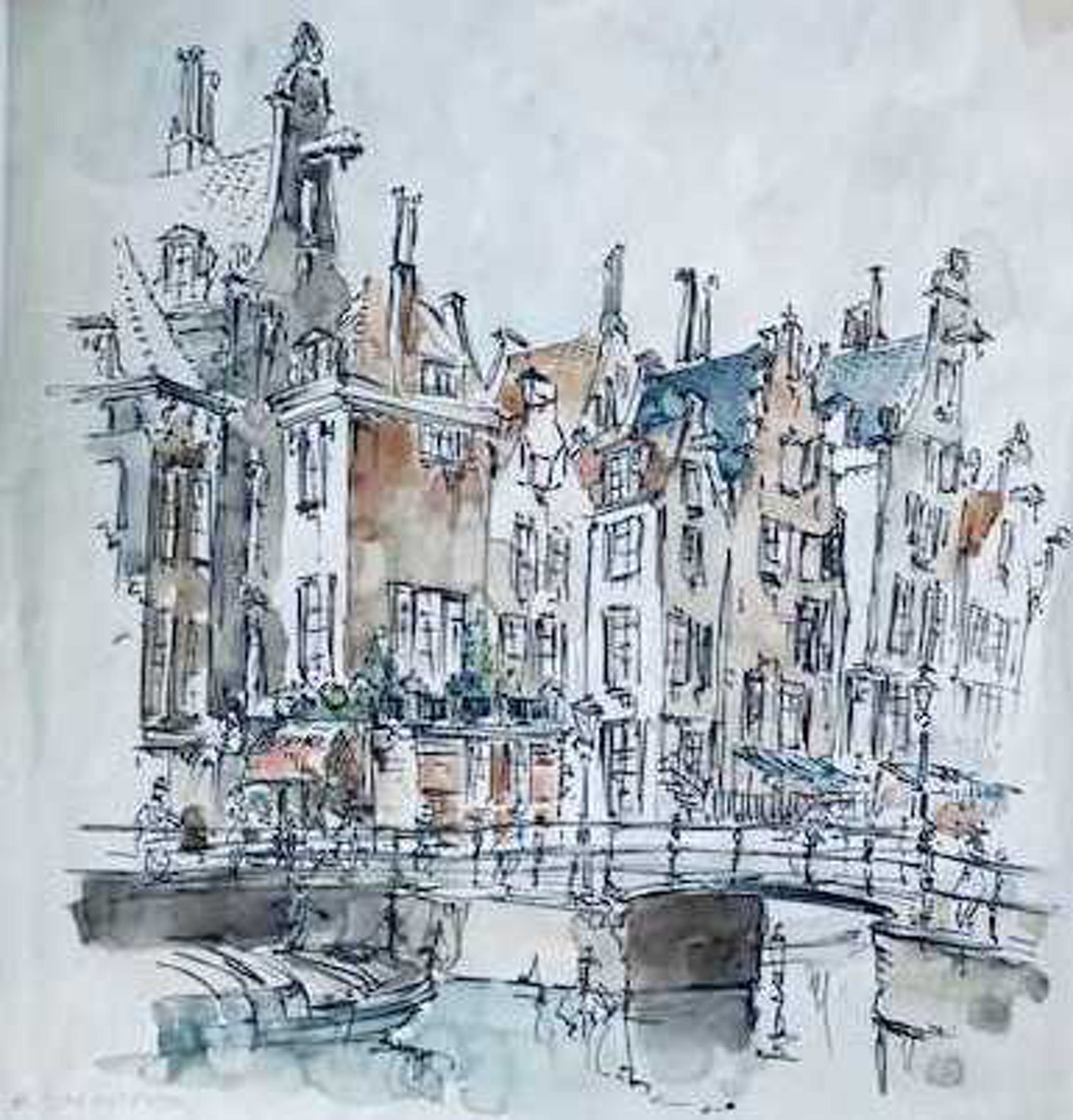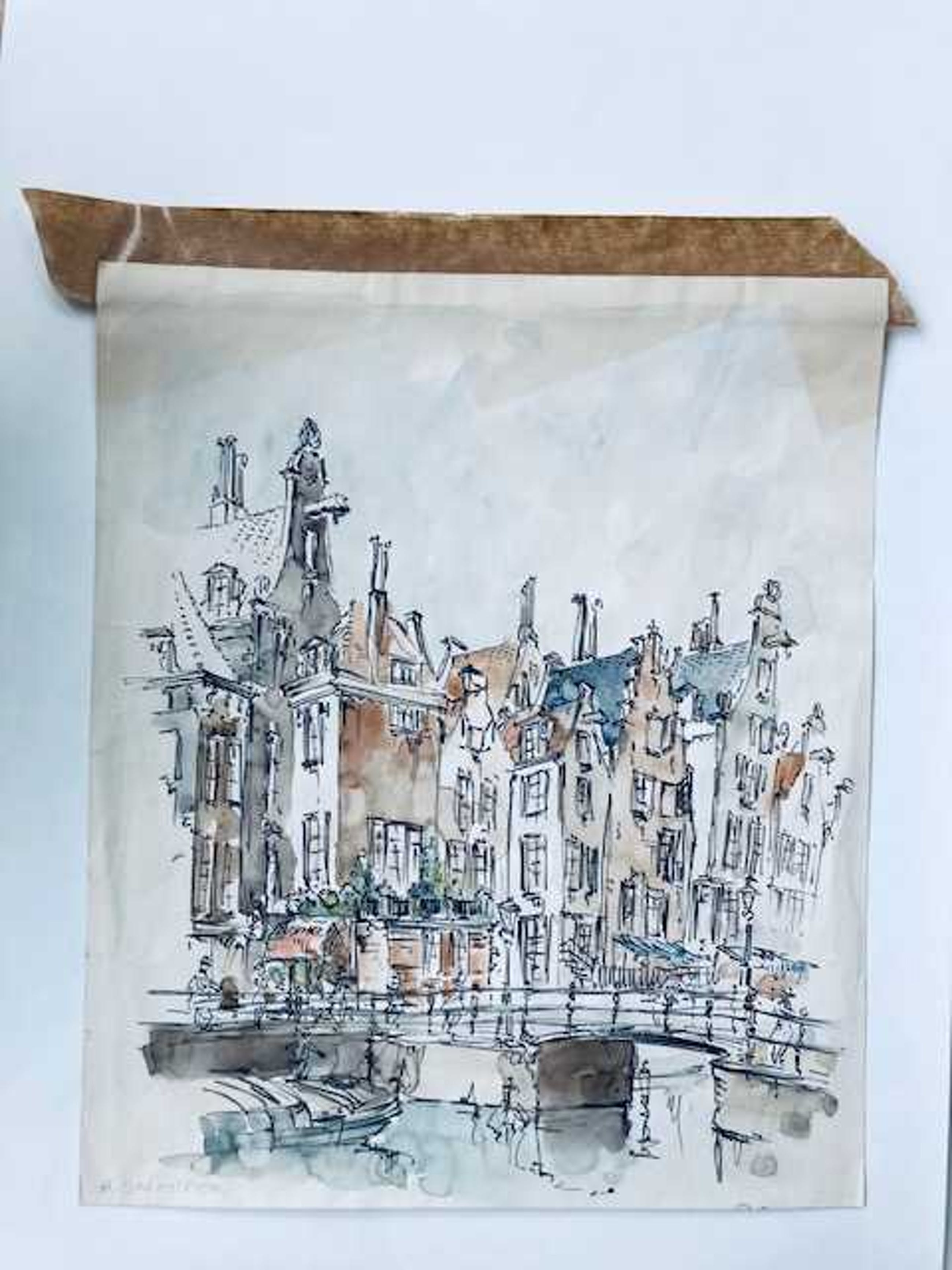 Hand ingekleurde lithografie van kunstenaar Rein Snapper (1907-1988) waar hij zijn liefde toont voor Amsterdam. Het werk verdient het om opnieuw ingelijst te worden. U mag het vooraf komen beoordelen in de schatkamer van galerie Rotor in Gorinchem.