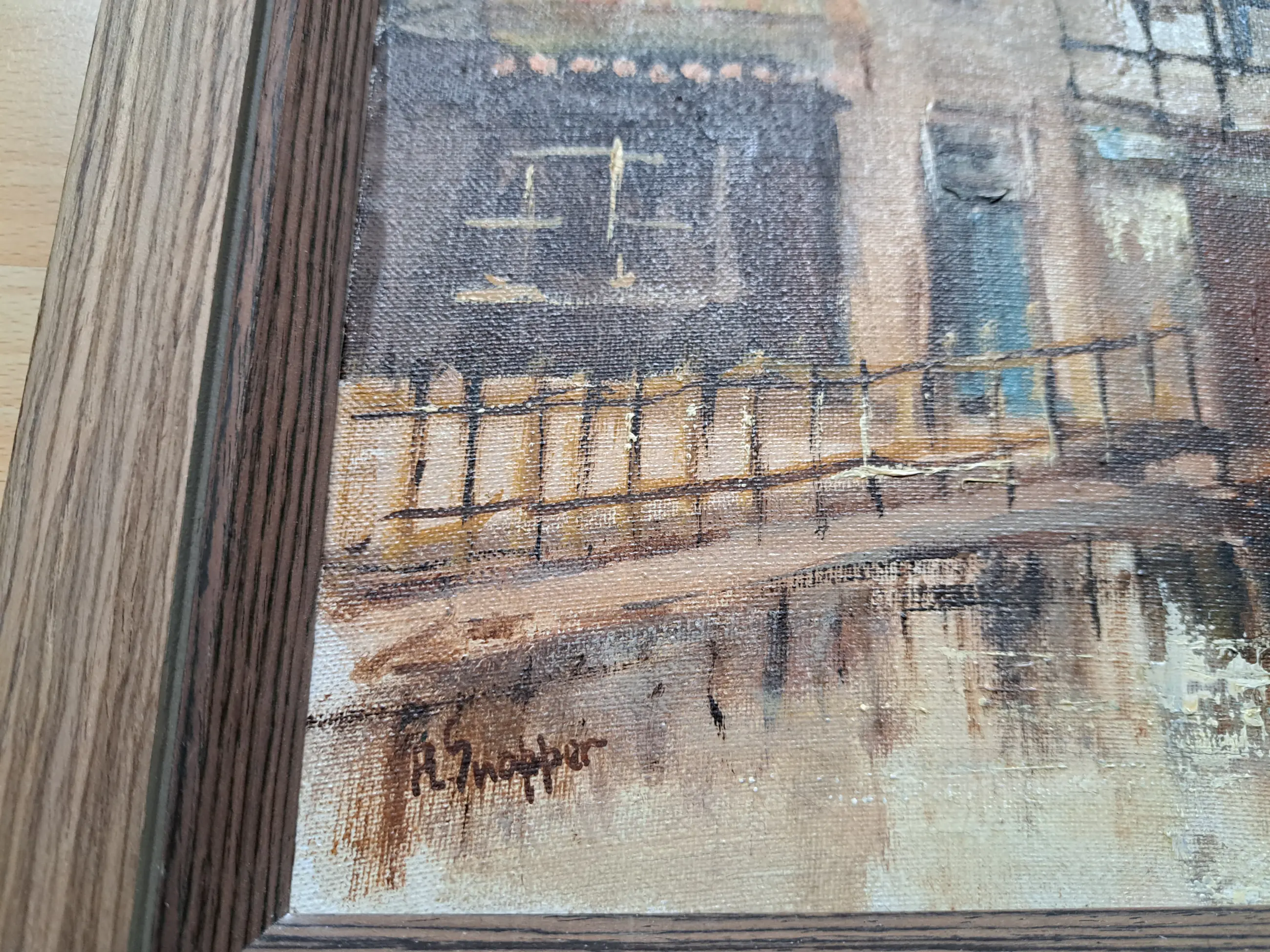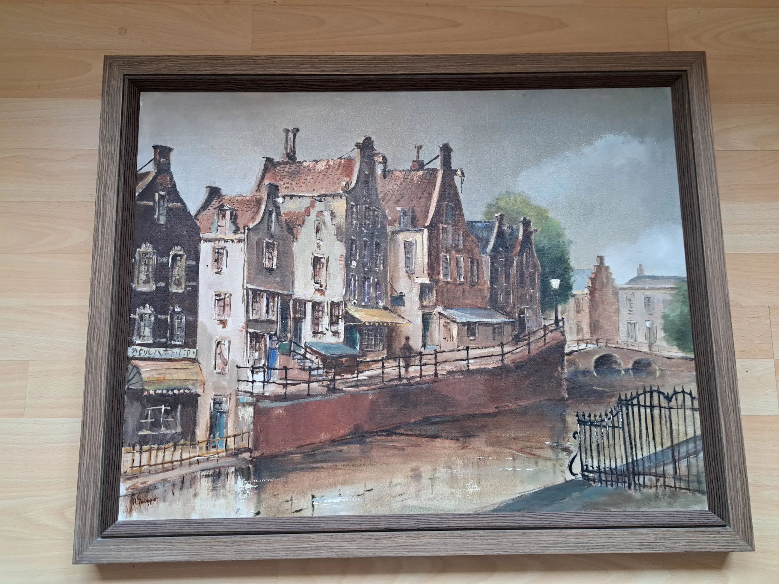 Mooi schilderij, wsch van Amsterdam, niet beschadigd, recent opnieuw ingelijst