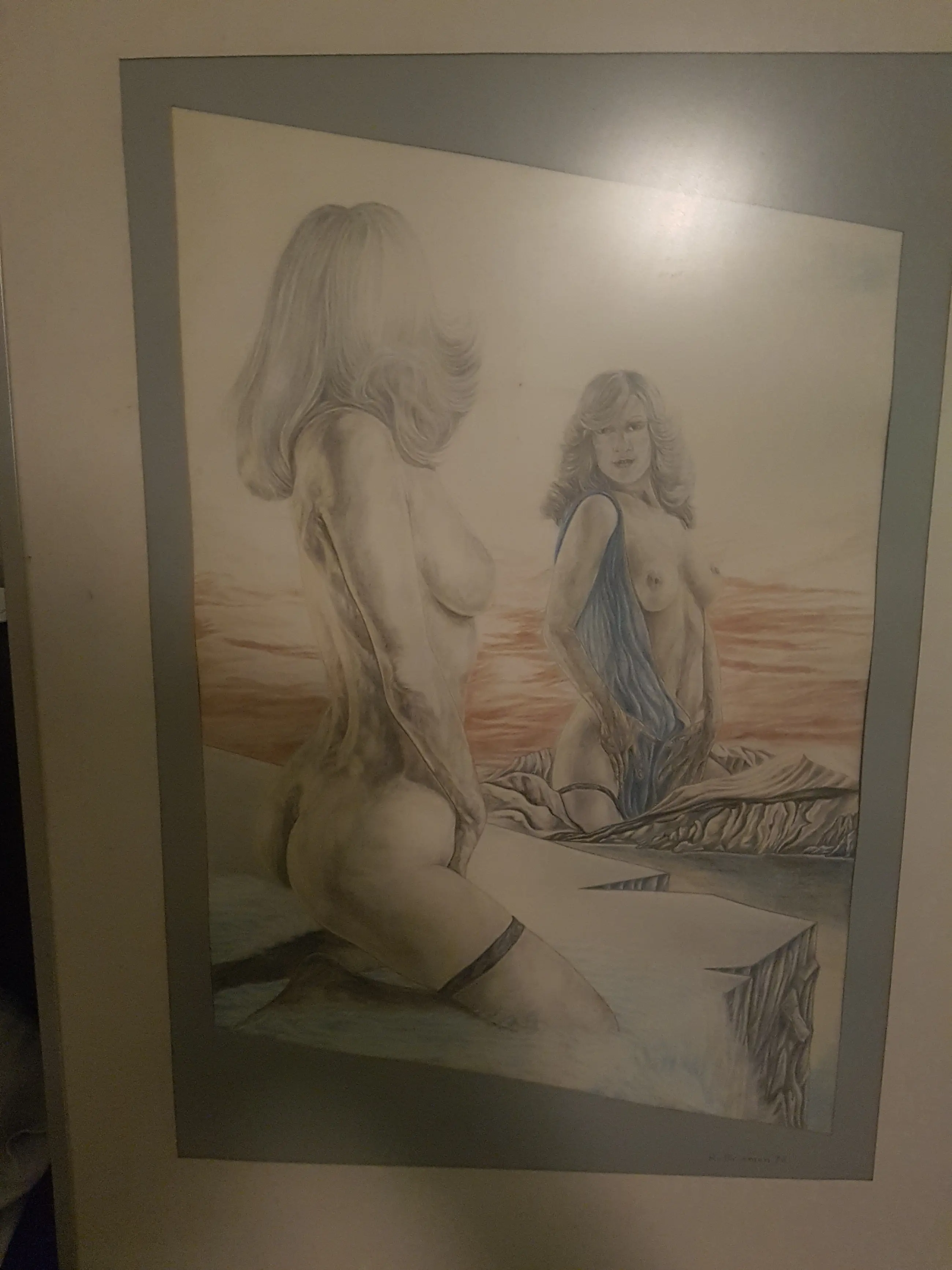 Ingelijste tekening van Rein van Briemen. Gesigneerd en gedateerd.