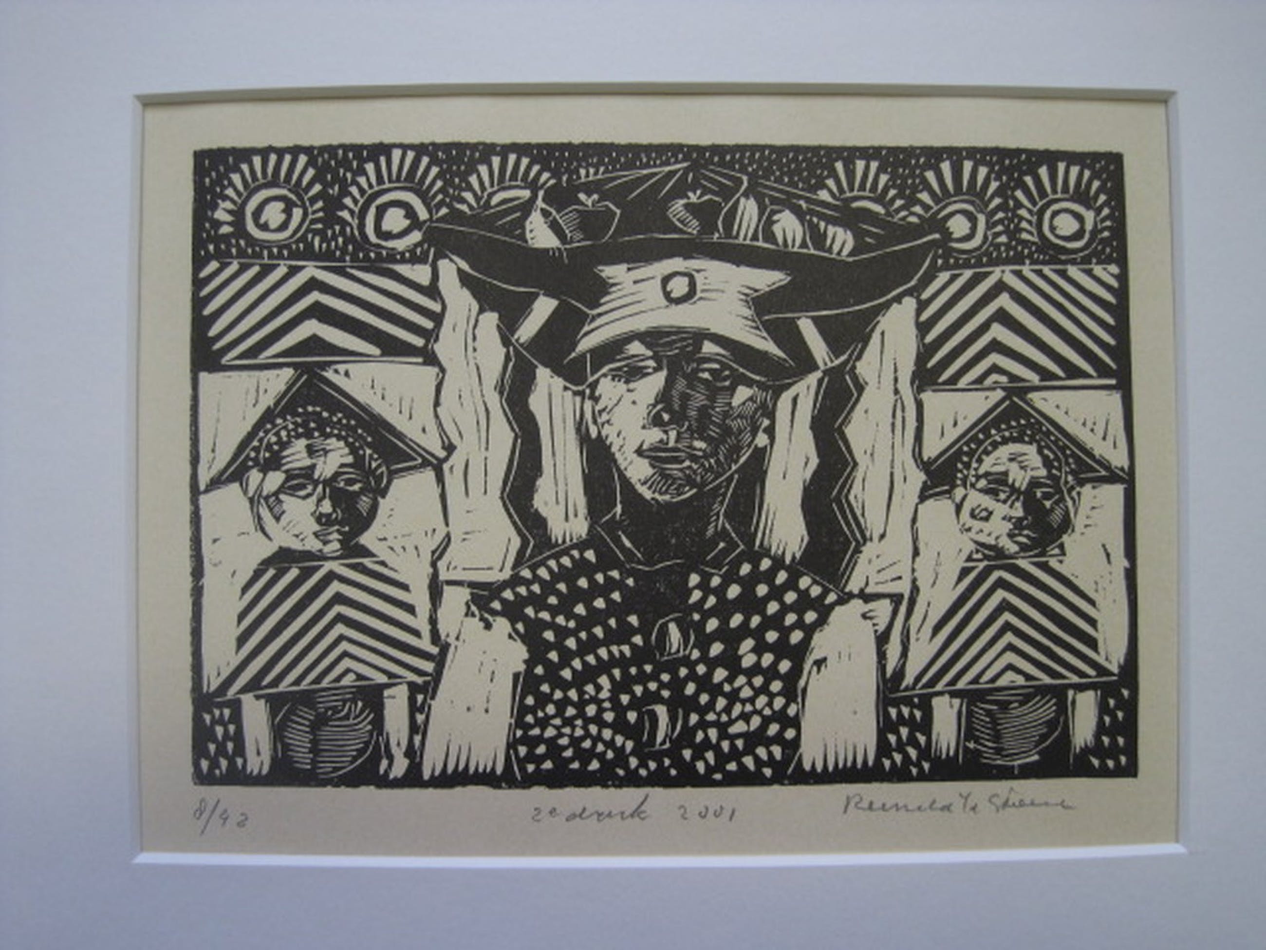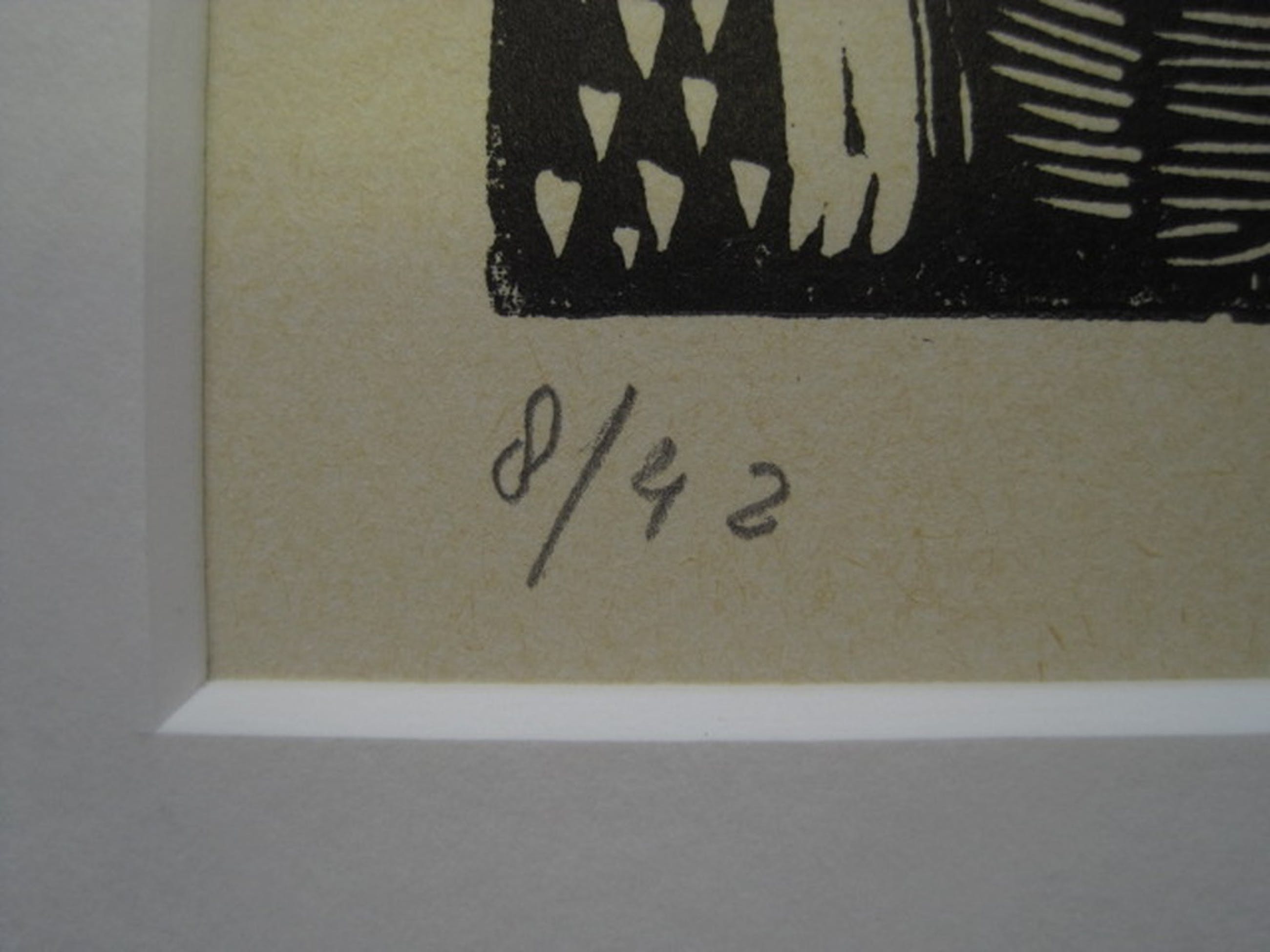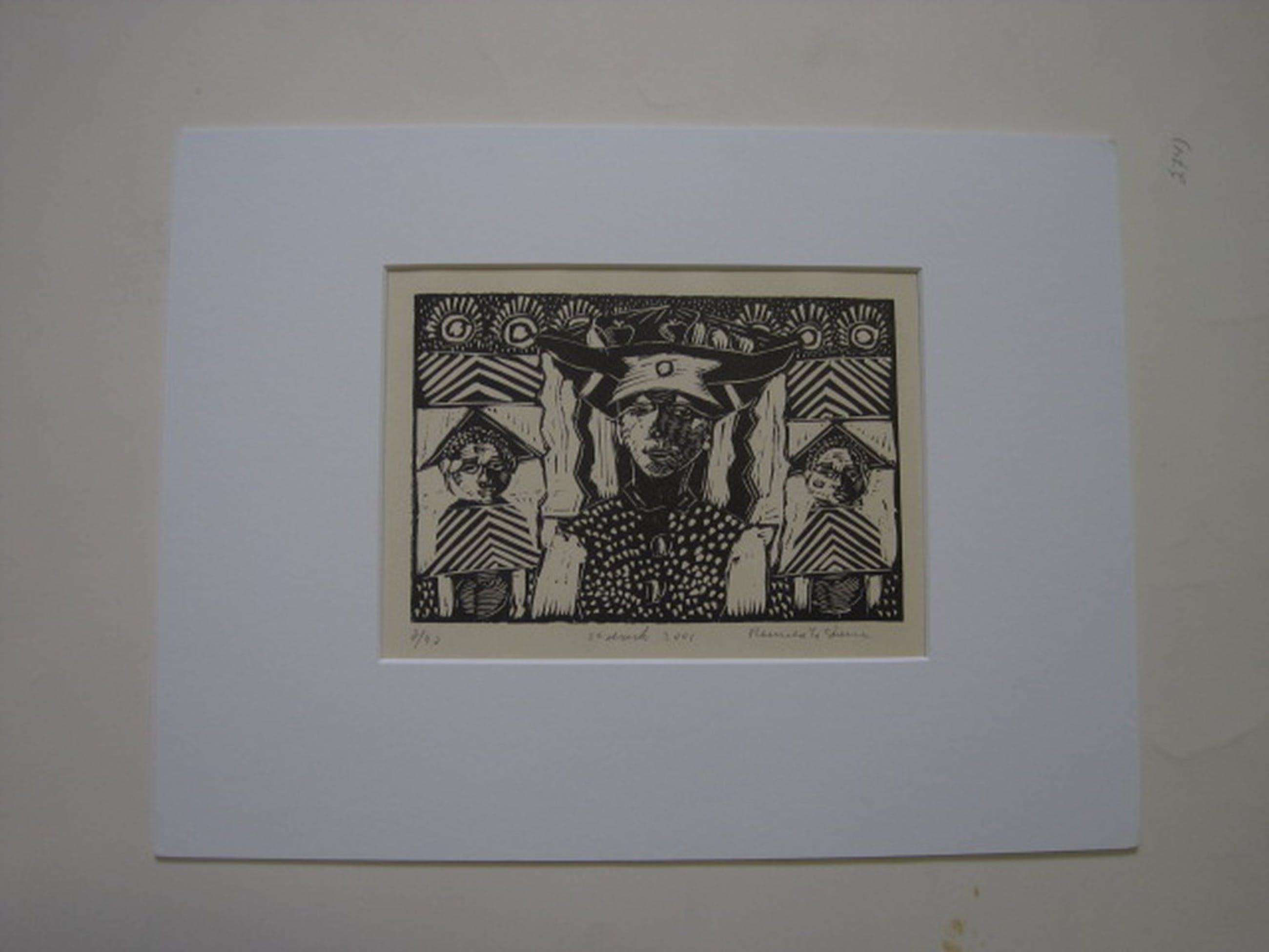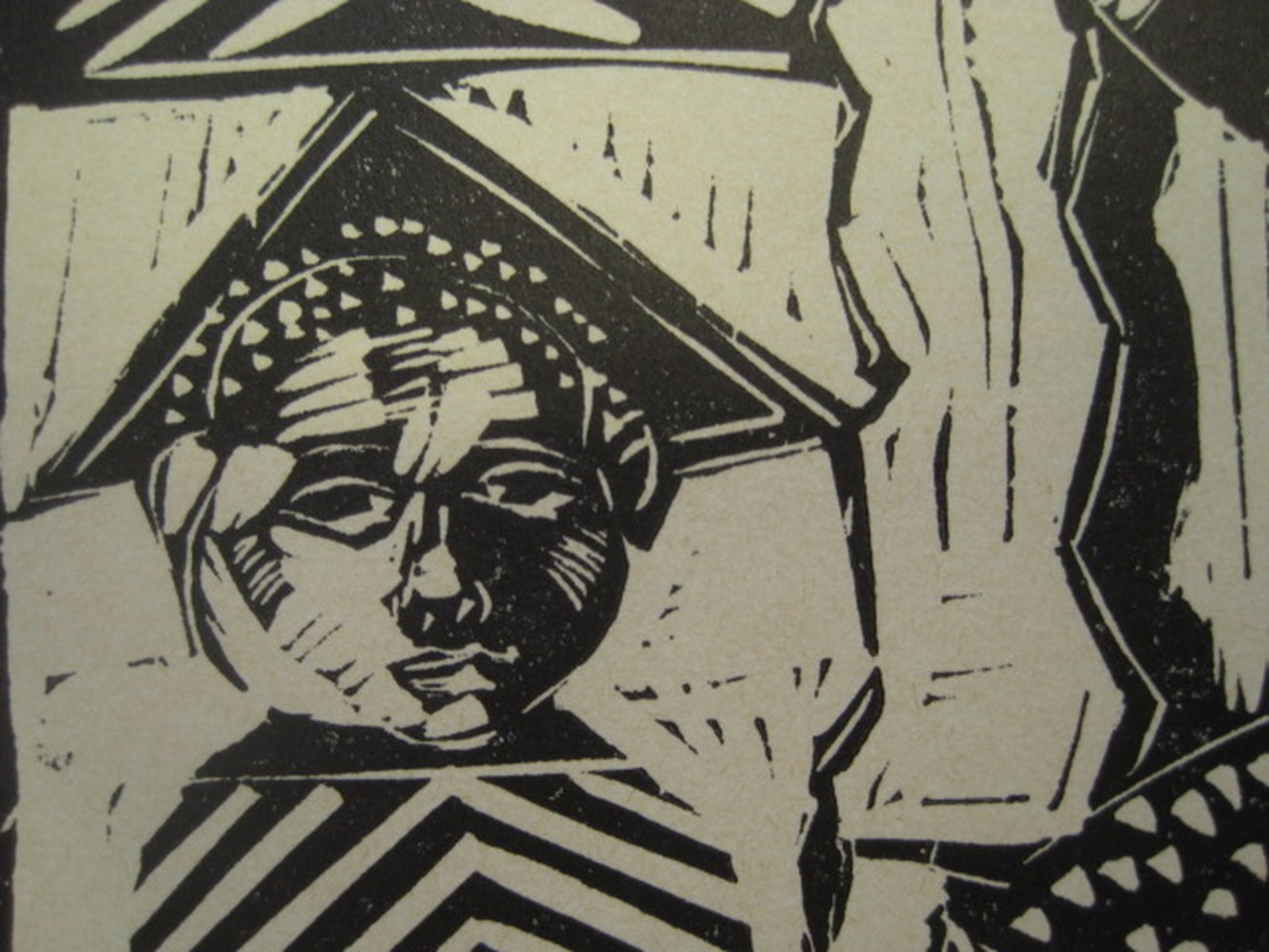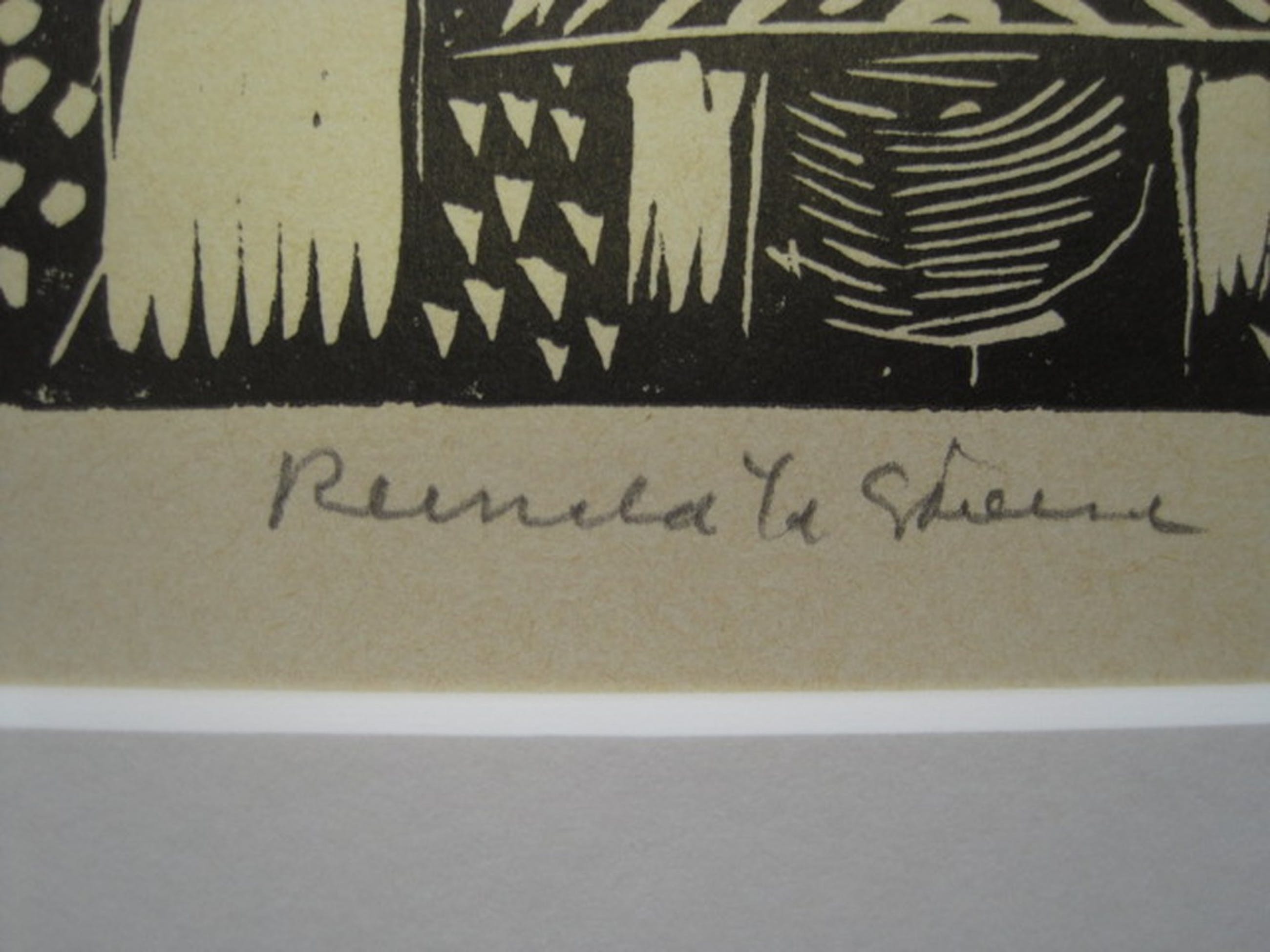 Medium / Techniek : Linosnede op papier