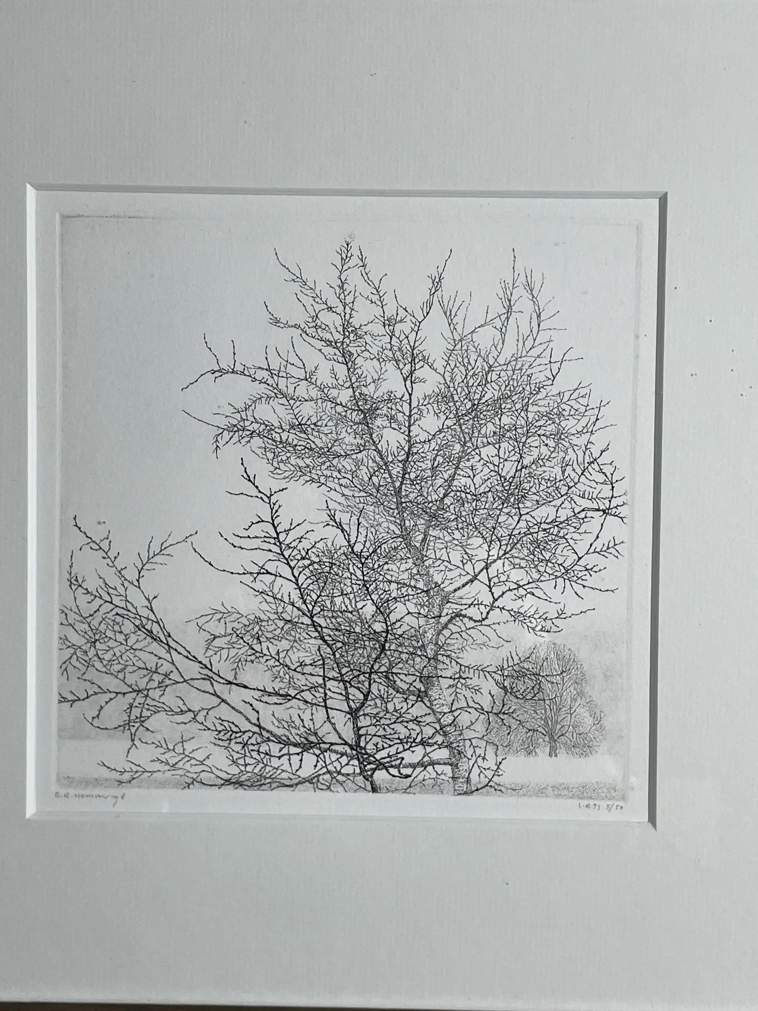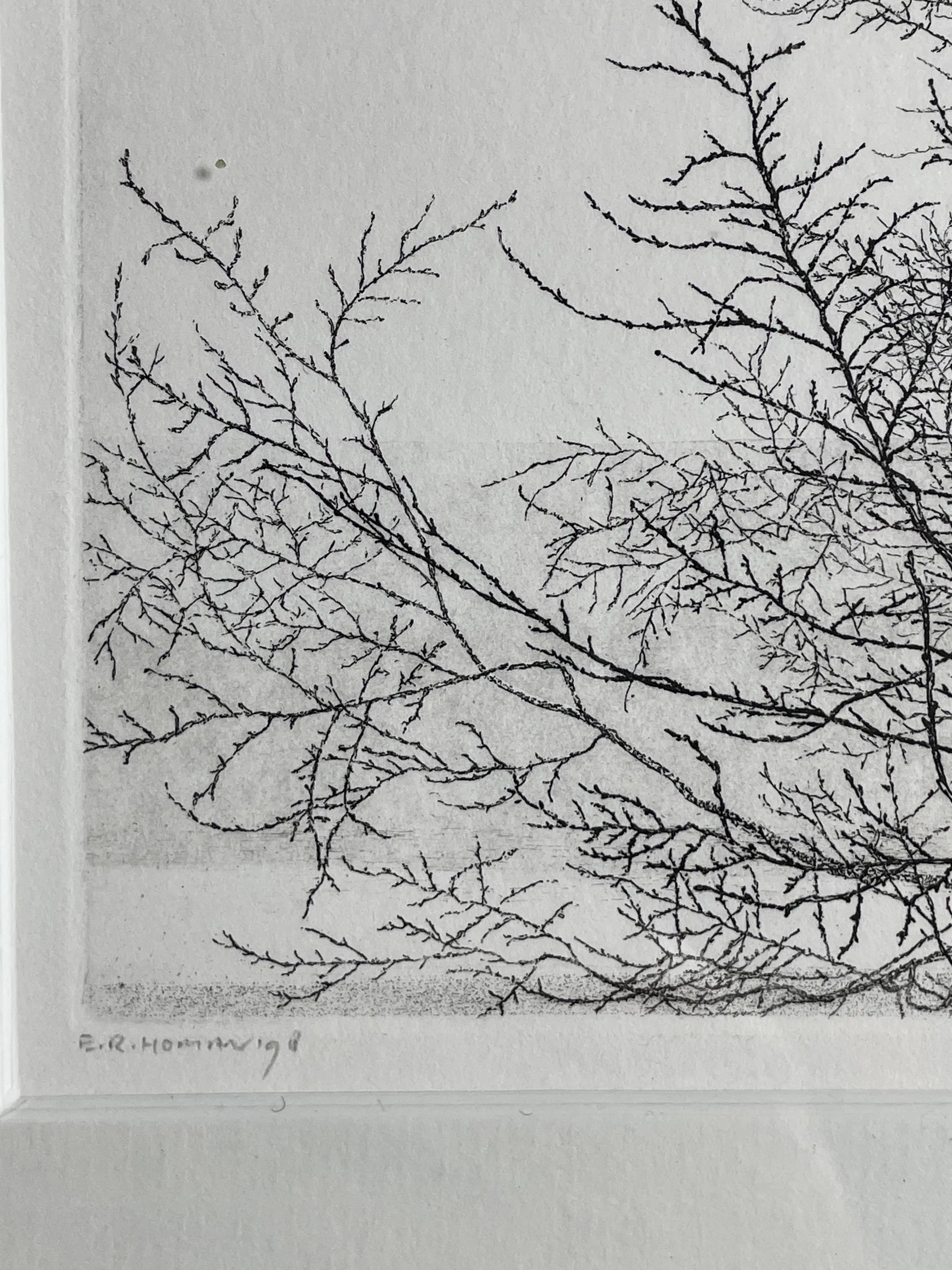 Schitterende gedetailleerde ets van graficus E.R. Homan komt direct van kunstenaar en daarna ingelijst beide in nieuwstaat