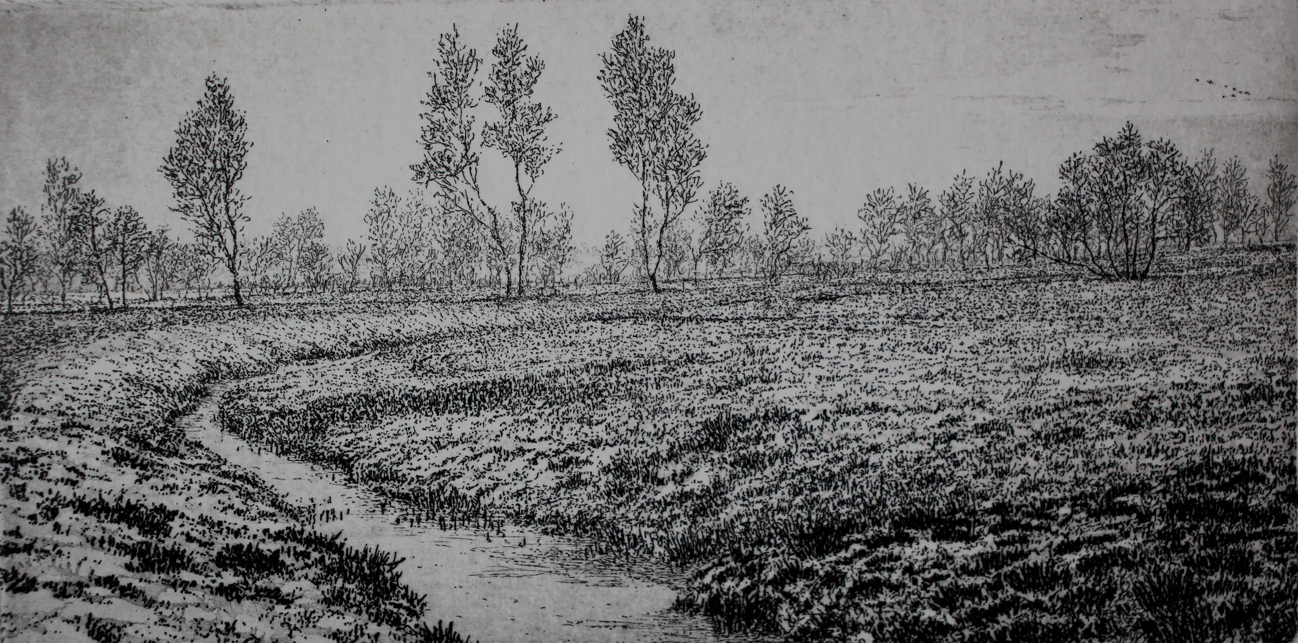 Oude bomen, een enkel takje, maar ook bermen vol bloemen, een beekdal in vogelperspectief of de nevel boven de velden, allemaal onderwerpen die in zijn etsen langskomen, uiterst minutieus en subtiel uitgewerkt. Elk detail getuigt van een onvoorwaardelijke aandacht en overgave.