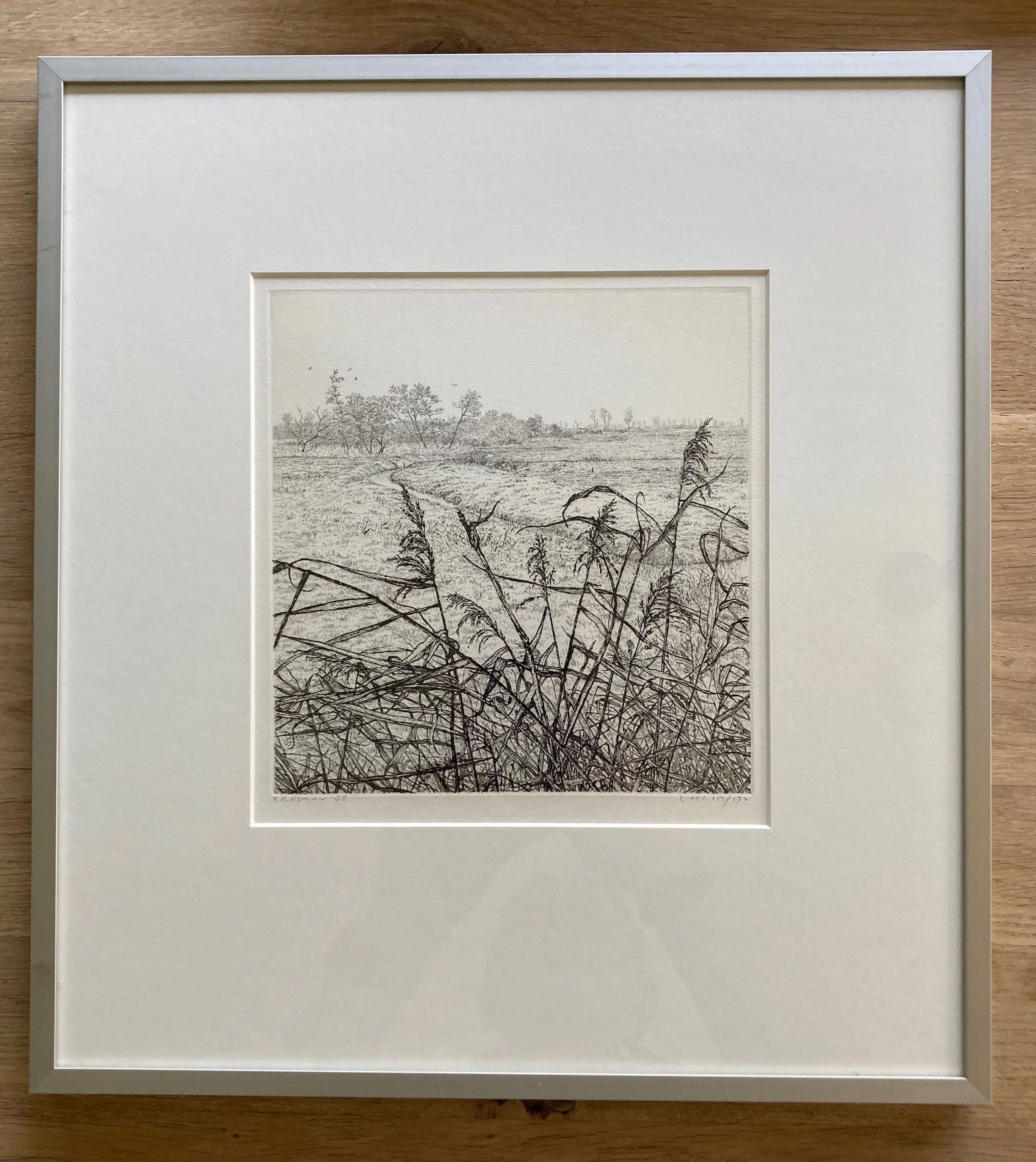 Prachtige ingelijste en handgesigneerde ets van Reinder Homan uit 1988 Oplage 119/170 Ingelijst op 11-‘88 in een Barth-lijst