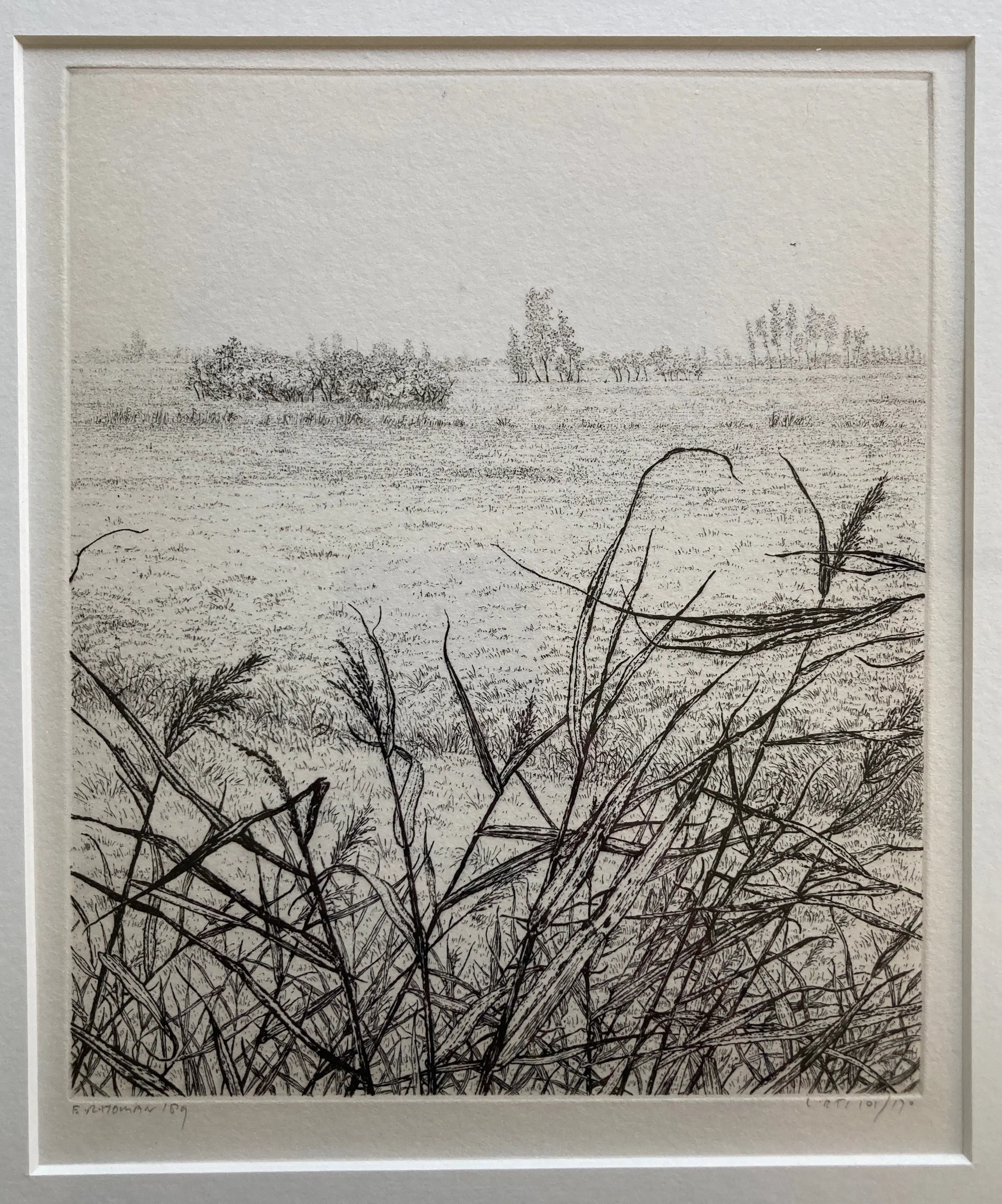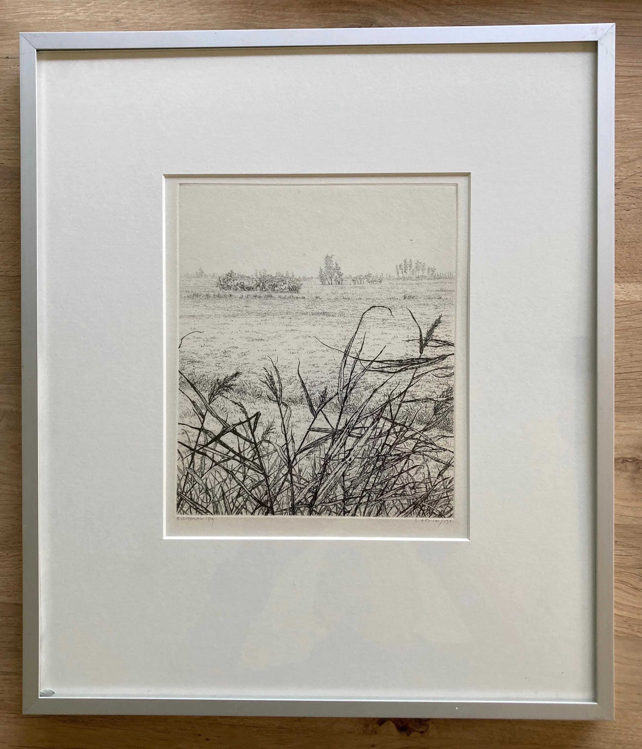 LET OP! Glas heeft een kapot hoekje linksonder (zie foto). Vandaar de lagere startprijs in vergelijking met de andere etsen die ik verkoop van Homan. Prachtige ingelijste en handgesigneerde ets van Reinder Homan uit 1989 Oplage 101/170 Ingelijst op 11-‘89 in een Barth-lijst
