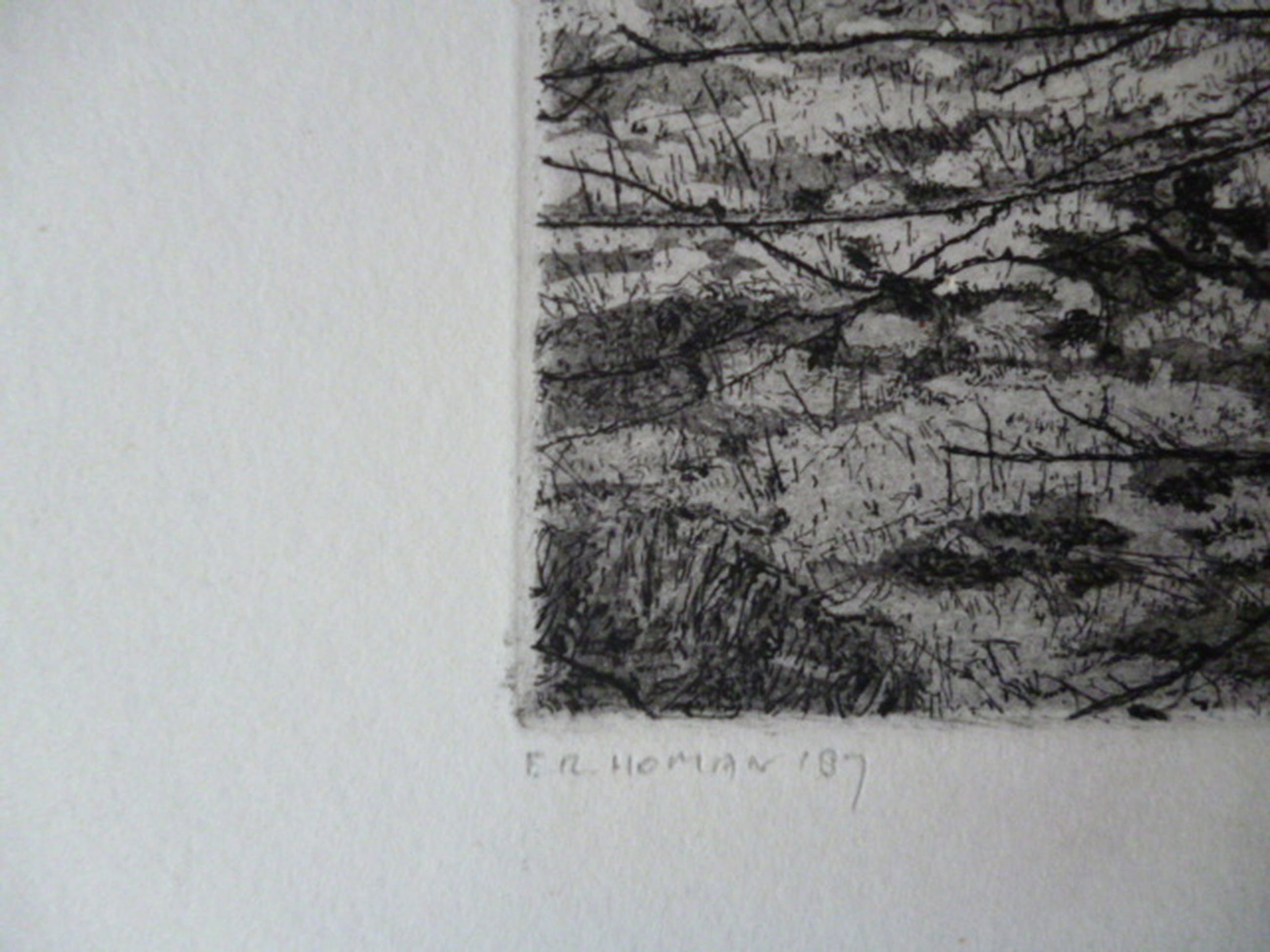 Ets, potlood gesigneerd en gedateerd '87 linksonder. Genummerd 19/50 en e.a. rechtsonder.