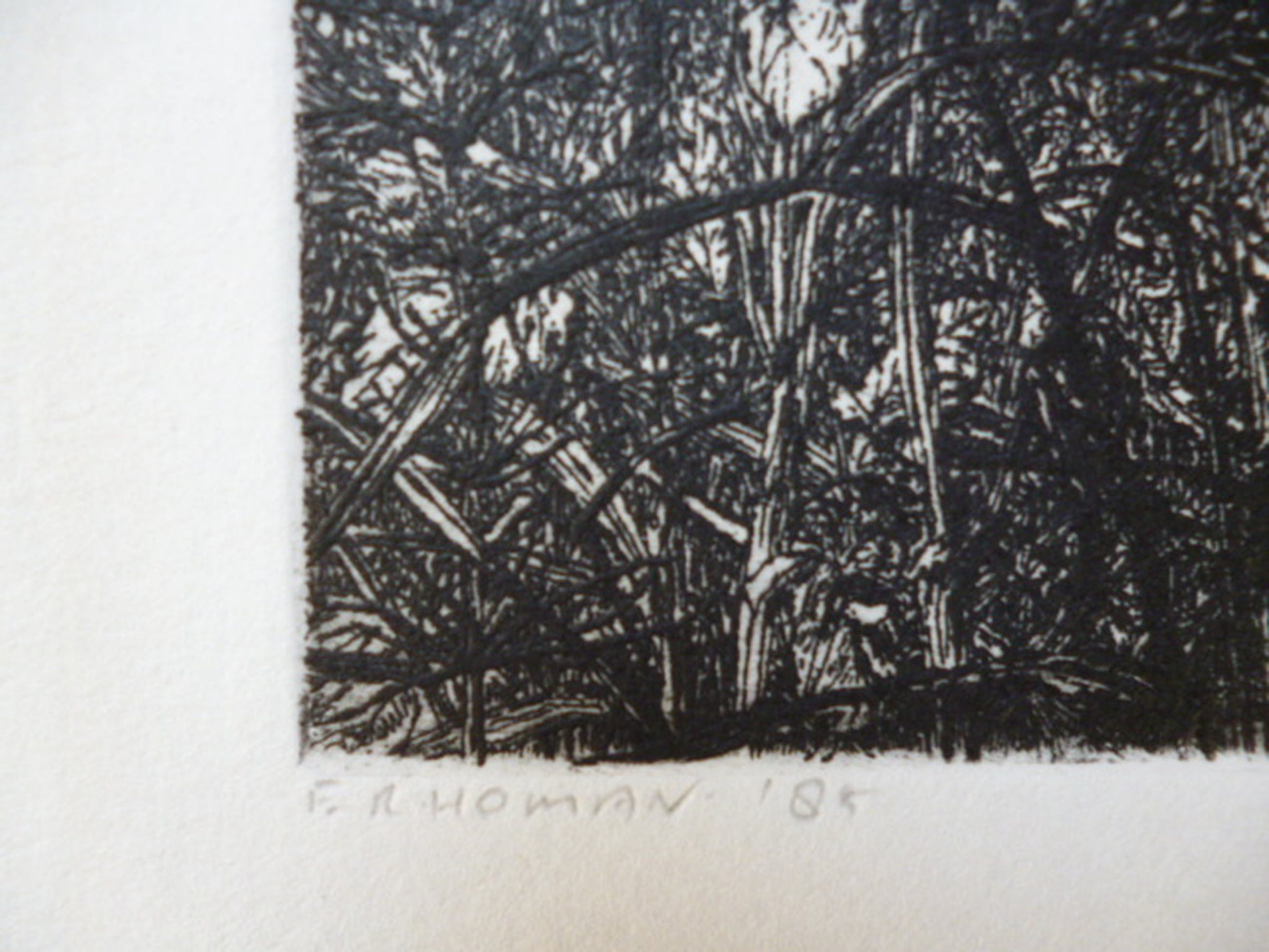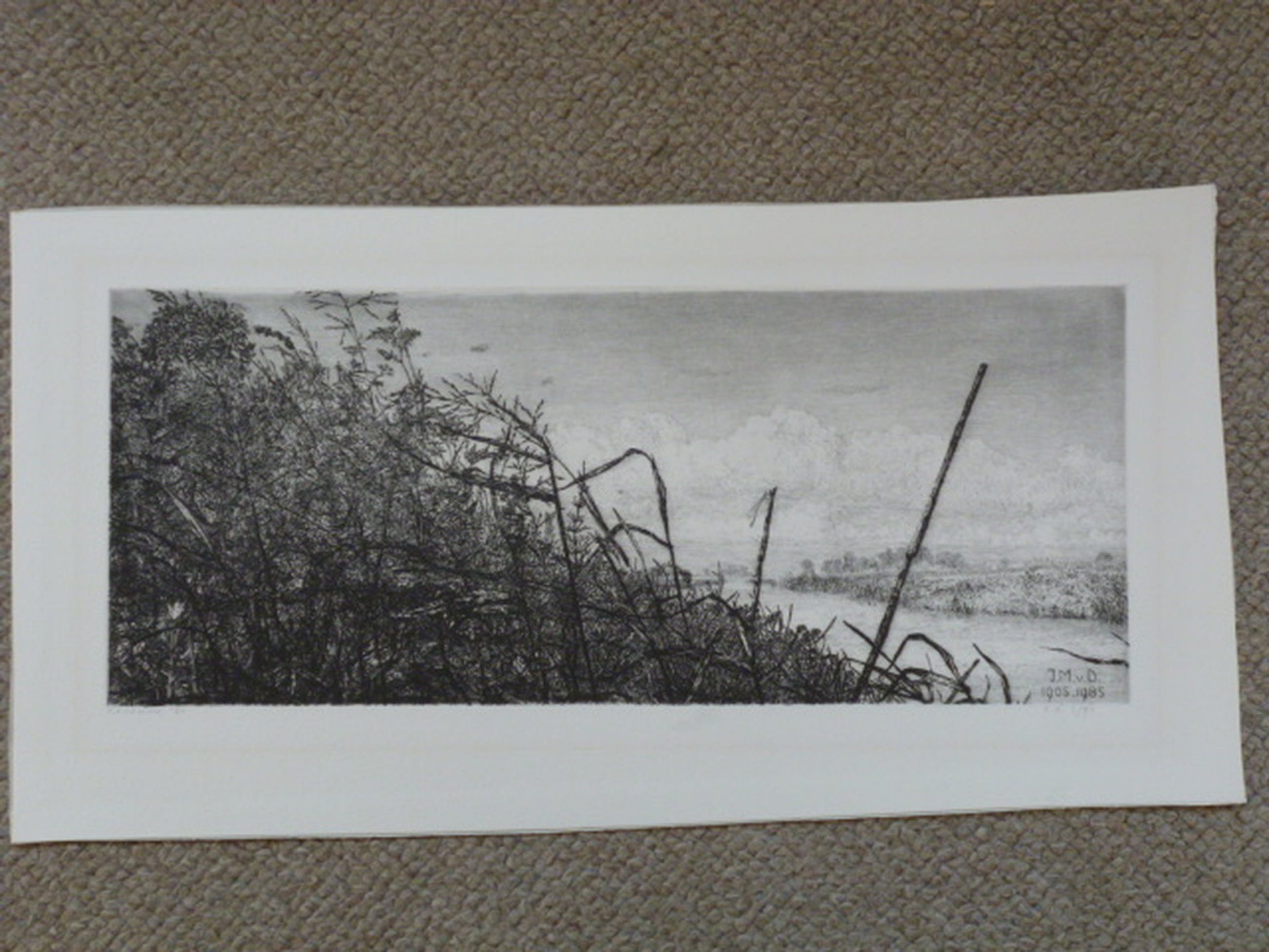 Ets uit 1985. Potlood gesigneerd en gedateerd linksonder. "E.A."en genummerd 3/75 rechtsonder.