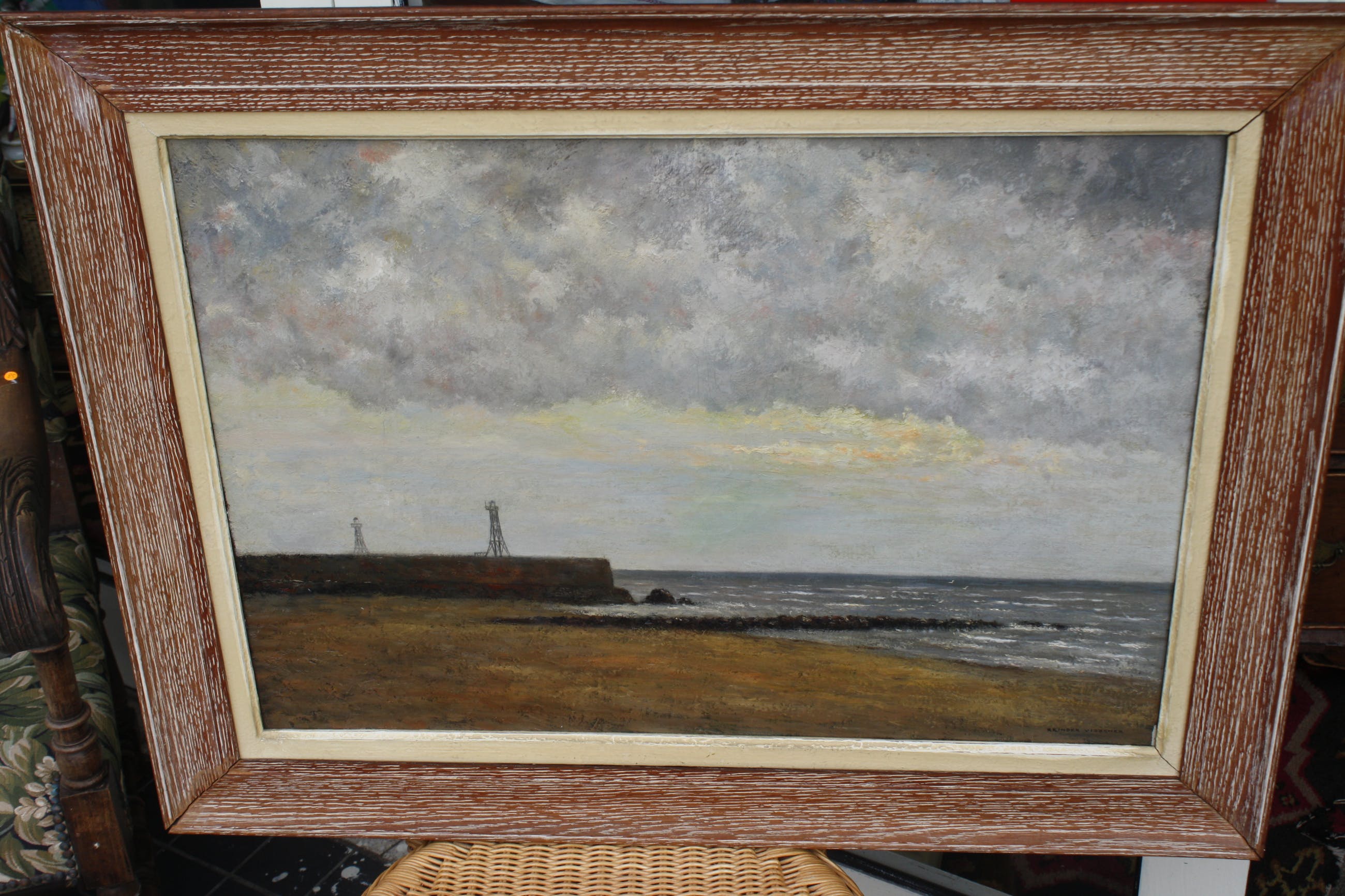REINDER VISSCHER 1904 -1973 KUSTGEZICHT Olieverf op linnen in de maat 50 x 70 cm gesigneerd rechts onder / periode 1940-1960 gekaderd in oude lijst werk is in zeer goede staat, lijst in goede staat verzenden aangetekend of ophalen in Beverwijk