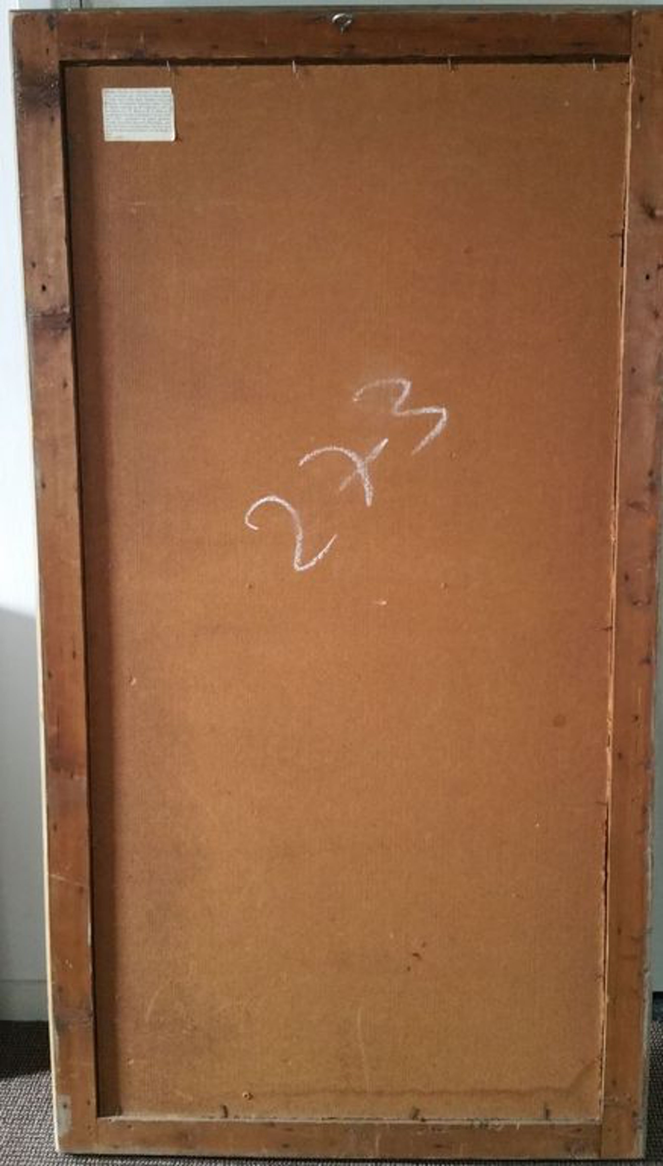 Dit doek is prachtig groot en realistisch in originele lijst. Afmeting 64 x 126, het werk heeft een paar uiterst lichte en niet storende beschadigingen.