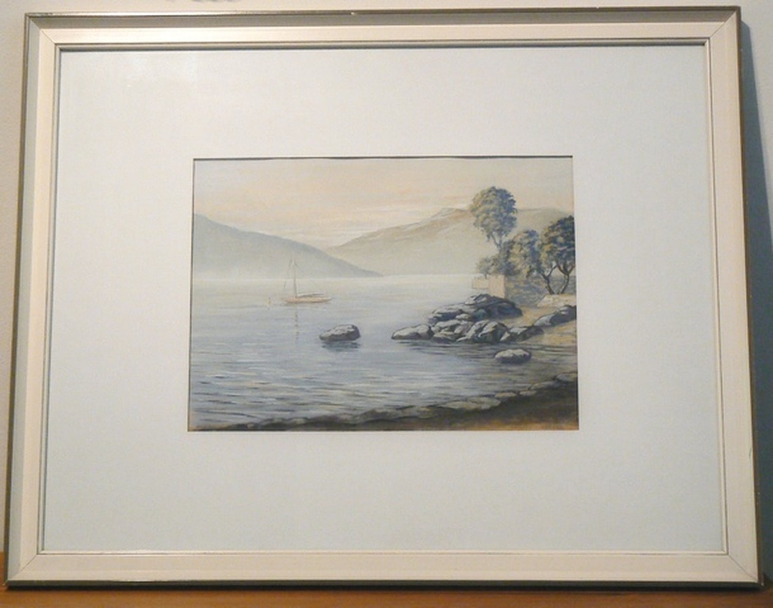 Sfeervolle gouache op papier, mooi ingelijst achter glas, rechtsonder gesigneerd. De lijst meet 68x54 cm, het passe partout is 36x26 cm. Het geheel is in prima conditie.