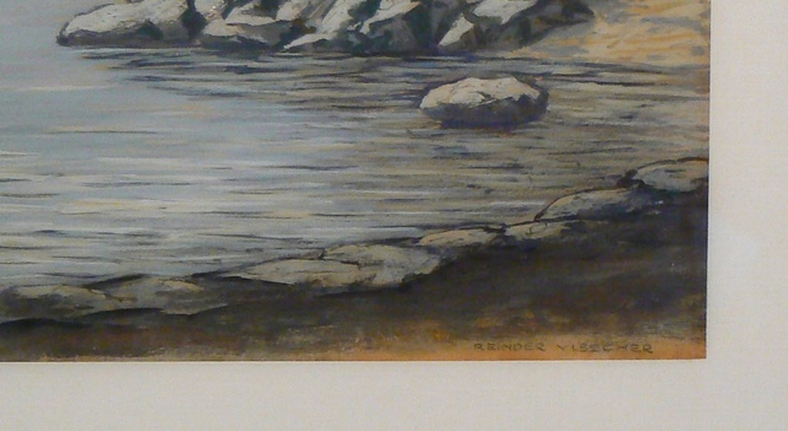 R.J. Visscher (1904-1973) studeerde aan de academie voor B.K. te Rotterdam en was leerling van de Académie la Grande Chaumière te Parijs. Hij woonde en werkte in Rotterdam en vanaf 1939 in Den Haag. Maakte reizen naar Frankrijk, Zwitserland, Engeland, India, Ceylon en Egypte. Schilderde, tekende, aquarelleerde en maakte gouaches in een aanvankelijk figuratieve stijl en na 1962 abstract. Was lid van de Rotterdamse Kunststichting en van De Kring te Delft.