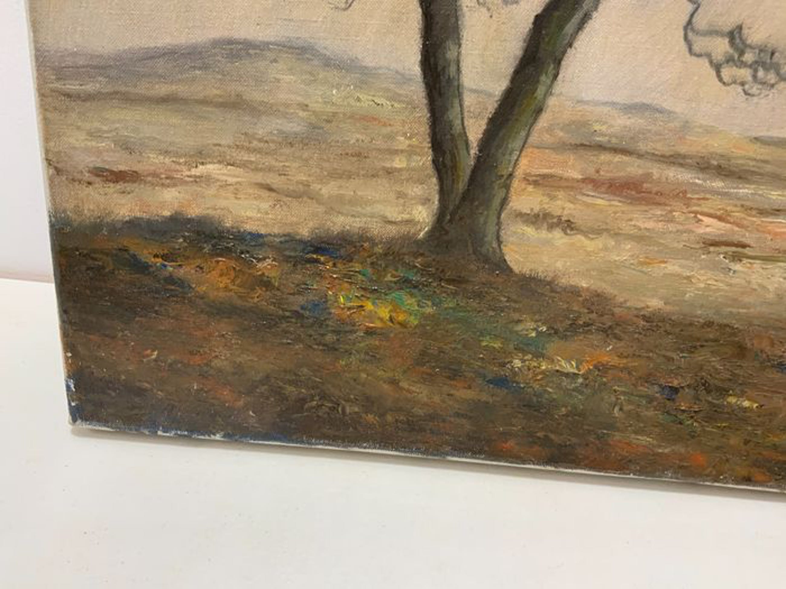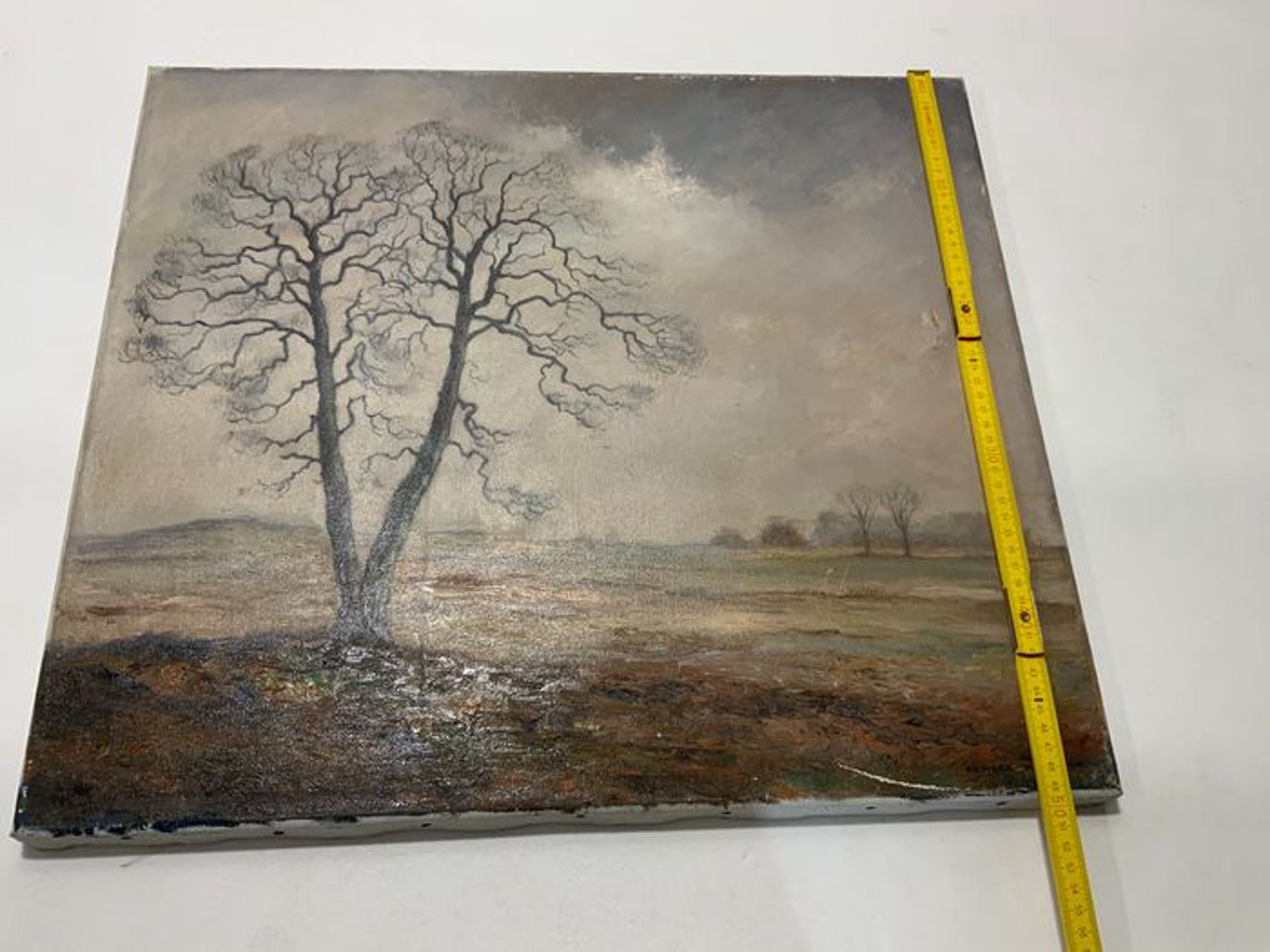 Het werk heeft rechts een beschadiging, moet gerepareerd worden.