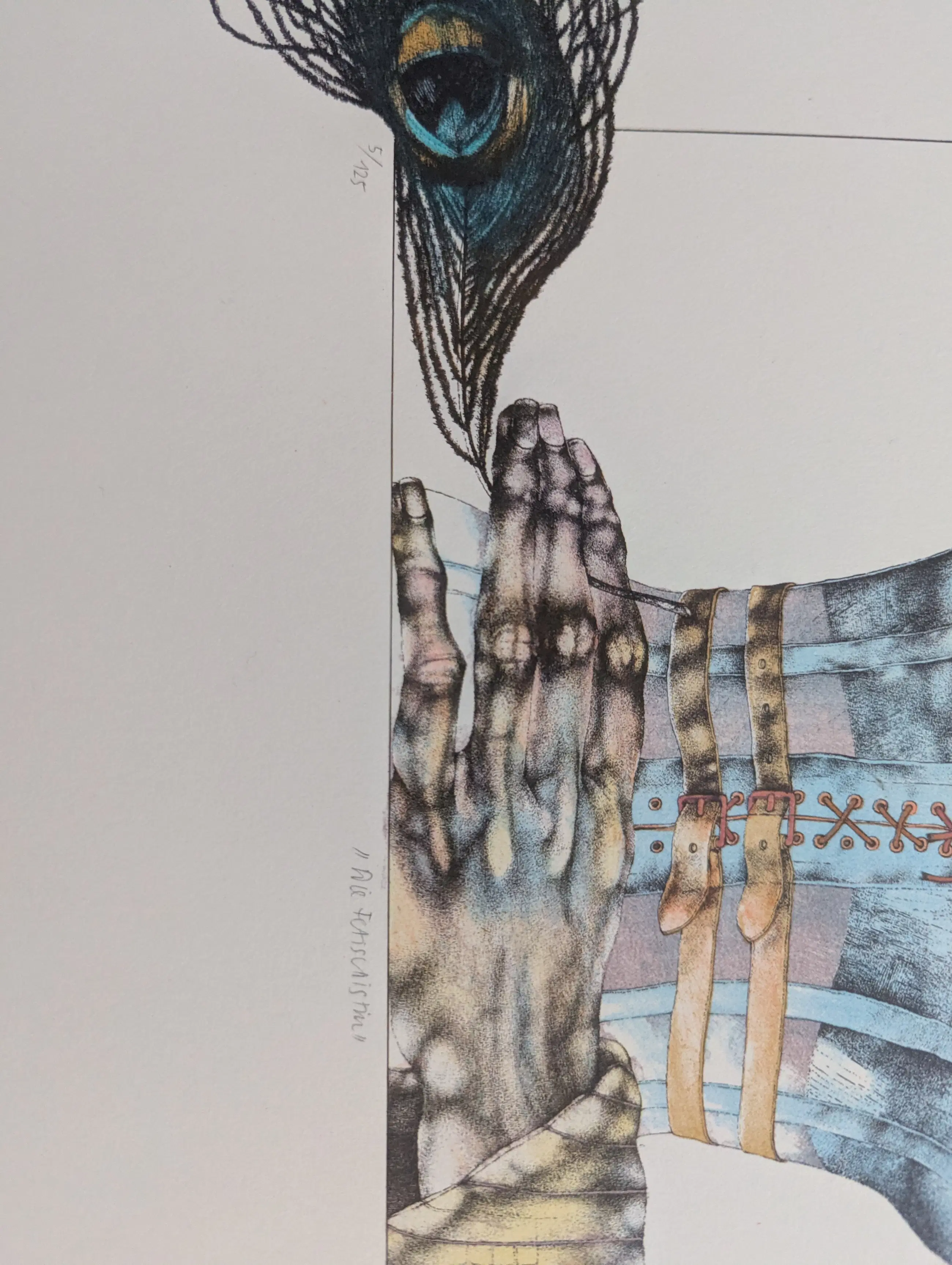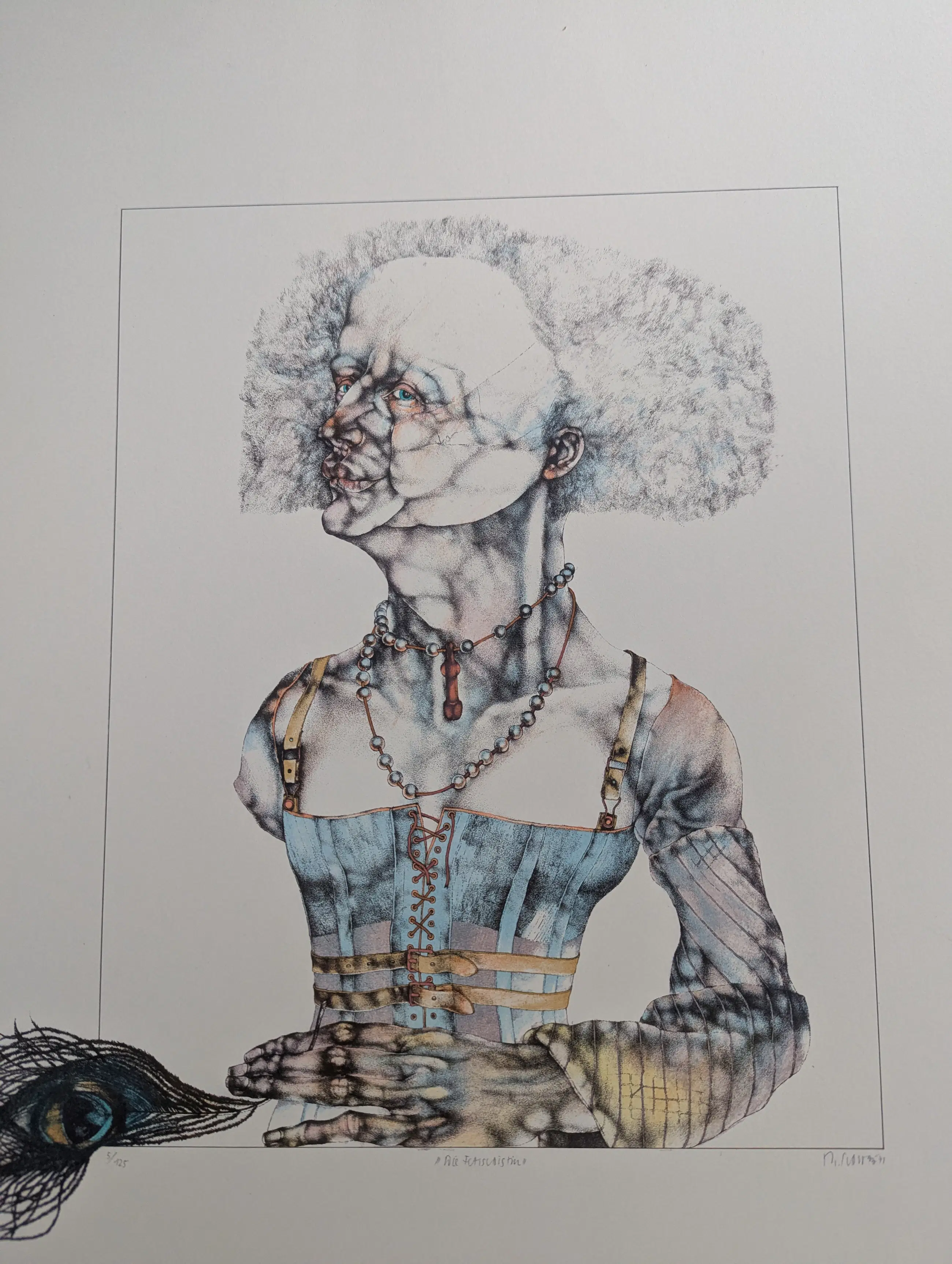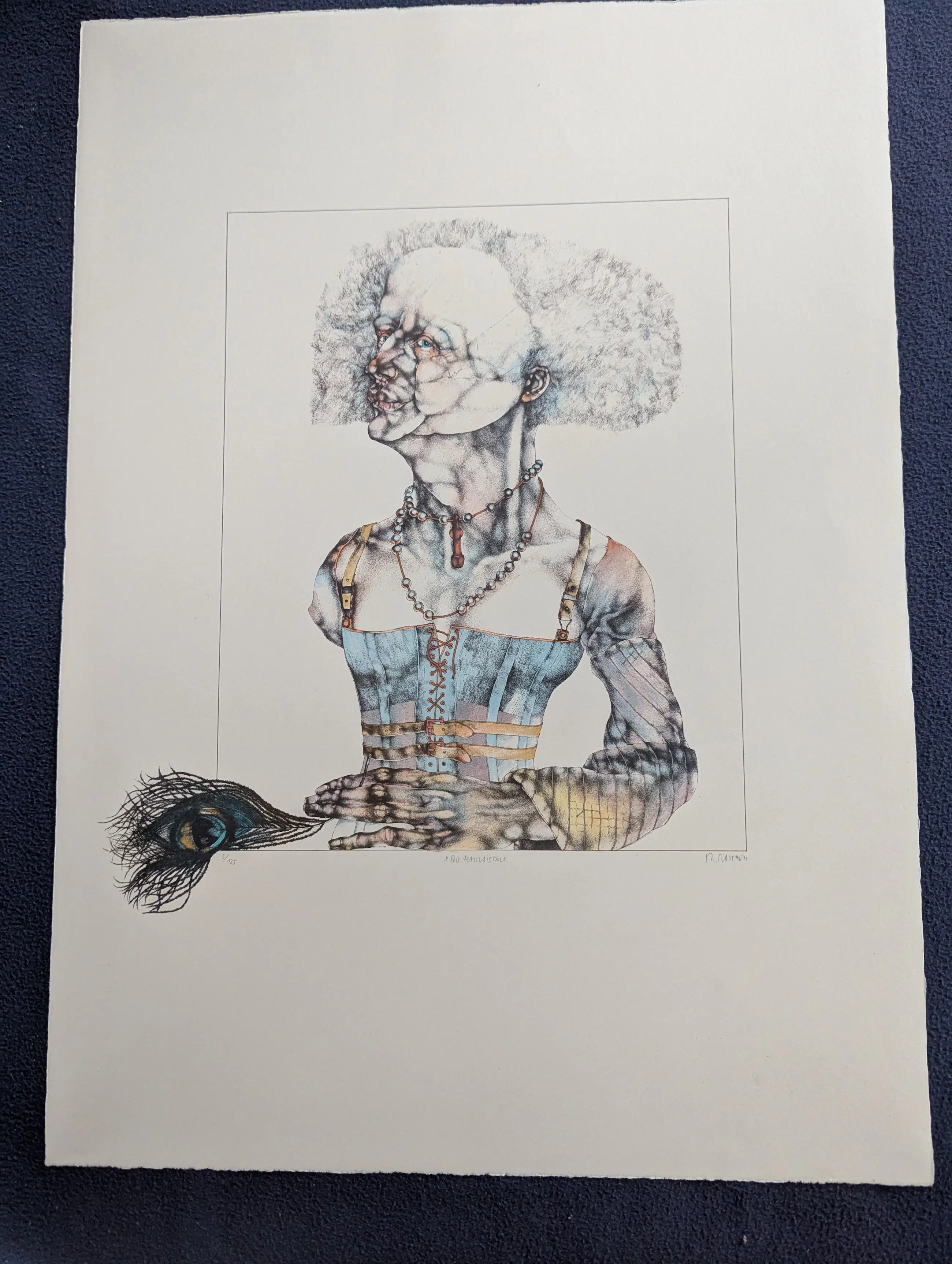 Handgesigneerde lithografie in kleur door Reiner Schwarz, in kleur, editie 5/125 Titel "De Fetisjist"