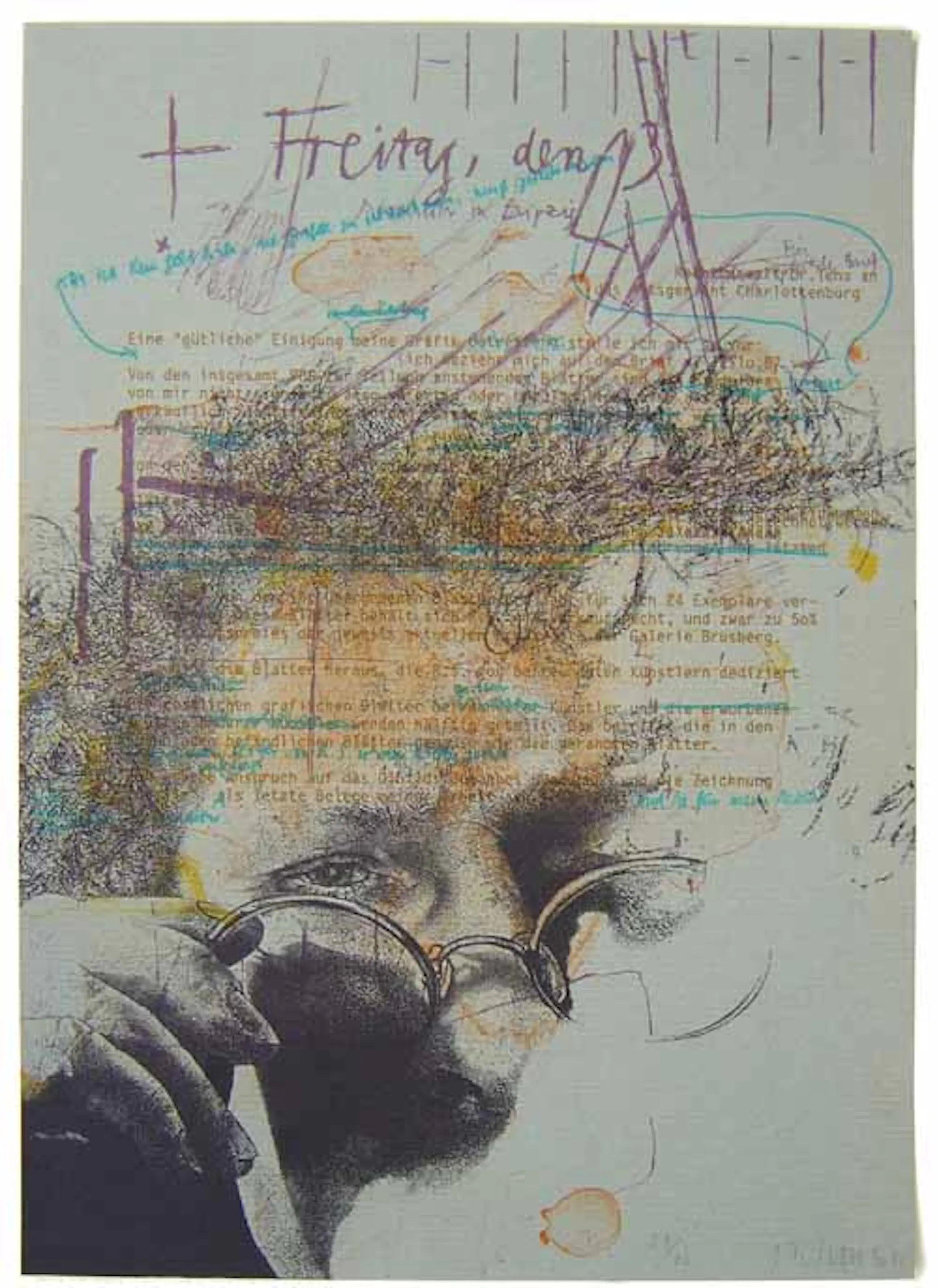 Zelfportret - Vrijdag de 13de, kleurlitho uit 1987, uitgegeven door de Berlijnse galerij Art Brusberg op 60 exemplaren, in potlood gesigneerd en genummerd 14/60.