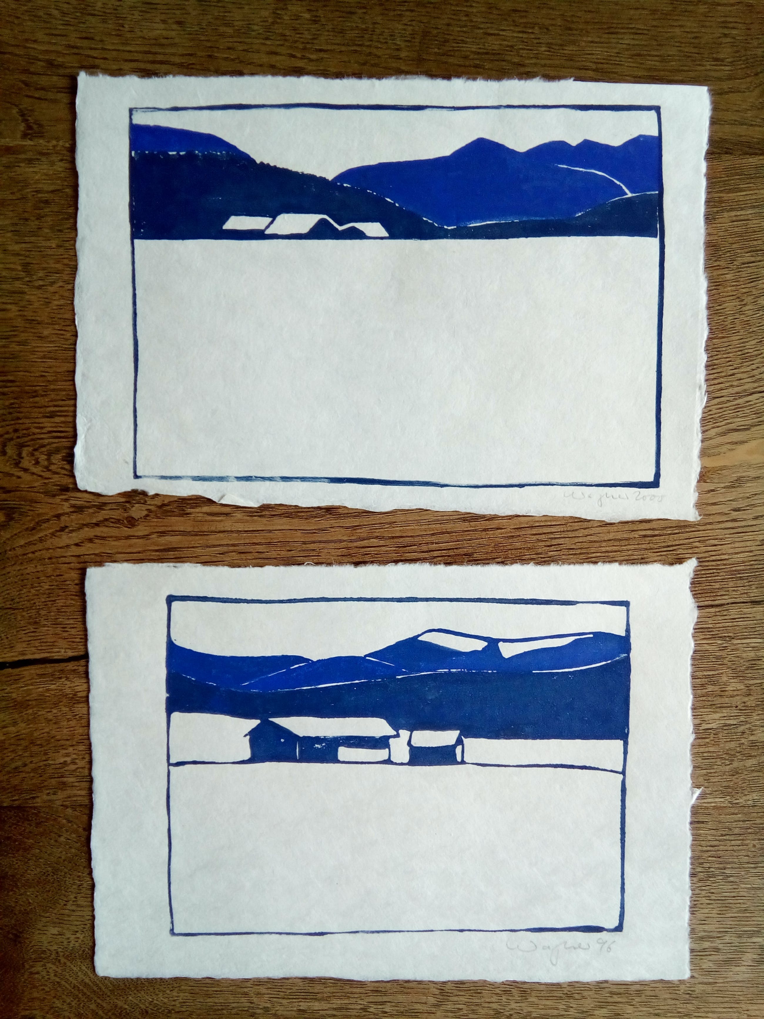 Twee kleine houtsnedes van Reiner Wagner op (vermoedelijk) Japans papier (zie foto's). De bladen zijn met de hand gesigneerd en gedateerd in potlood (1996 en 2000). Geen informatie over het aantal exemplaren. De graphics zijn bewaard in indrukwekkende blauwtinten. Garantie pp. Alleen in het kader van de Artpeers voorwaarden. Verzending naar Oostenrijk, Nederland en België mogelijk op aanvraag.