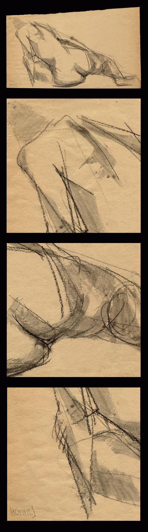 spontan und mit geübter Hand angefertigte Bildhauerzeichnung des 1934 in Freiburg geborenen Plastikers.