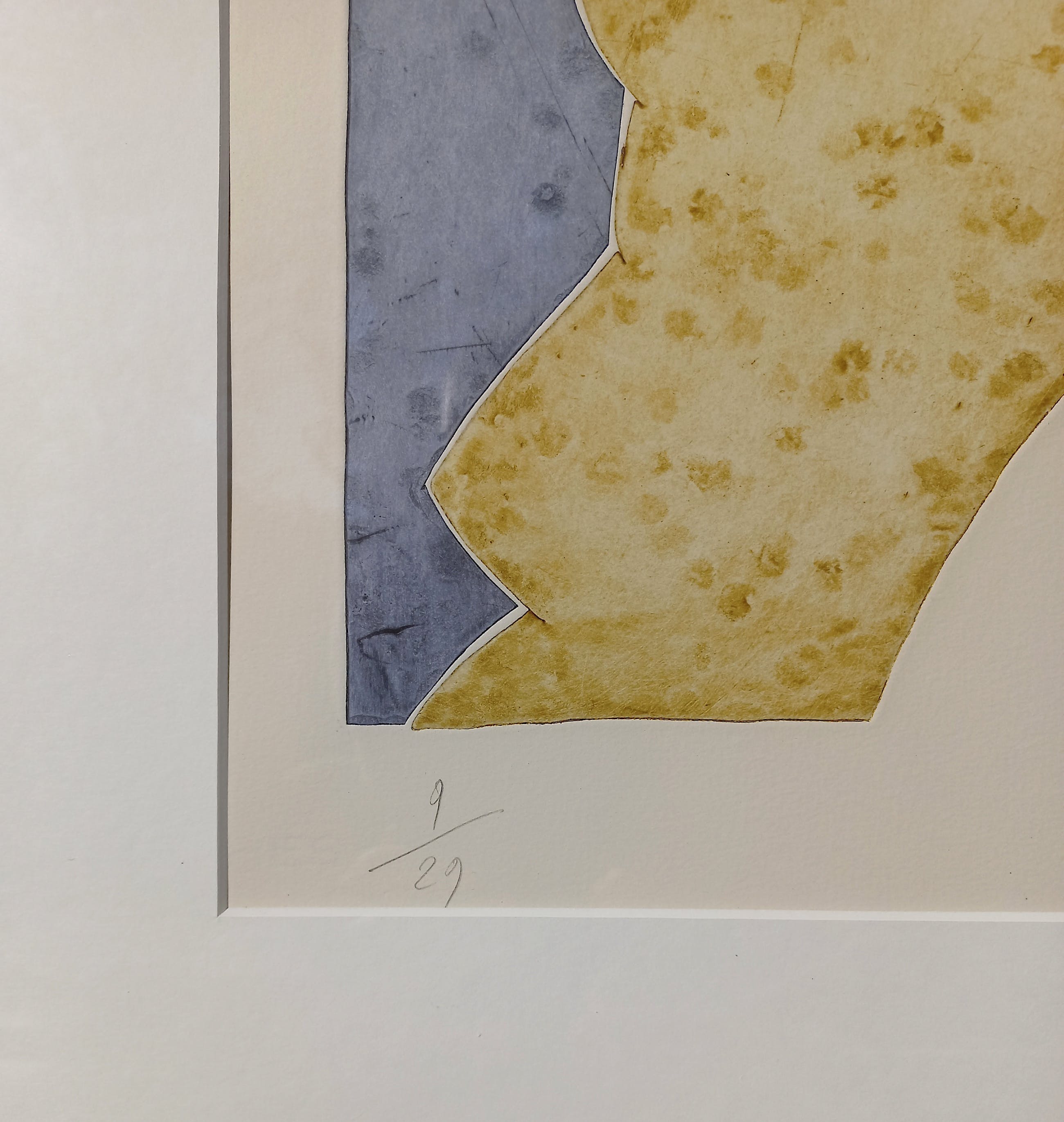 Afmetingen: 88cm x 76cm (blad), 65cm x 52cm (binnen passe-partout)