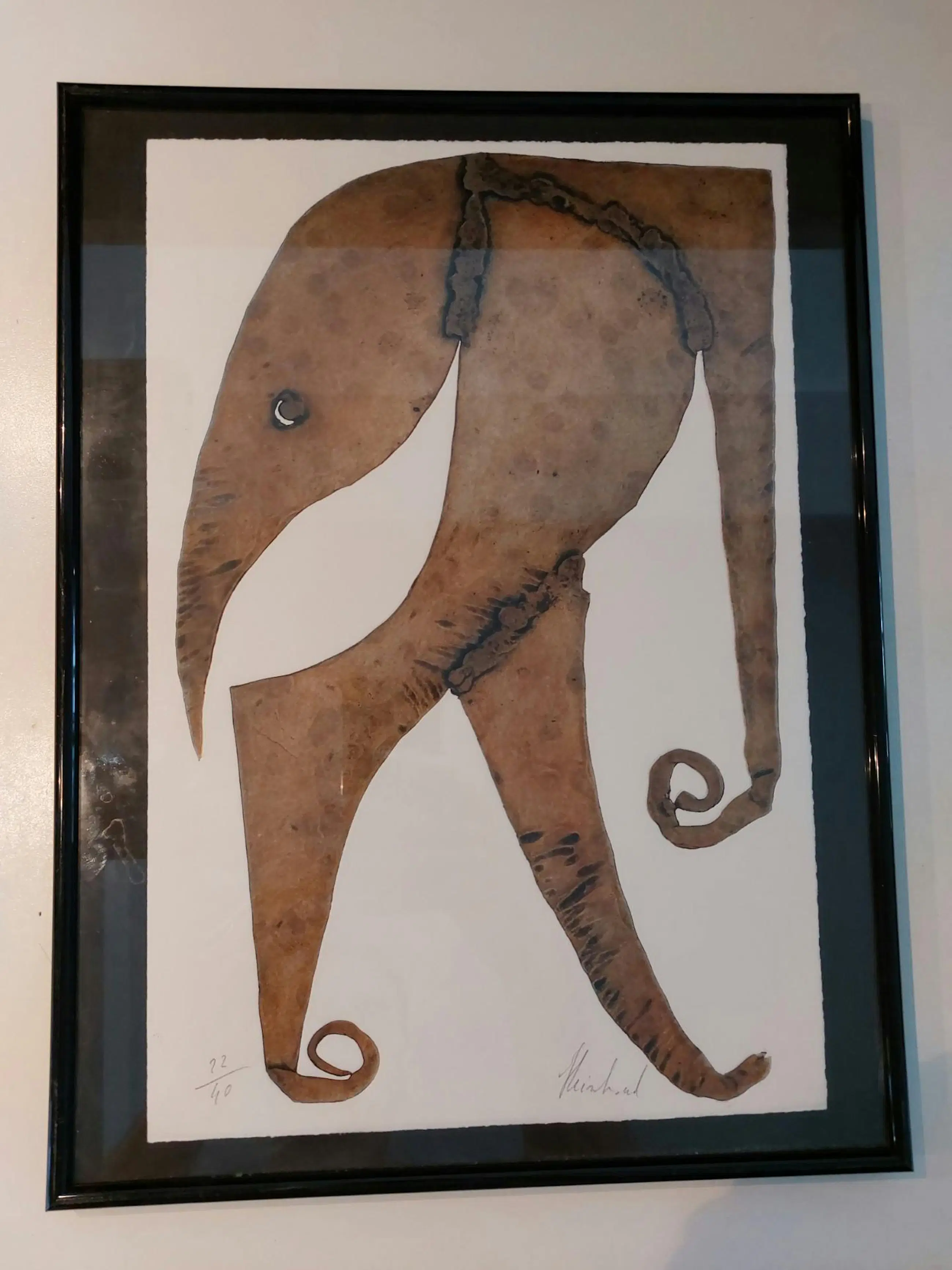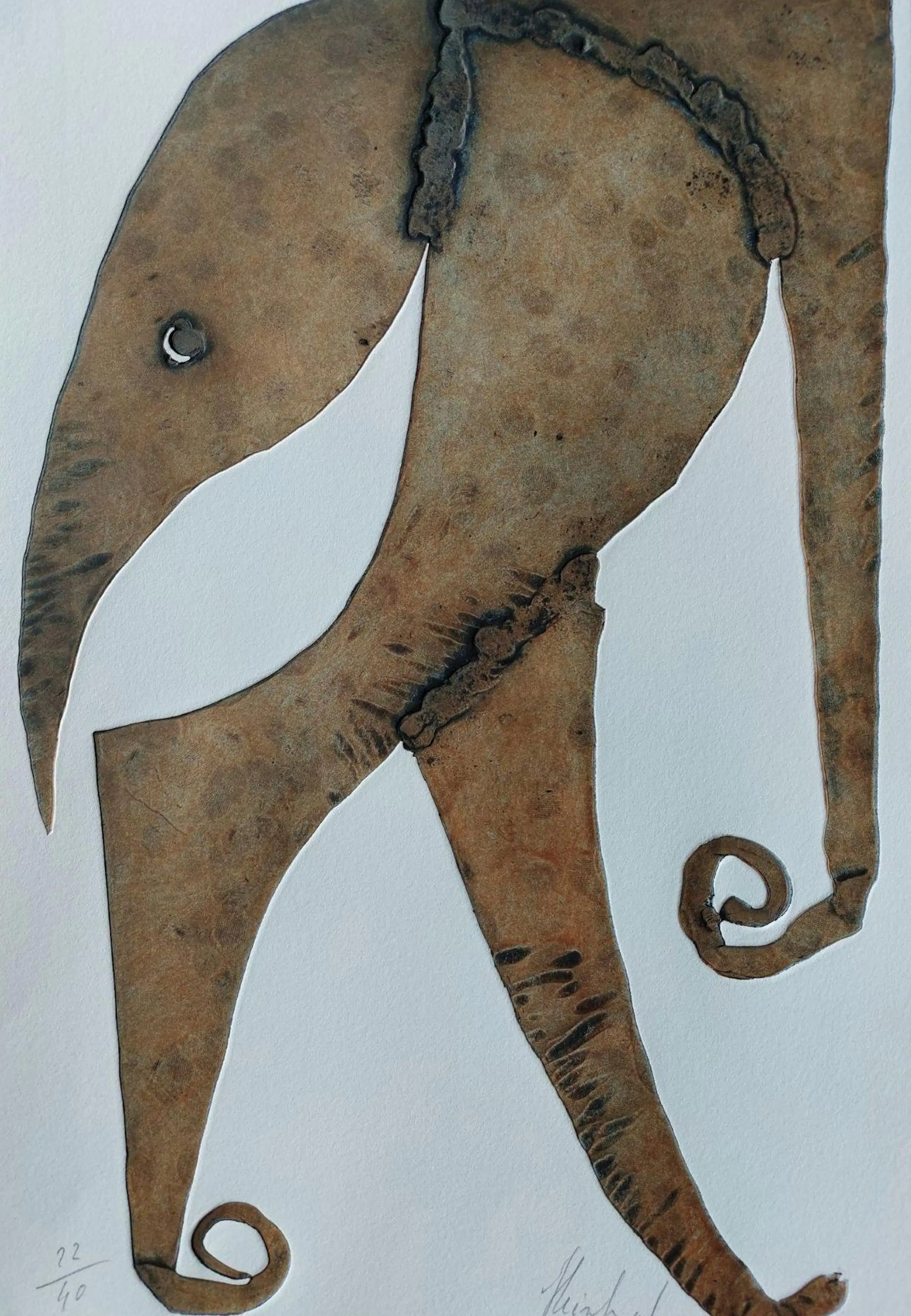 Kleurenets van Reinhoud d'Haese met een bijpassende vers van Hugo Claus getiteld "Evenaasten". Mooi reliëf in ets (zie laatste detailfoto).