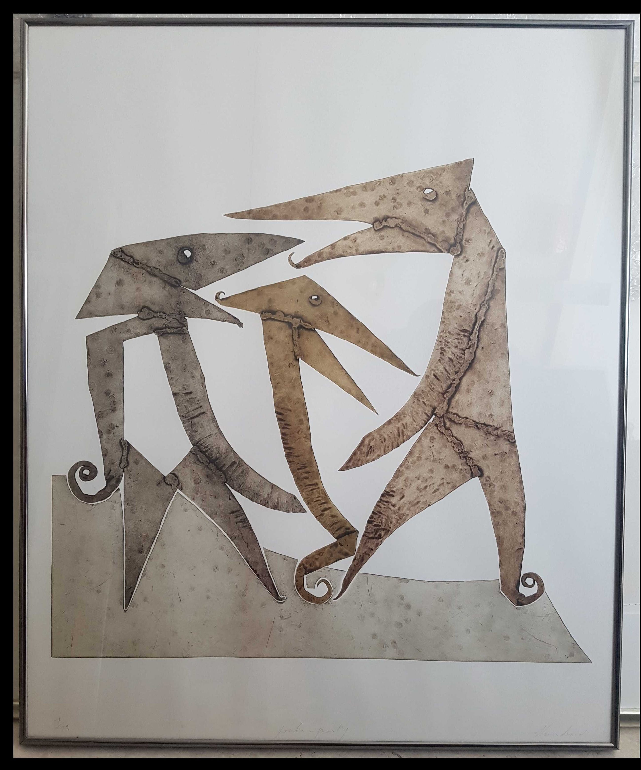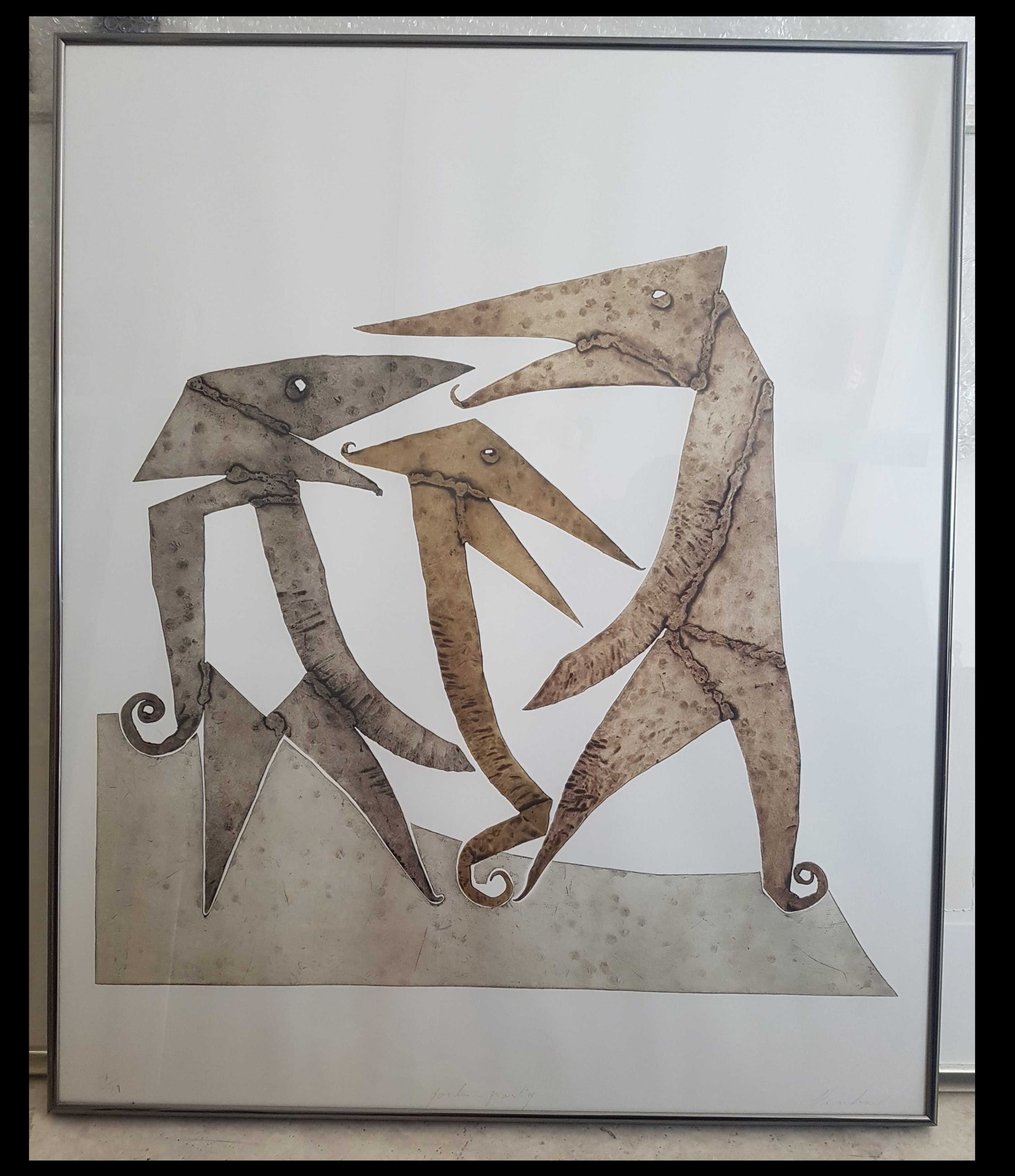 Reinhoud ( Reinhoud D'Haese ) (Geraardsbergen, 1928 - Parijs, 1 juli 2007) Zeer geslaagde litho / metaaldruk van de vlaams beeldhouwer, tekenaar en graficus Reinhoud in zeer goede staat en mooi ingelijst