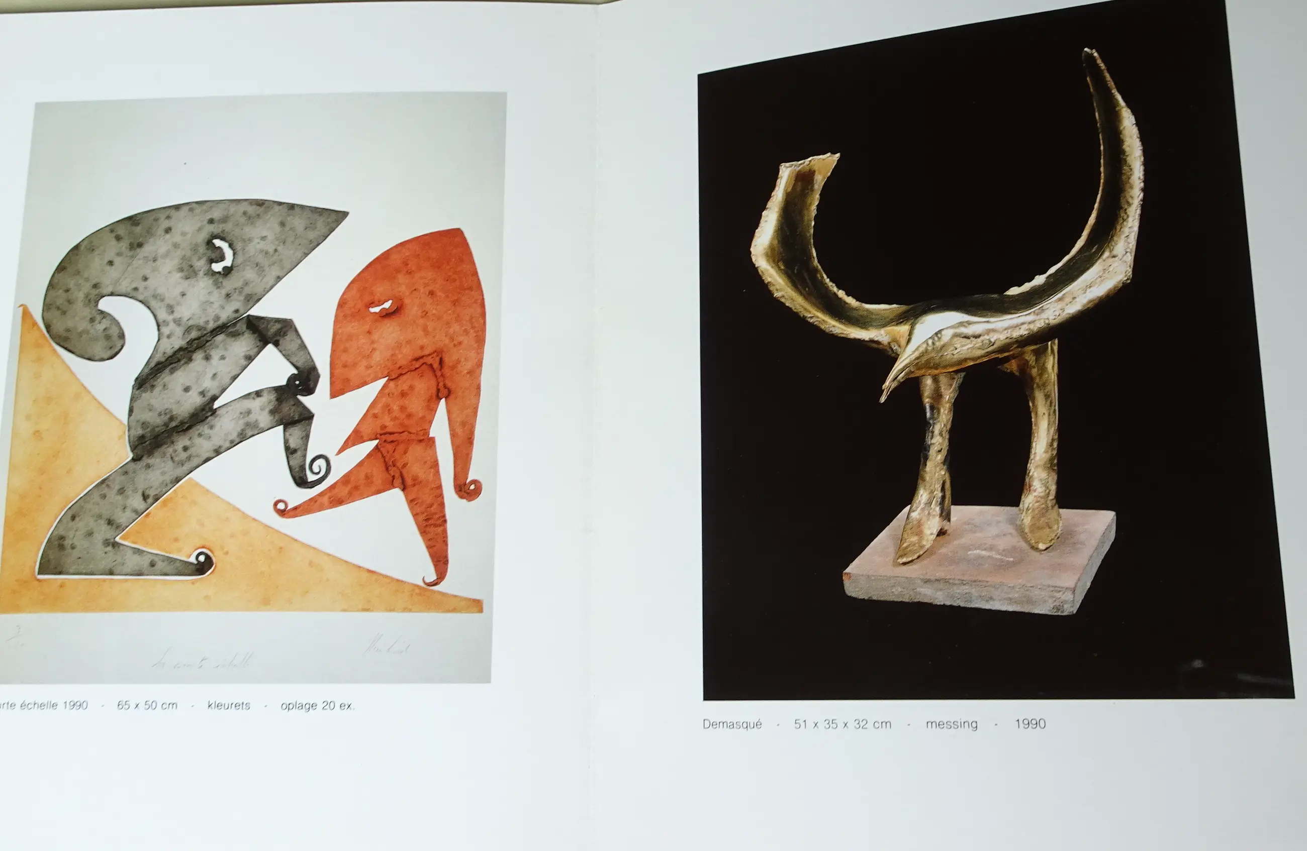 Boek met daarbij een drietal uitnodigingen met een hele bijzondere voor een vernissage. Gesigneerd Op voorblad de tekst ENCRAGES OEUVRESRECENTES 1990 - 1999 Uitgegeven door Guy Pieters Gallery 30 pagina's met kleurenafbeeldingen