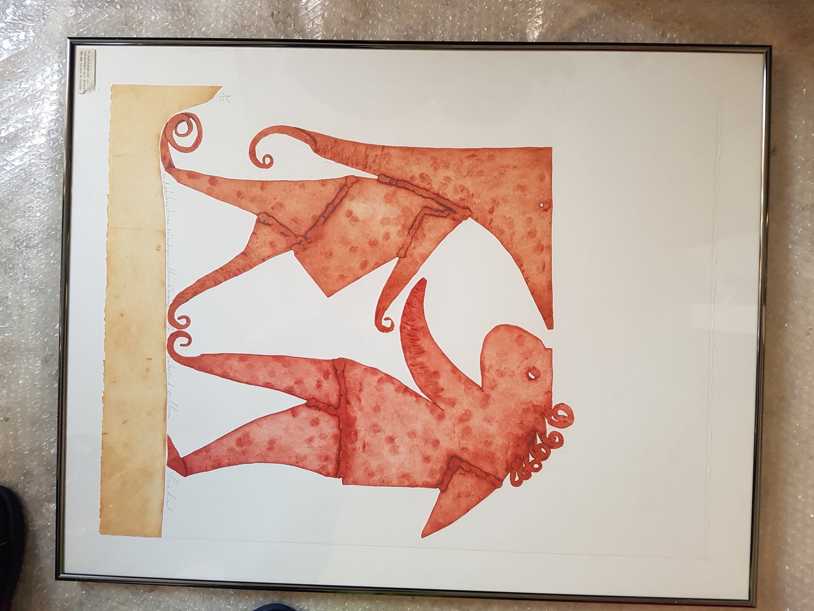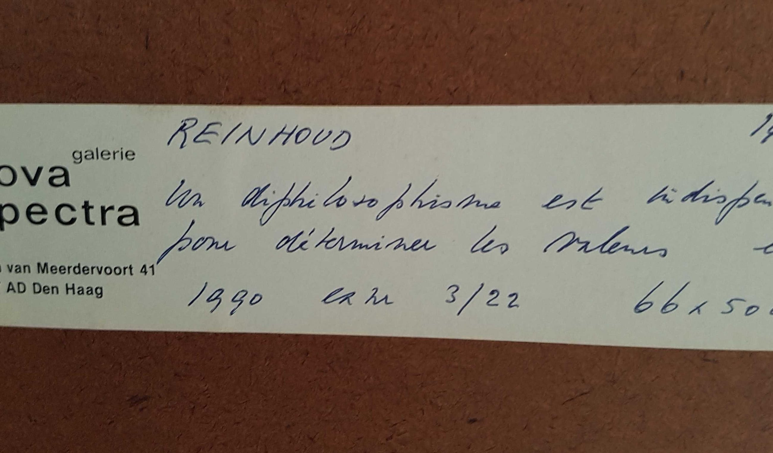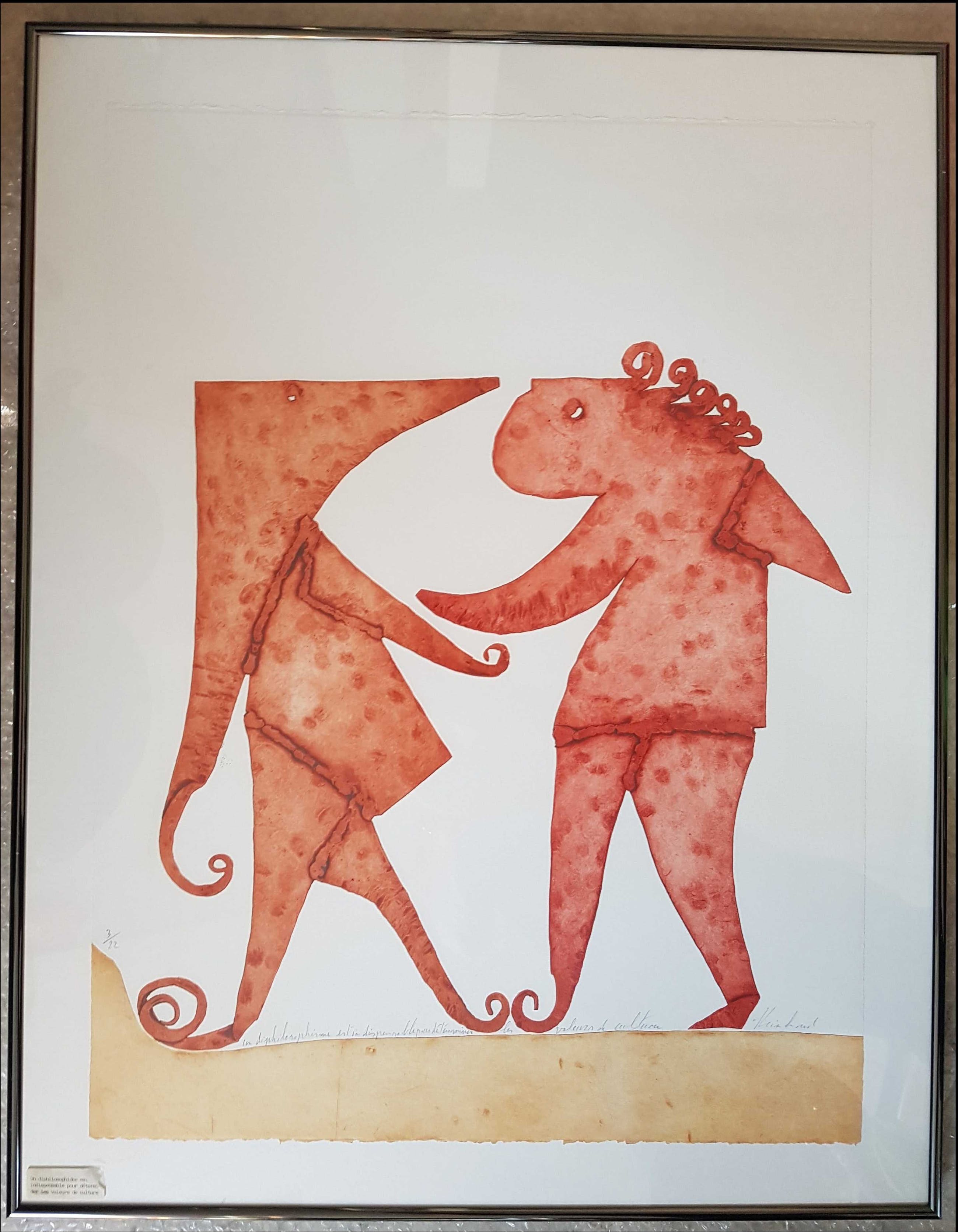 Reinhoud ( Reinhoud D'Haese ) (Geraardsbergen, 1928 - Parijs, 1 juli 2007) Zeer geslaagde litho/metaaldruk van de vlaams beeldhouwer, tekenaar en graficus Reinhoud in zeer goede staat en mooi ingelijst