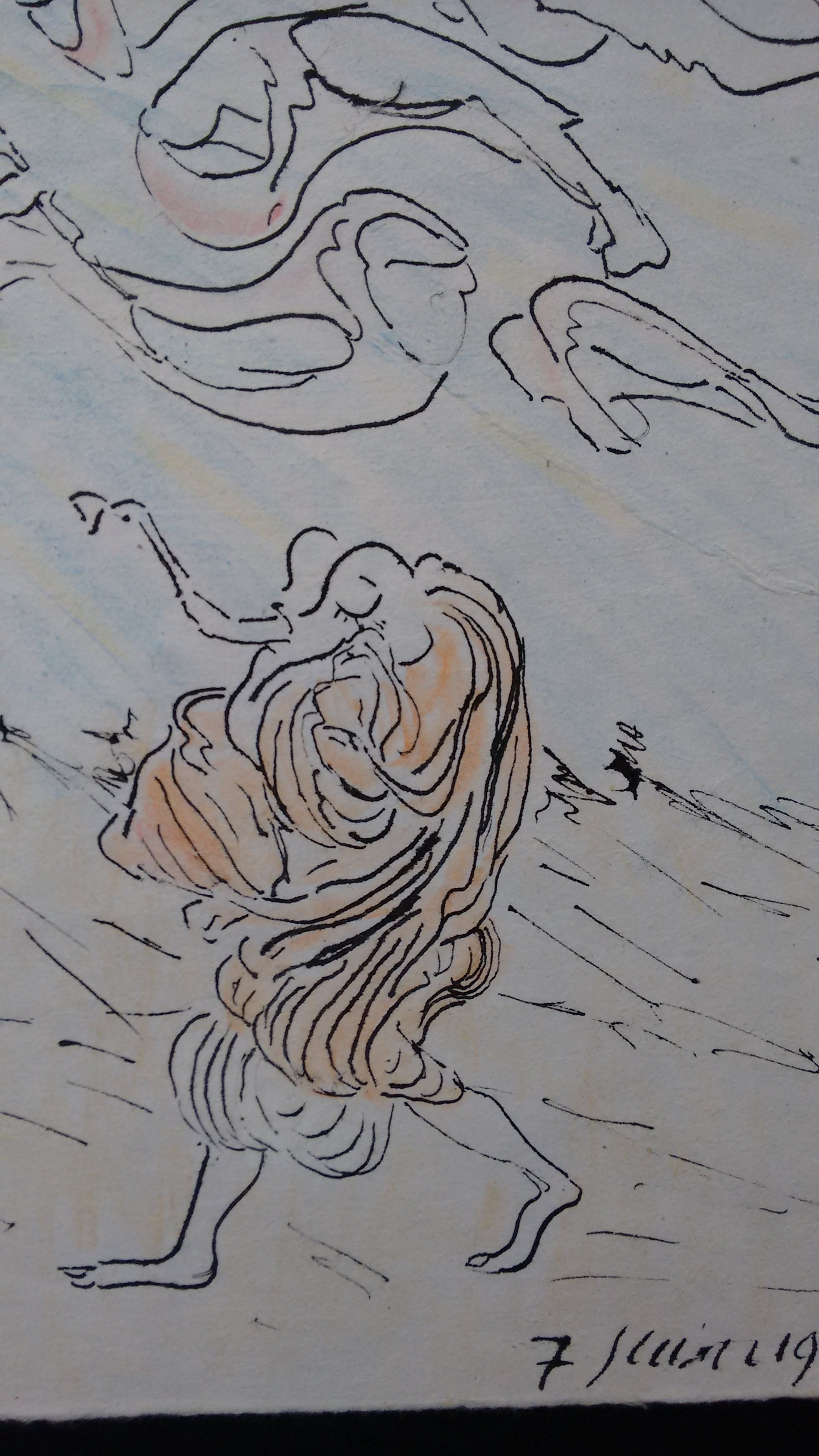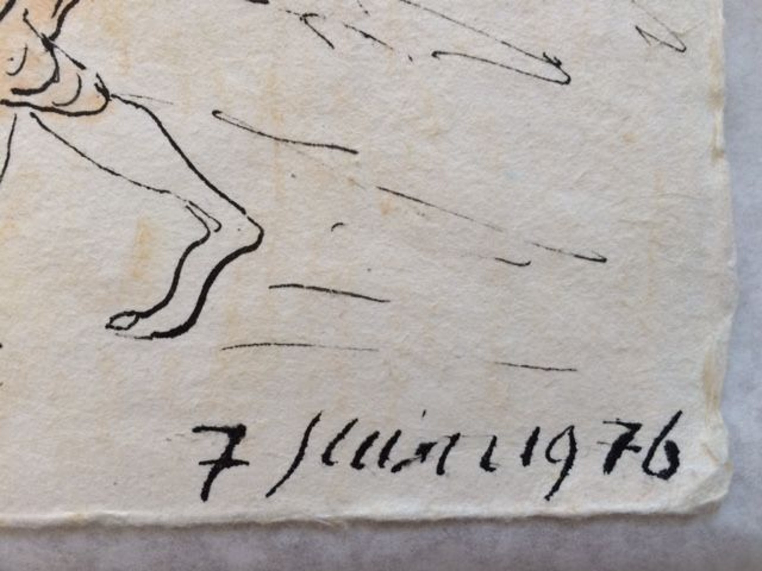 Originele tekening op papier van Reinhoud Gedateerd: 7 juin 1976 ( 7 juni 1976) Aluminium glazen lijst wordt meegeleverd