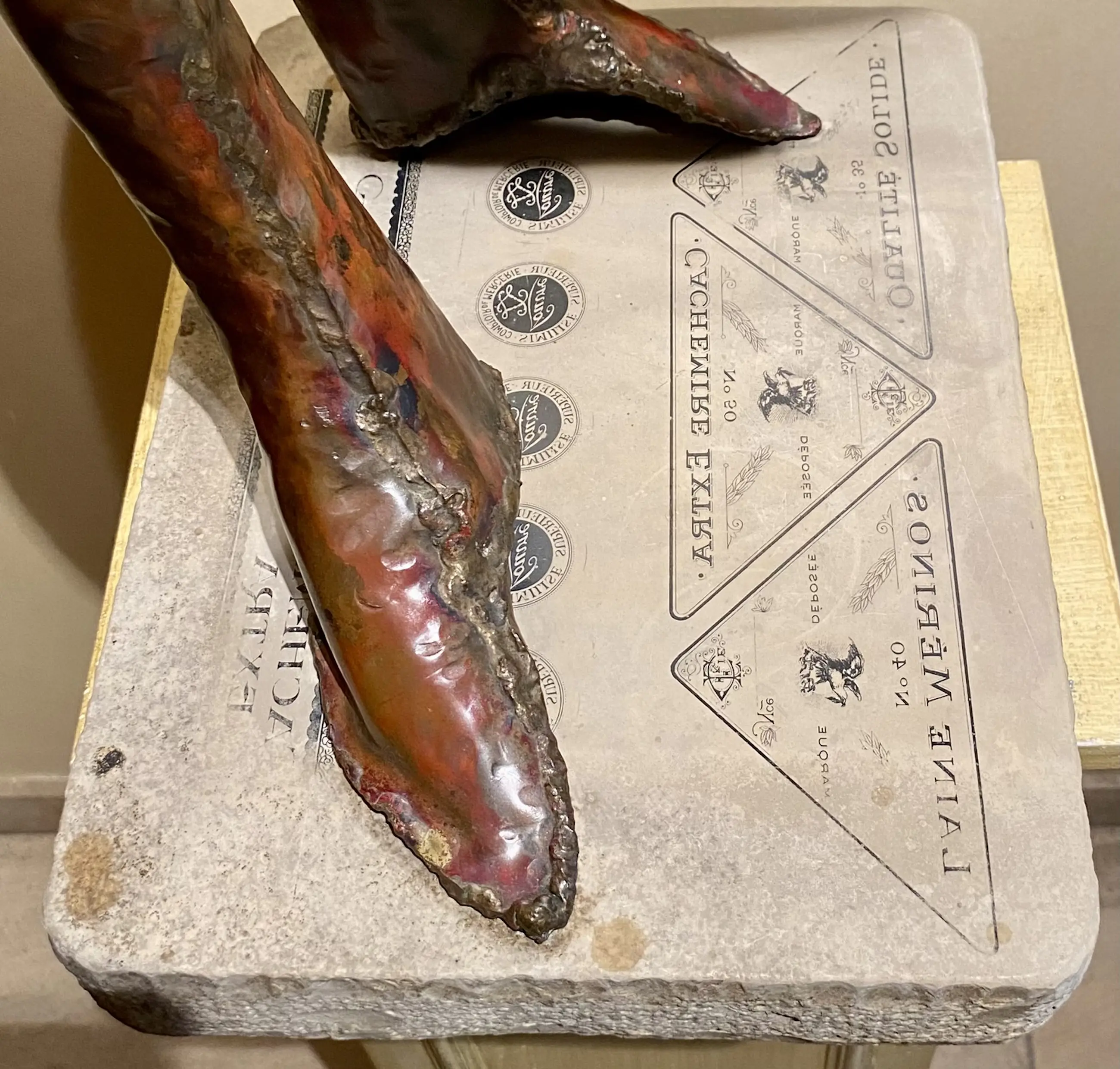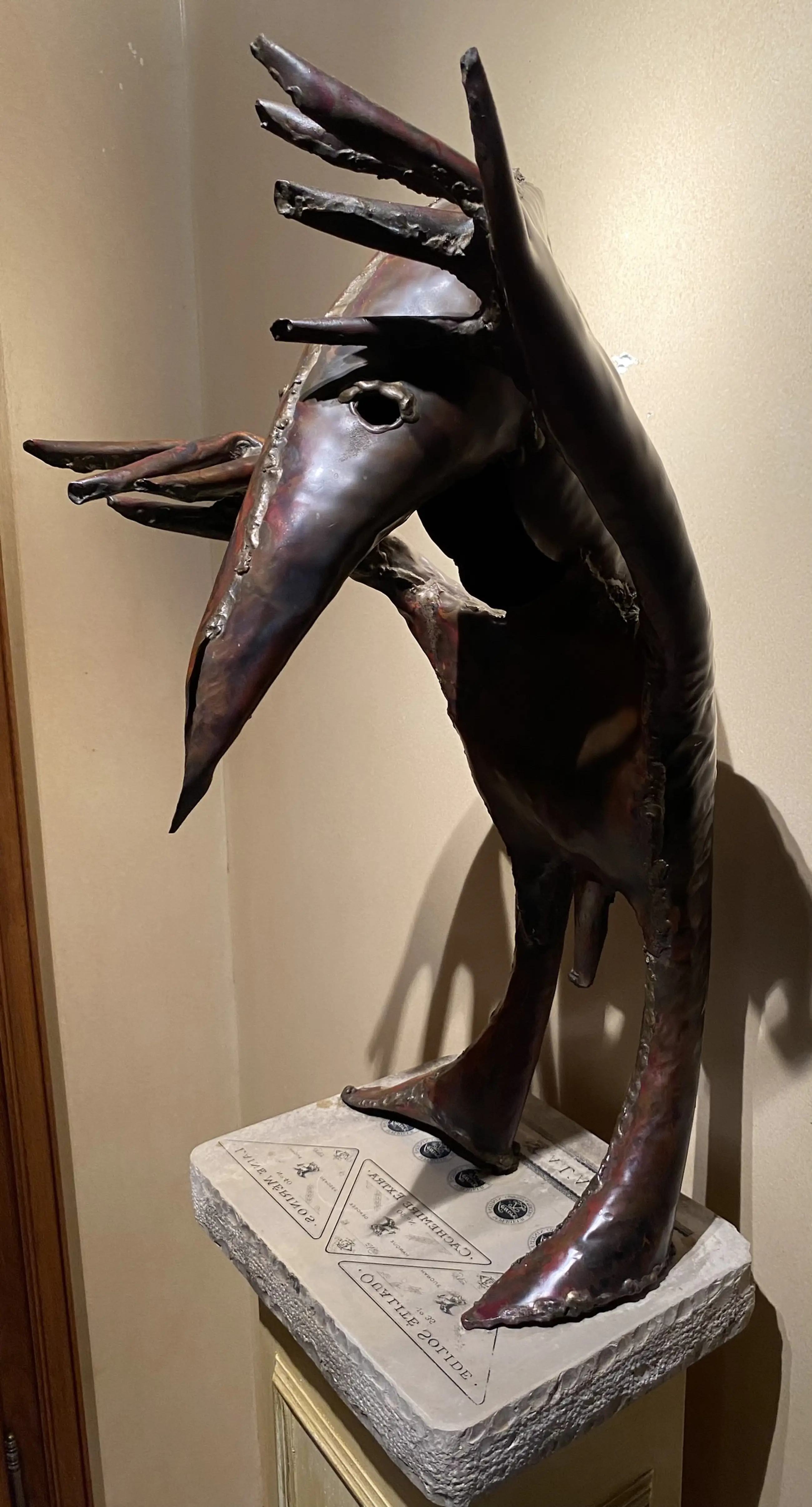 Het beeld staat beschreven in de catalogus "Reinhoud : Oeuvres recentes" van de tentoonstelling van 30/4/1994 - 24/5/1994 te Guy Pieters Gallery, Knokke-Zoute.