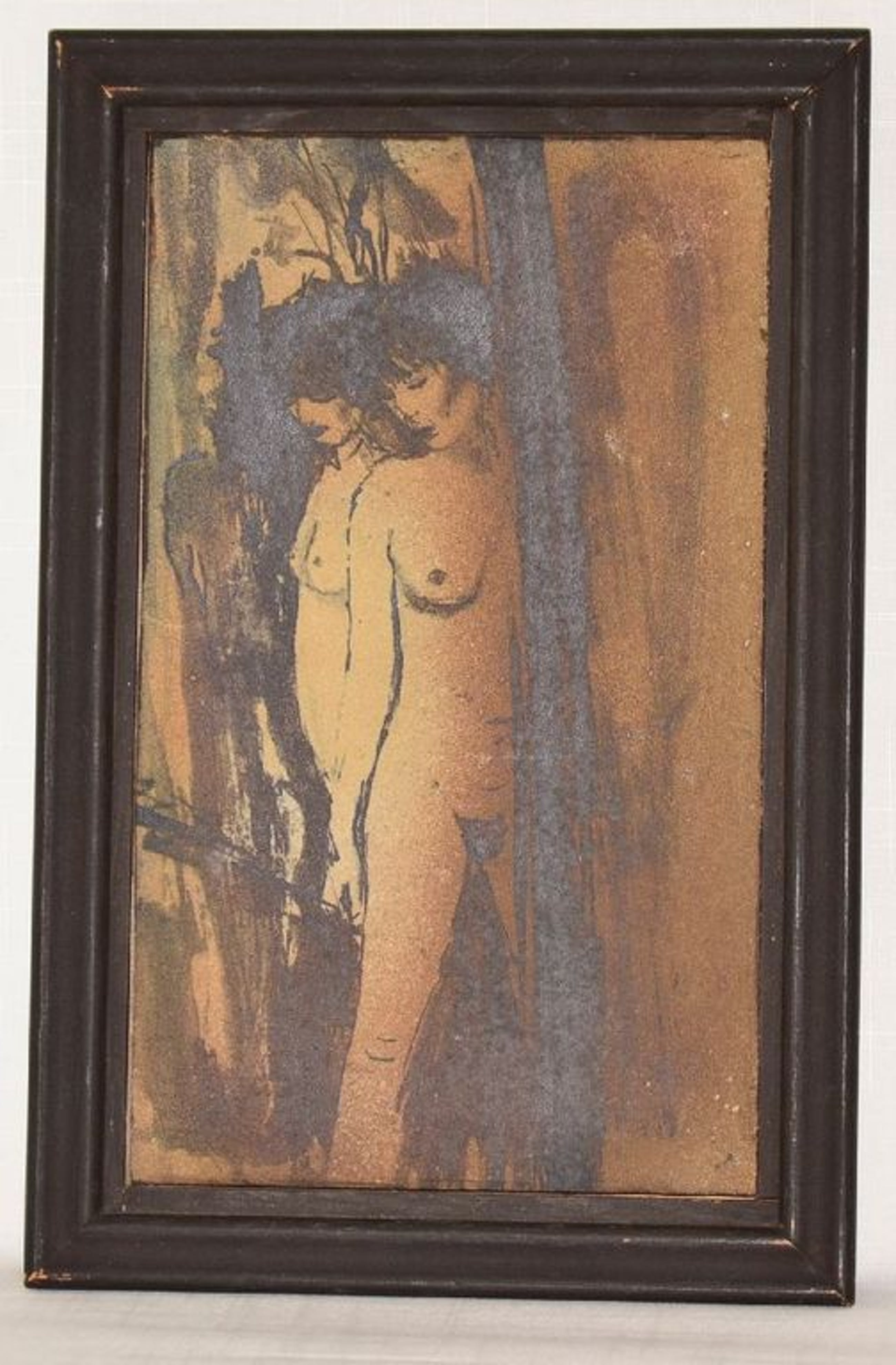 Keramisch tableau ‘twee naakten in deuropening’ van Reinier den Adel