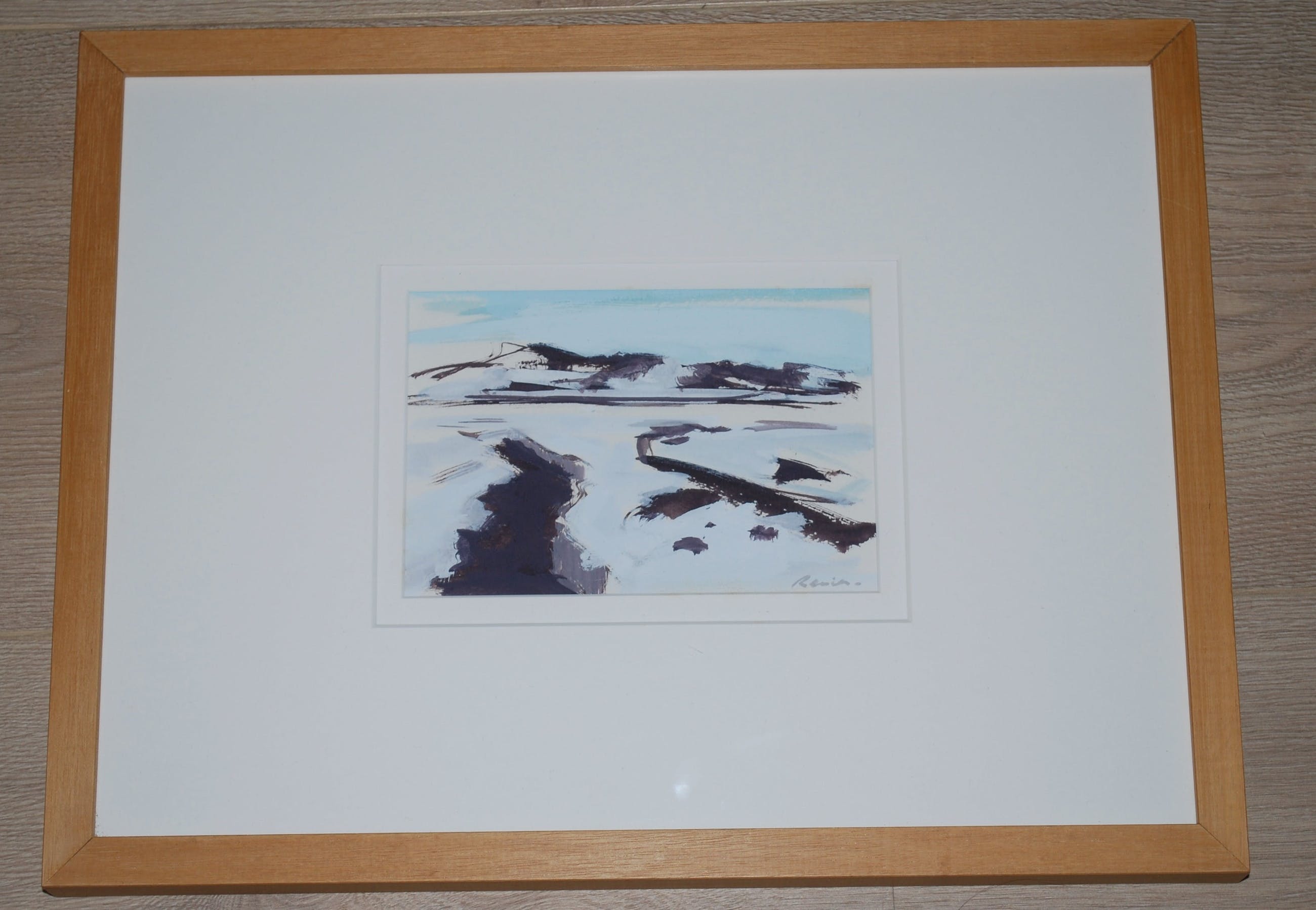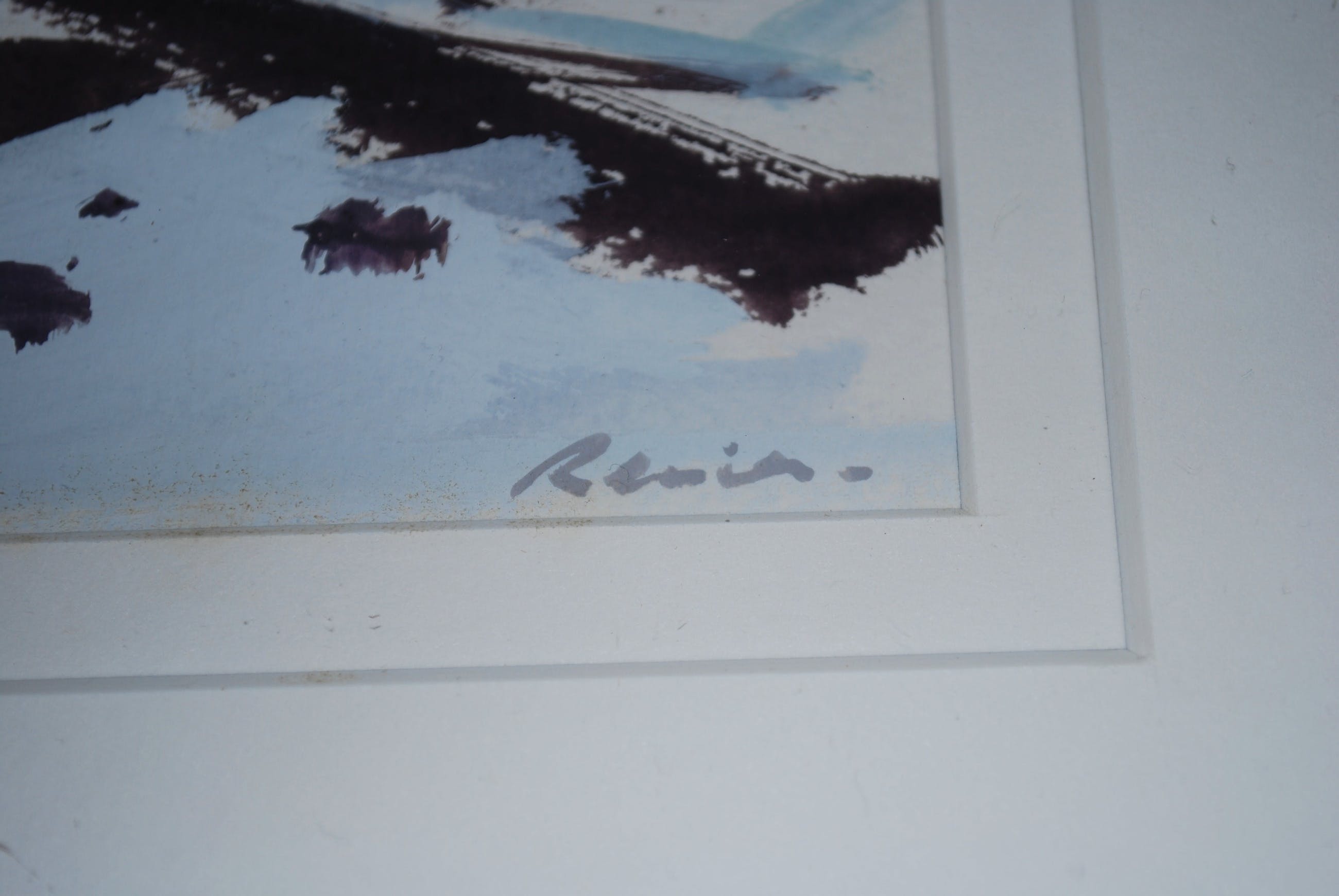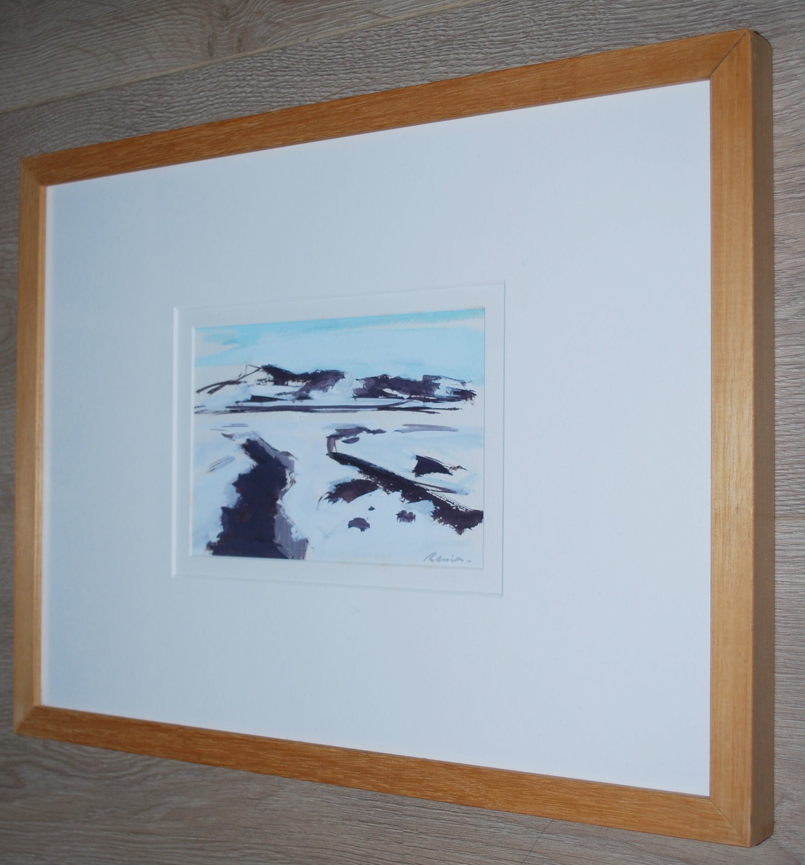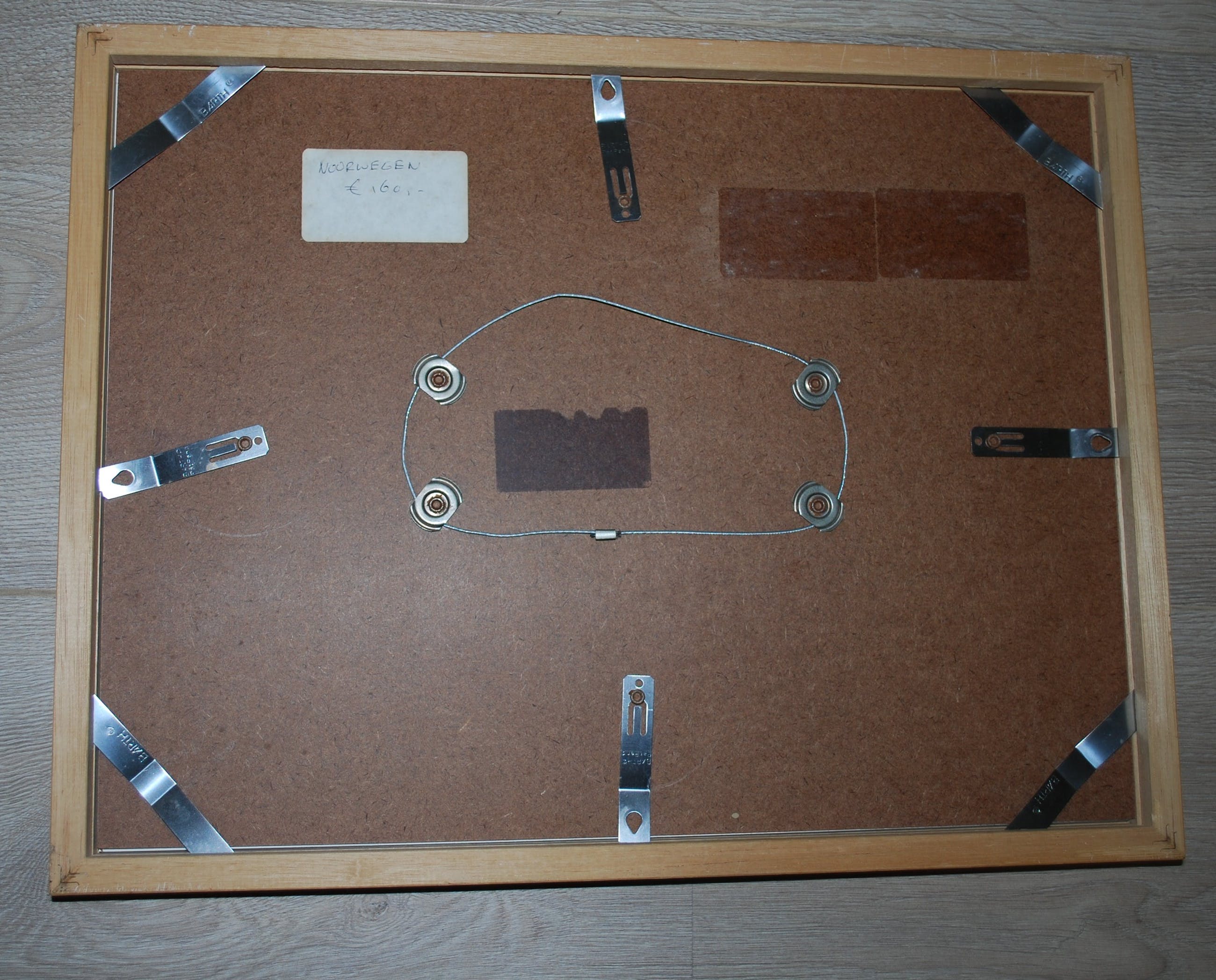 Achter een dubbel passepartout en glas, in een fraaie houten wissellijst. Het geheel is in zeer goede staat.