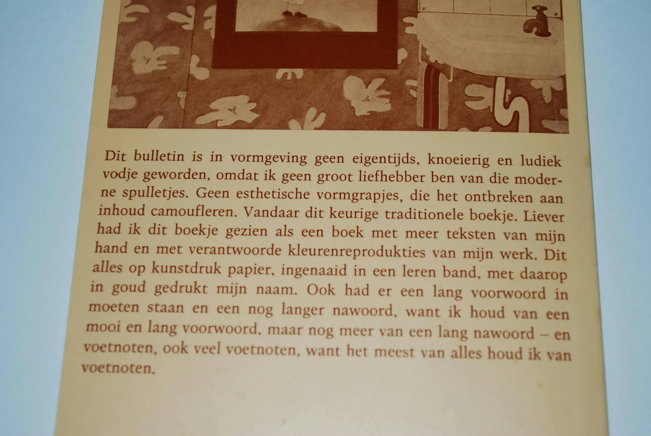 - Oplage 1500, met omslag. Uitgave Kempen. -2009, 160 pag. hardcover met omslag. Uitgave Orange House. -2020, 176 pag. Kunstmuseum Den Haag. Uitgave Samsara. Hardcover met omslag. -Dagboekfragmenten 1972-74, 40 pag.