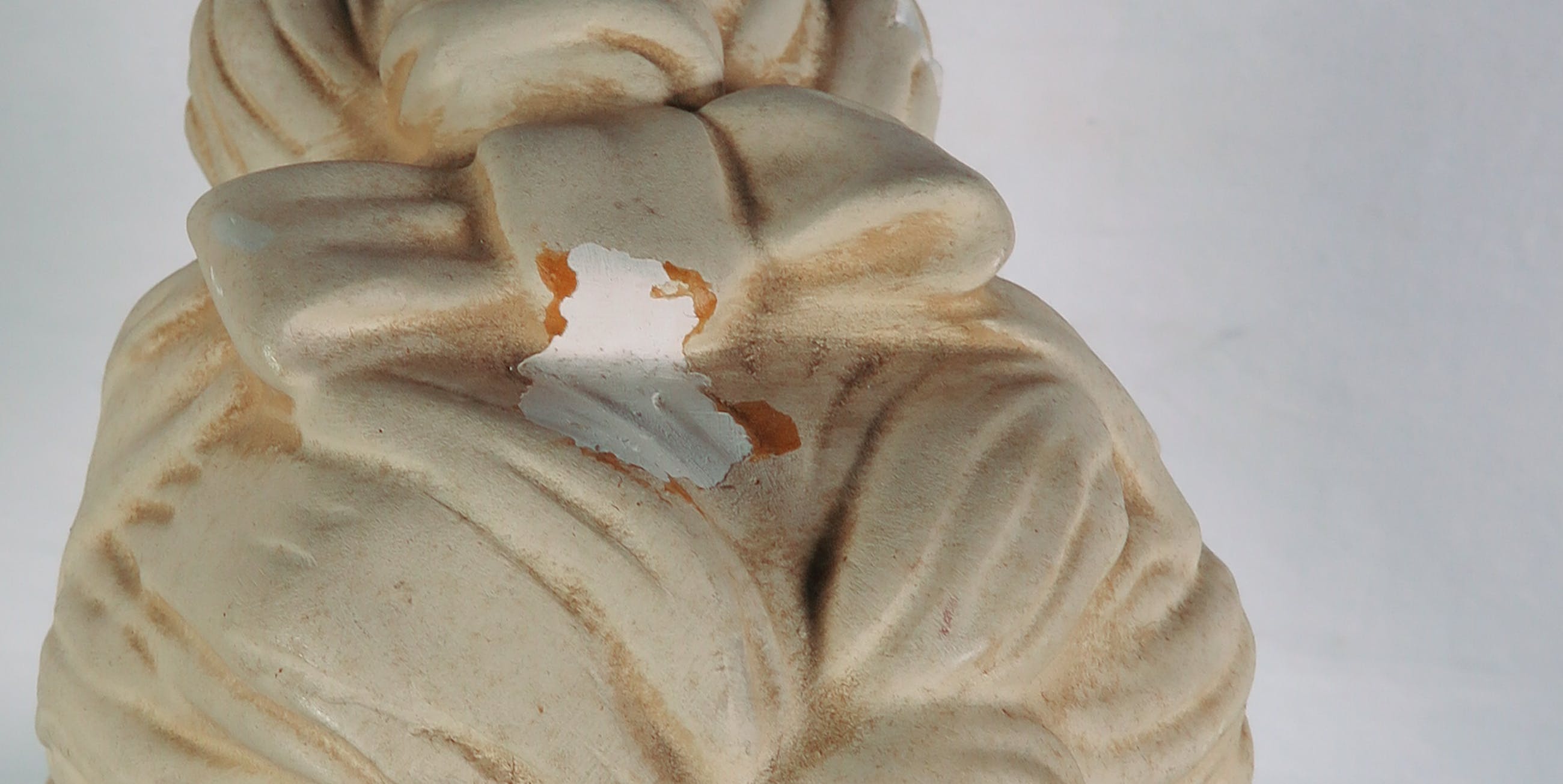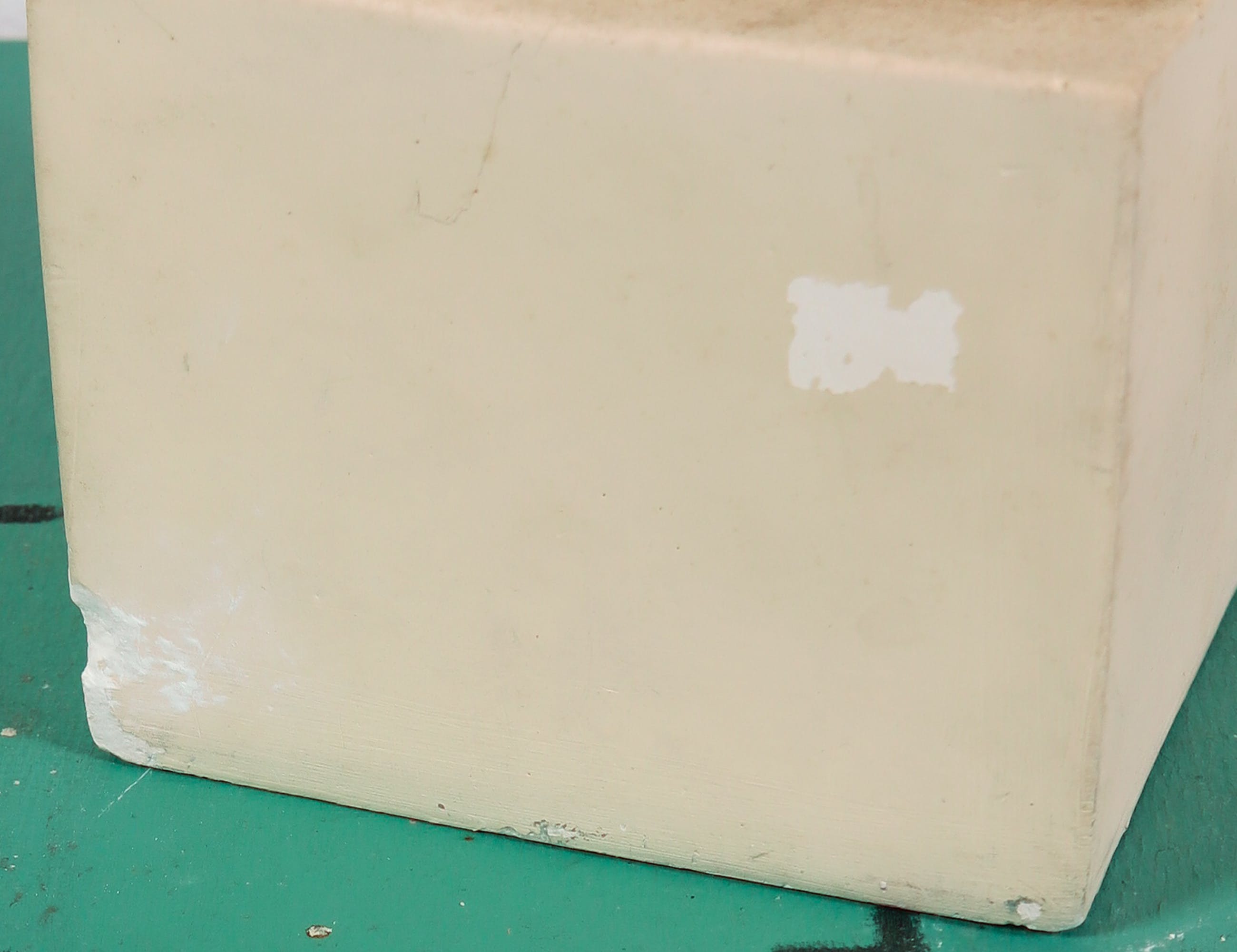 | Matige tot redelijke conditie. Het beeld heeft meerdere beschadigingen en mist waarschijnlijk ook een deel van de applicaties (op het hoofd). Zie foto's voor een impressie. Ook de groene plaat is her en der wat beschadigd. | |