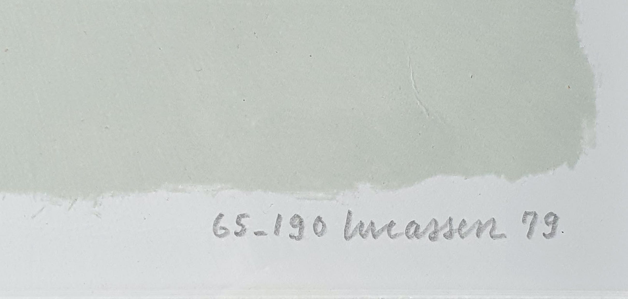 Kunstenaar: Reinier Lucassen Titel: Is art Jaar: 1979 Techniek: Litho Oplage: 65/190 Gesigneerd: Rechtsonder Afwerking: moet ingelijst Afmeting voorstelling (HxB): 66 x 50,5 cm Afmeting blad (HxB): 75 x 59 cm Conditie werk: Zeer goed Conditie lijst: Gebruikt Referentie: ZK300878 Verdere info: Gebruikte maar nette aluminium lijst