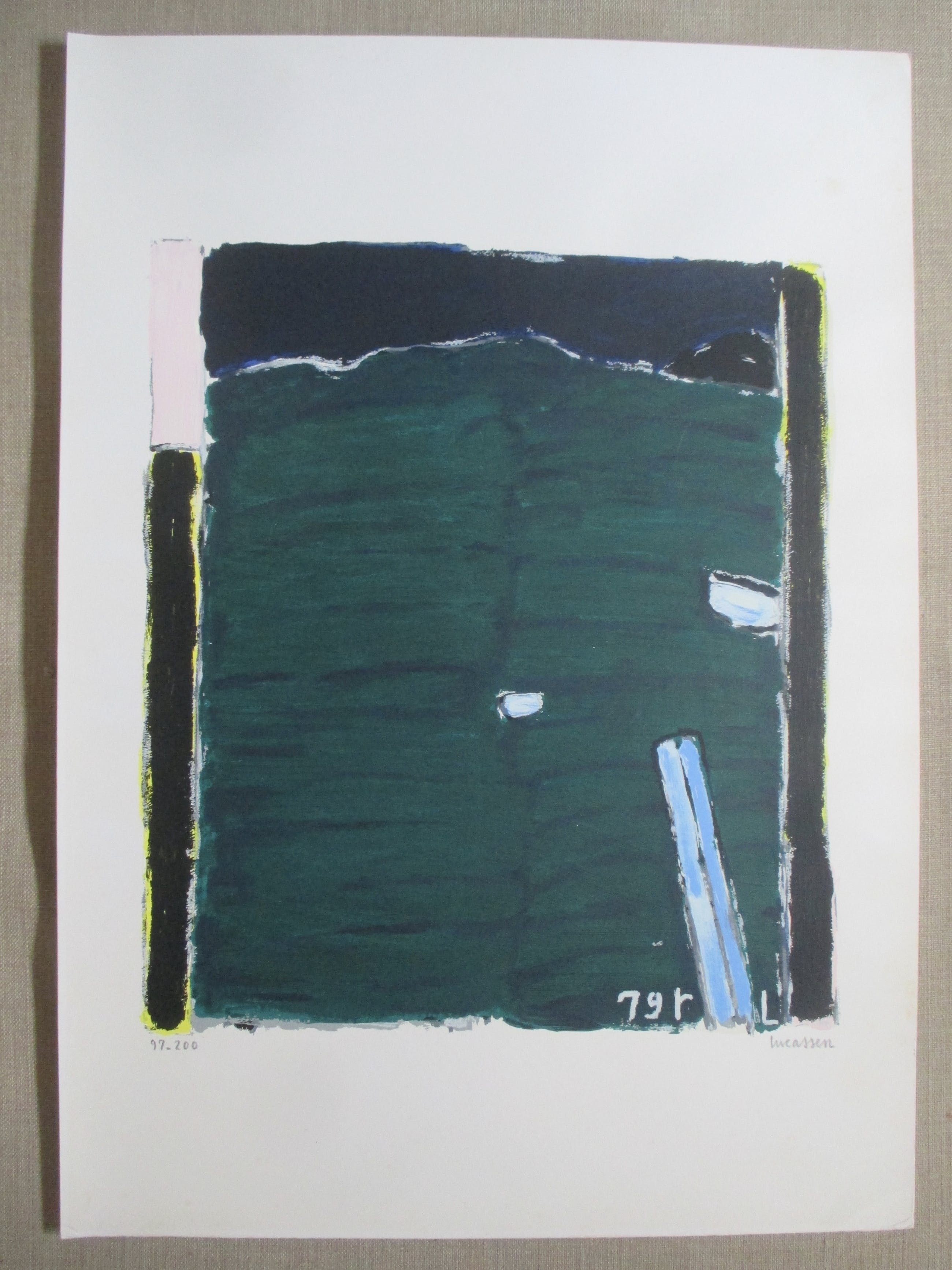 Litho van Reinier Lucassen, gesigneerd en genummerd in potlood. Verzending tussen twee platen, 9,20, aangetekend 11,20
