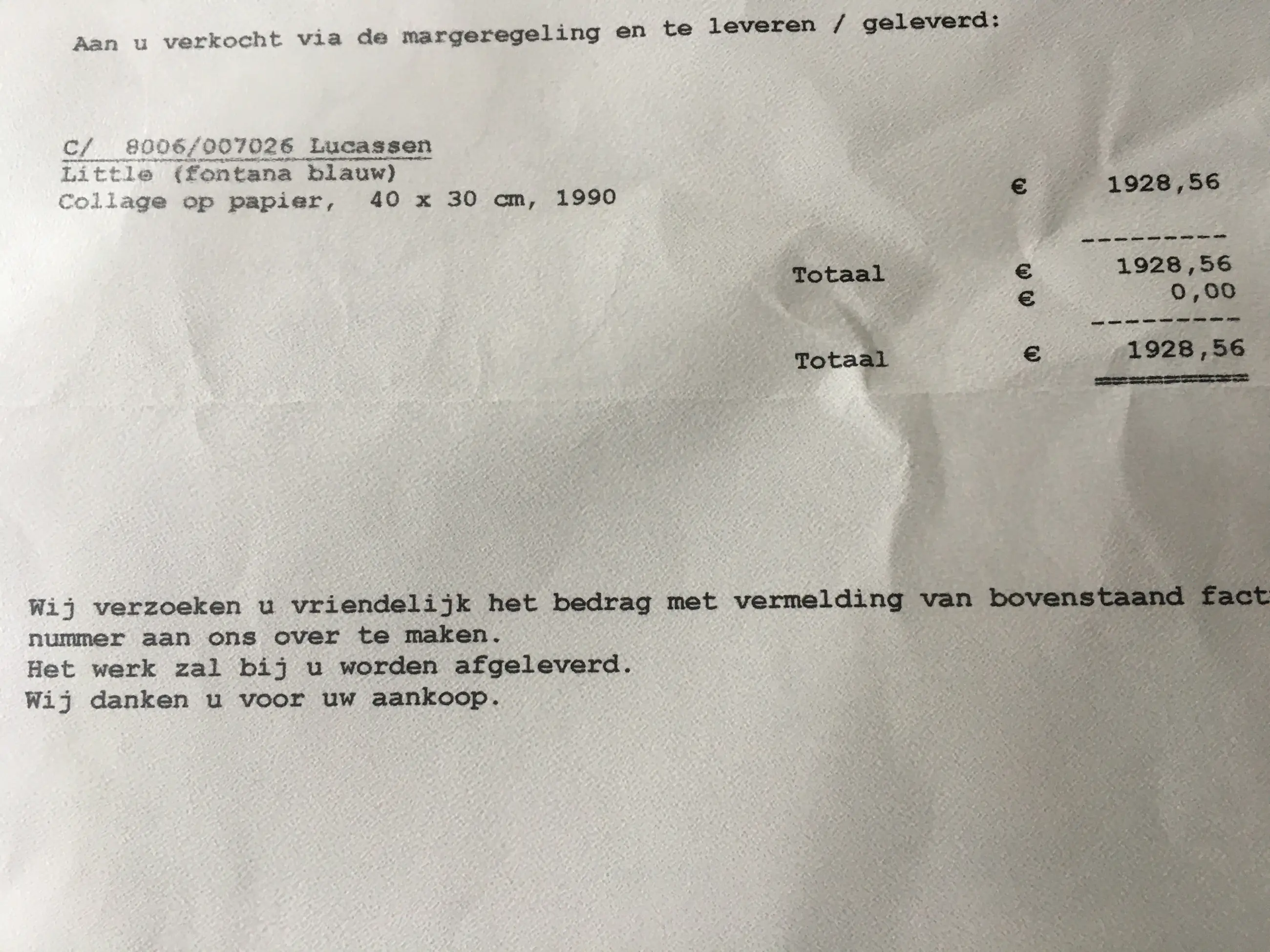 Uniek en origineel werk, collage op papier uit 1990, aangekocht in 2002 bij Galeries Nouvelles Images in Den Haag. Aankoopbon ad €1928,56 bijgevoegd. Professioneel ingelijst en in goede staat. Dit unieke werk onderscheidt zich nadrukkelijk van het aanbod van soortgelijke afbeeldingen in de vorm van litho of zeefdruk.