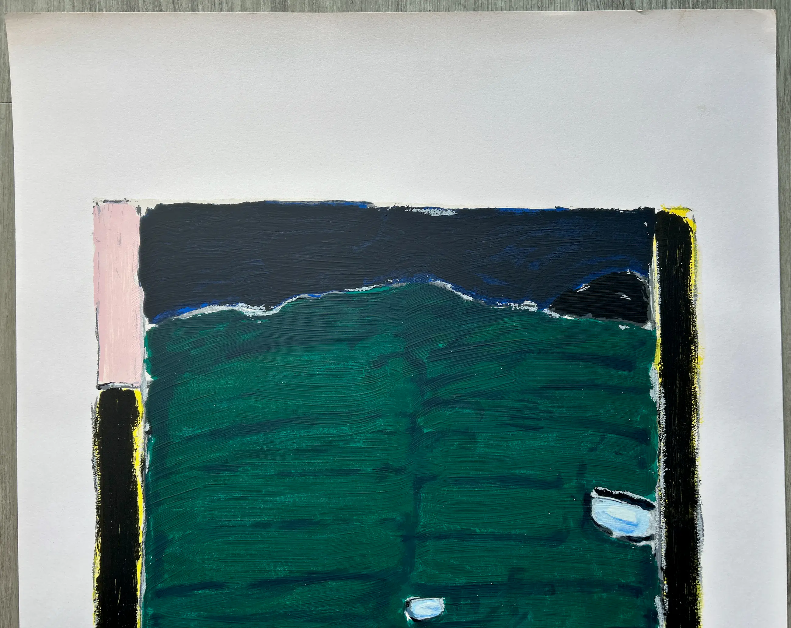 Conditie: zeer goed. Vel heeft vlekjes / verkleuring boven en vouwtje hoek, zie foto's. Afmeting: afbeelding 45 x 40 cm. Wordt zorgvuldig verpakt en verzekerd verzonden.