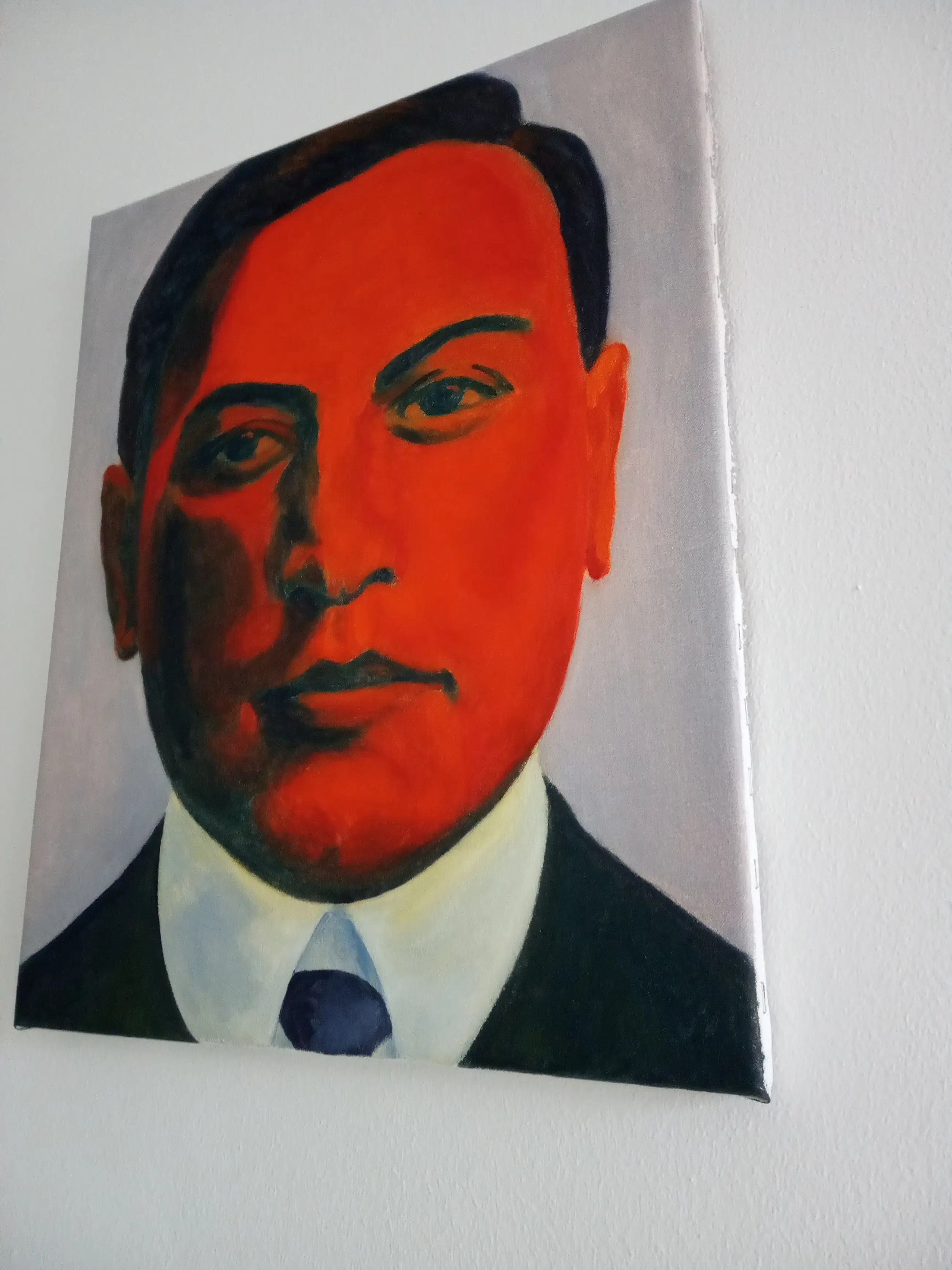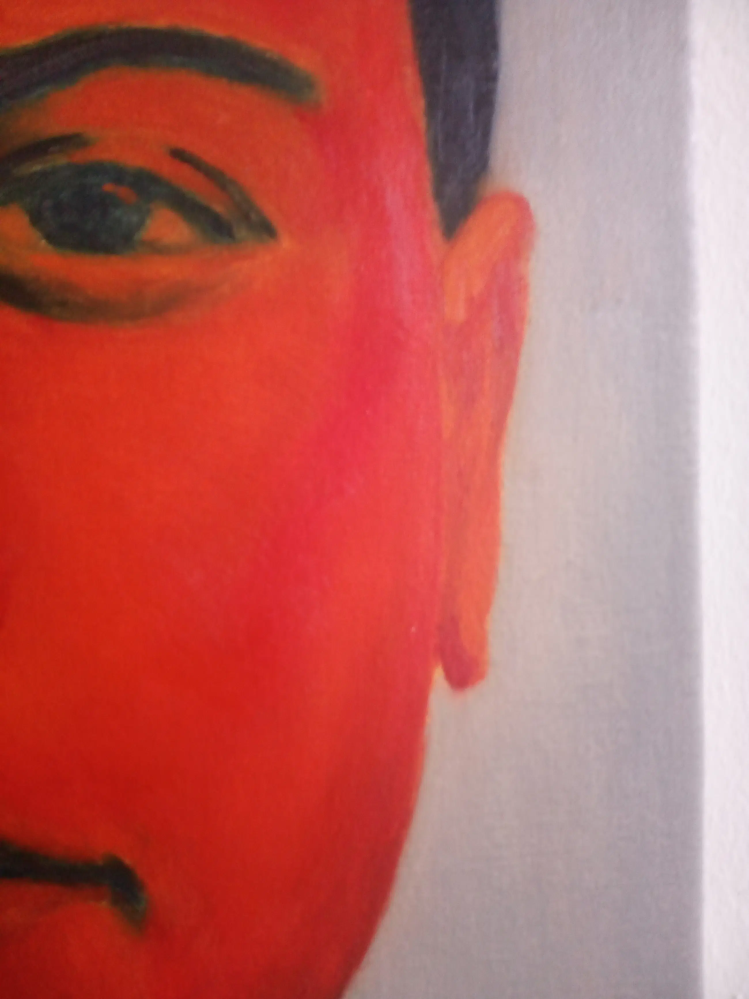 Werk is handgesigneerd aan de achterkant met houtskool. Meer dan levensgrote afbeelding van het expressieve gezicht van een crimineel. Hierdoor zal de haast pop-art achtige uitvoering van dit werk niet vervelen. De geportetteerde kijkt je aan. Werken uit deze serie worden verkocht tussen de 400 en 450 euro. Op Kuntveiling mag dit werk voor 350 euro worden aangeboden.
