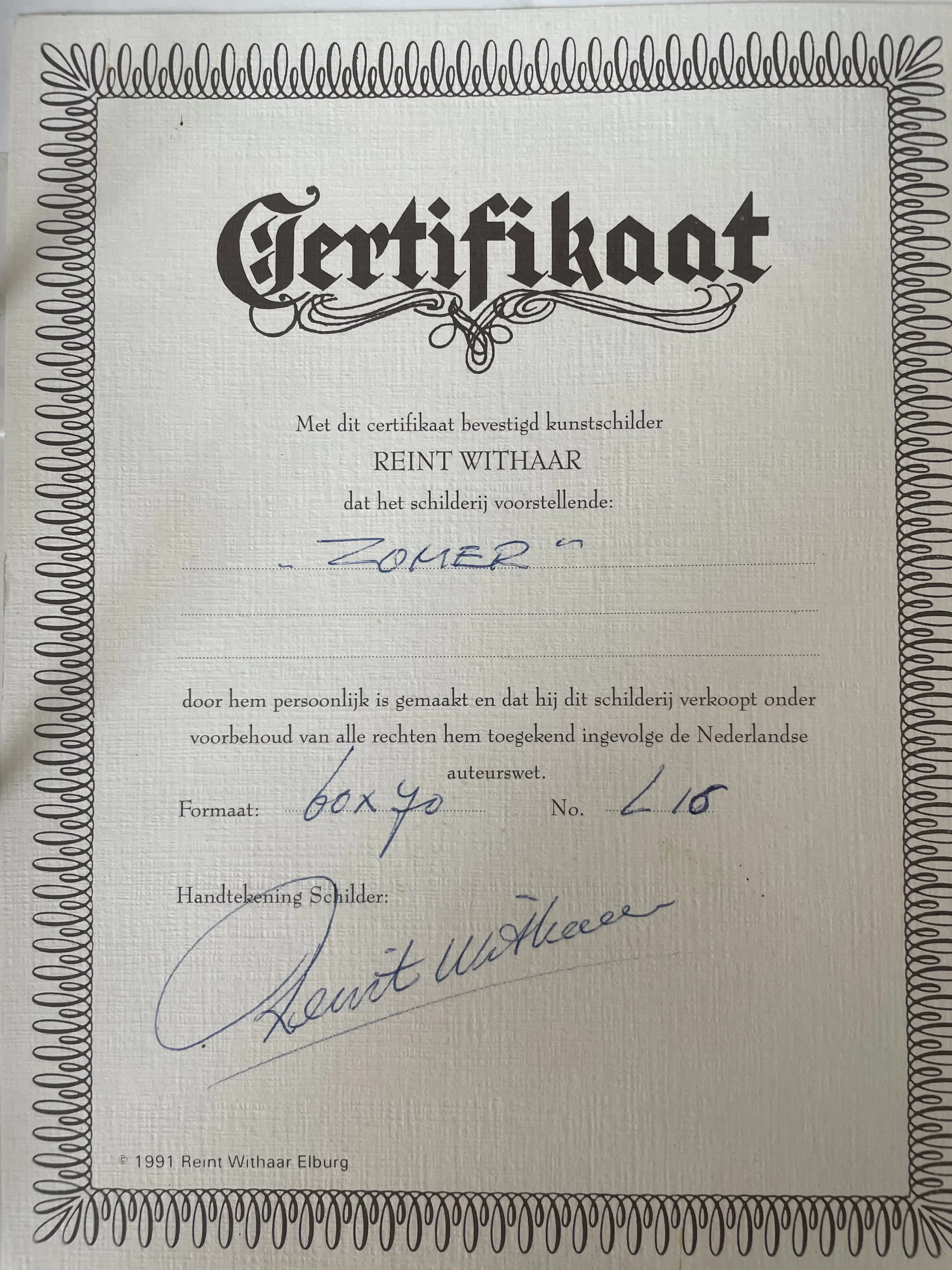 Zomer van Reint Withaar, olieverf op doek. Inclusief certificaat. 1991