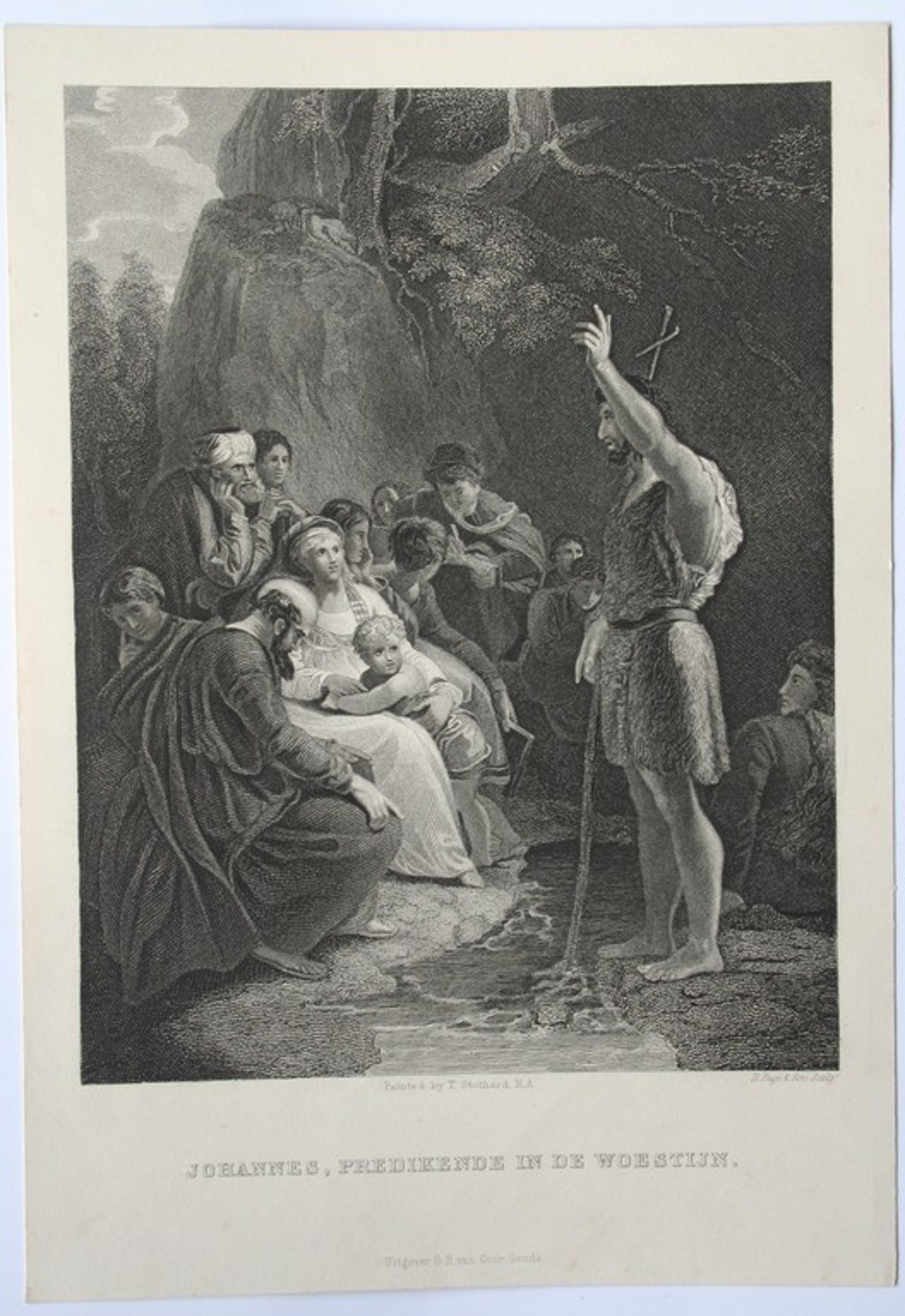 - Johannes, predikende in de woestijn, uitgever G.B. van Goor Gouda, painted by T. Stothard R.A., R.Page & son sculps