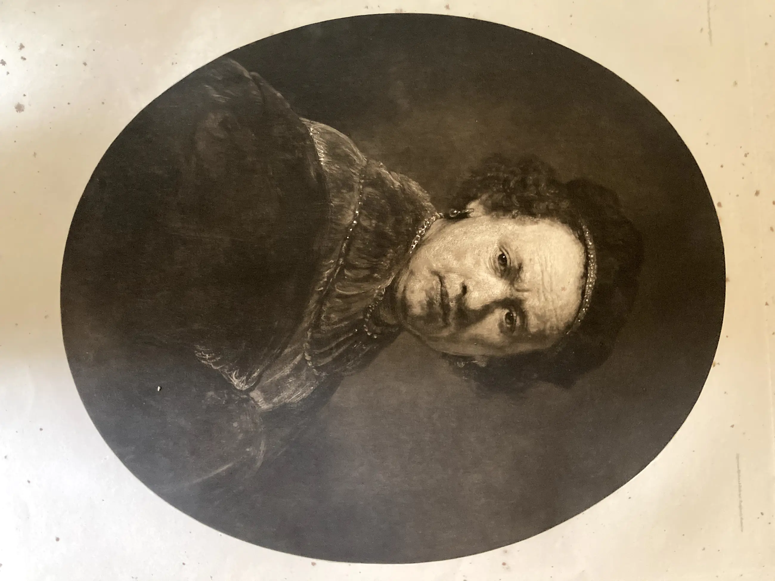 De portefeuille bevat 40 photogravuresvan Rembrandt met bijbehorende catalogus,