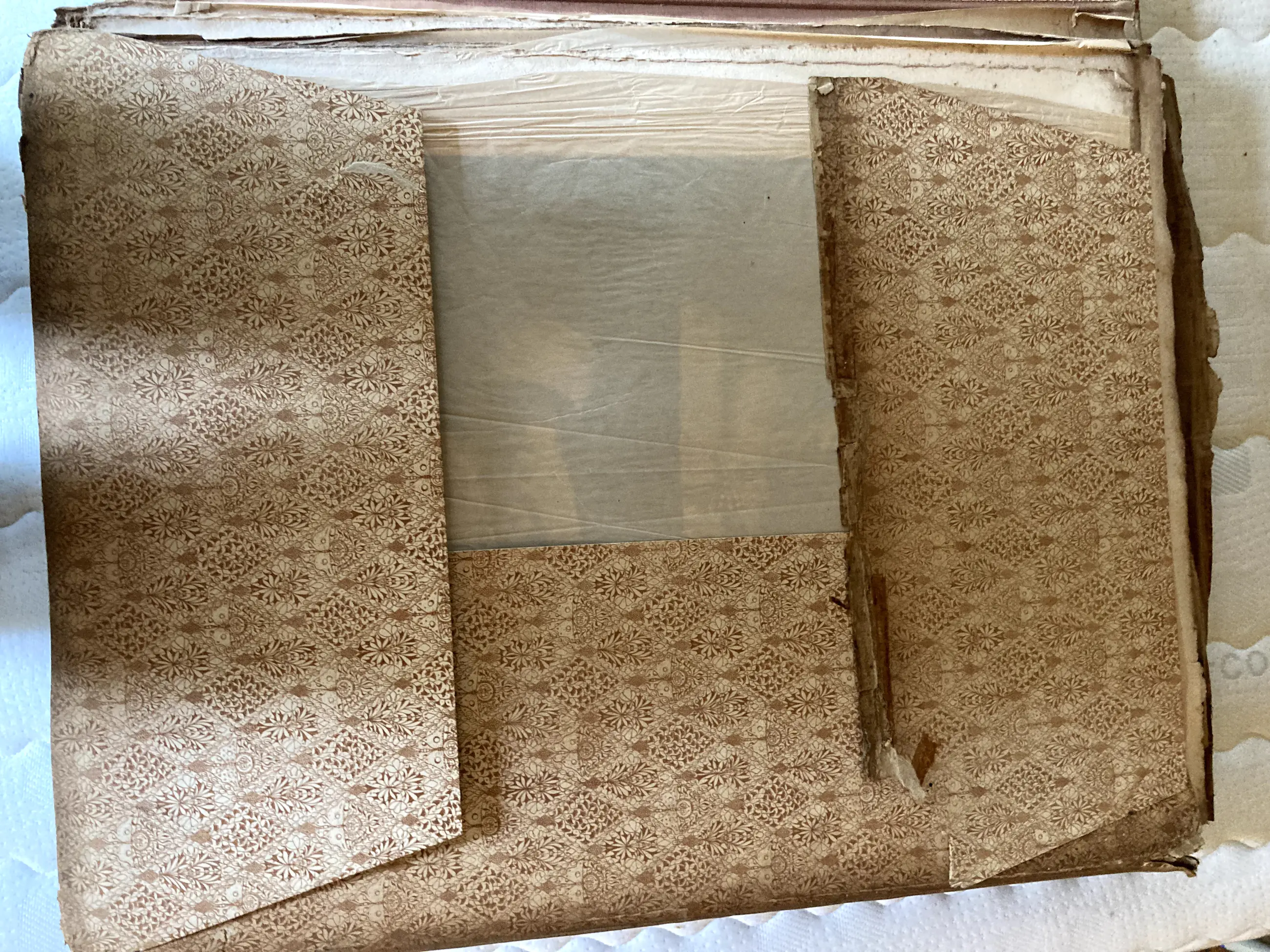 Portefeuille van gebatikt perkament, uitgegeven ter gelegenheid van de inhuldiging in 1898, ontworpen door C.A. Lion Cachet en uitgegeven door boekhandel Scheltema en Holkema te Amsterdam.