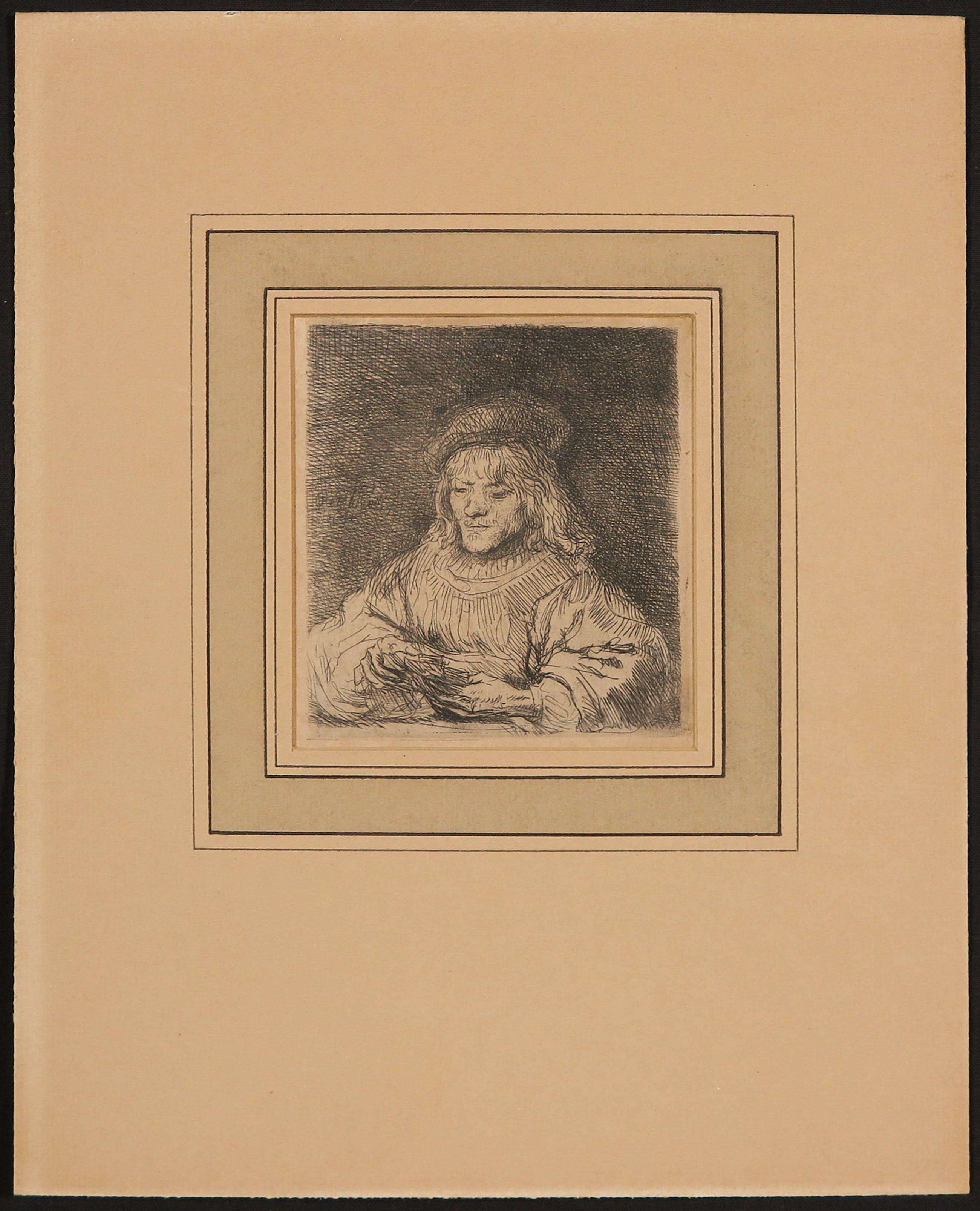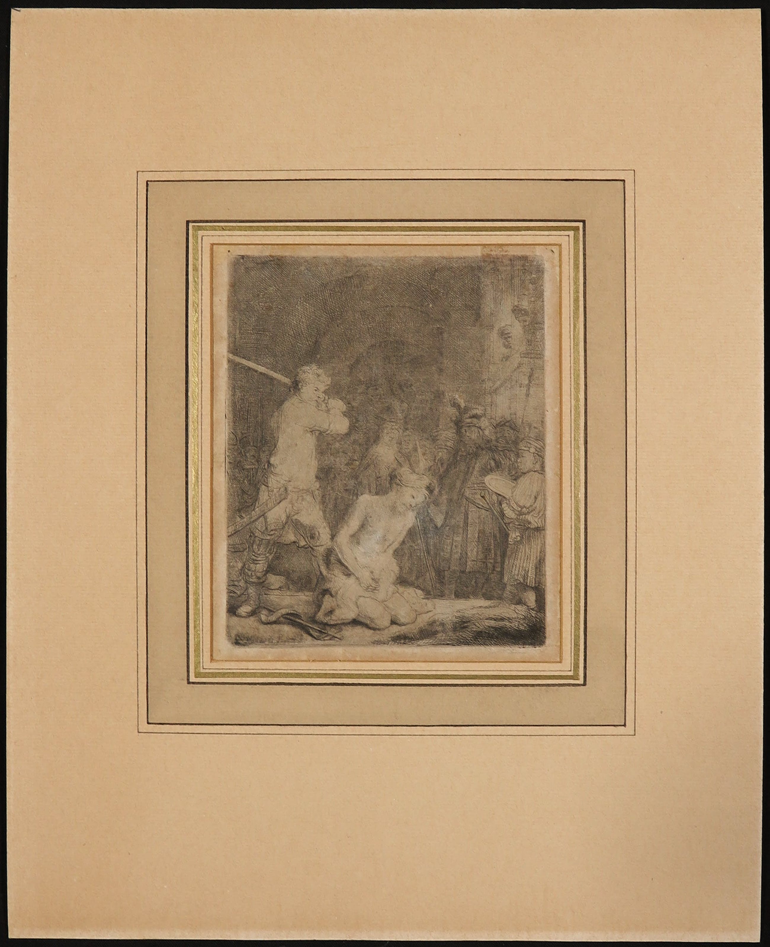| In goede staat. Lichte verkleuring van de bladen. Het werk met voorstelling van Johannes de Doper heeft een kleine restauratie (zie foto achterzijde) en een lichte vlek (0,5 cm onduidelijk wat dit is) midden-onder. | |||