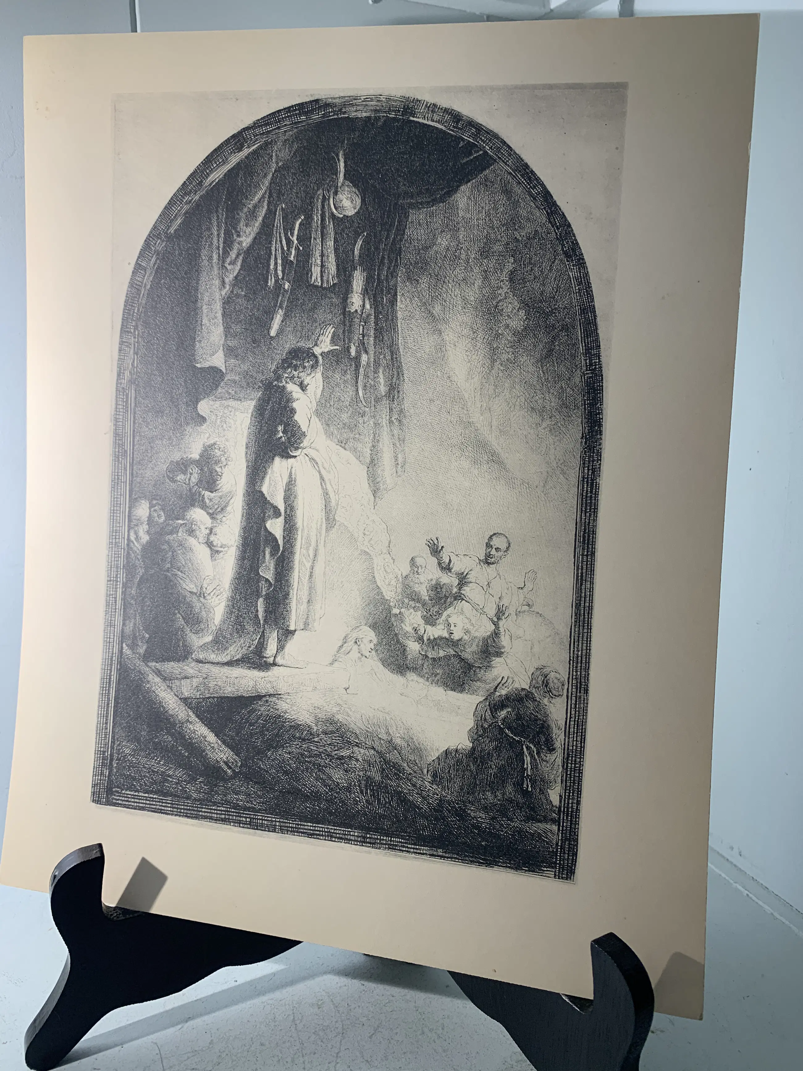 Lichtdruk uit 1914 van de ets 'De opwekking van Lazarus: grote plaat' van Rembrandt van Rijn.