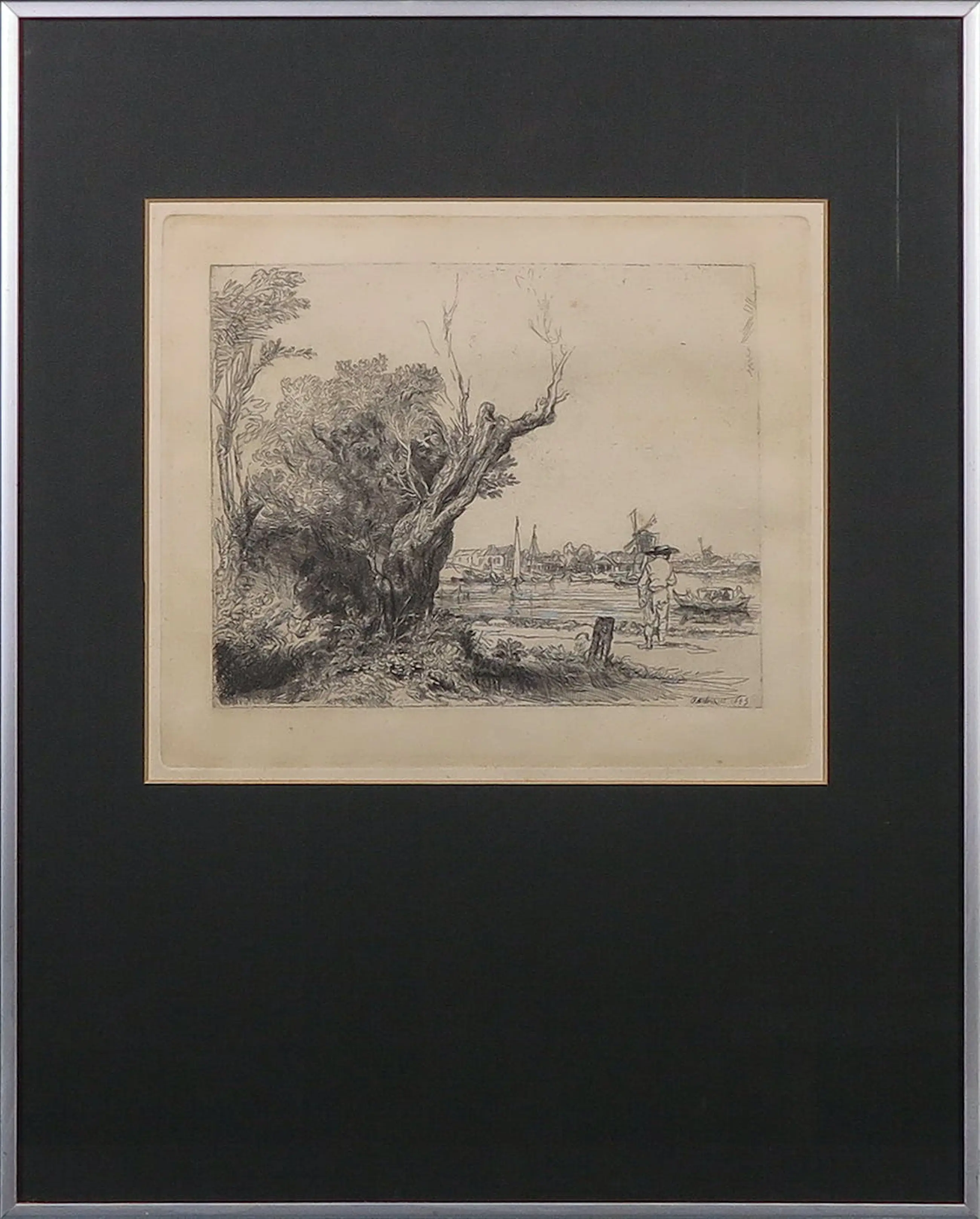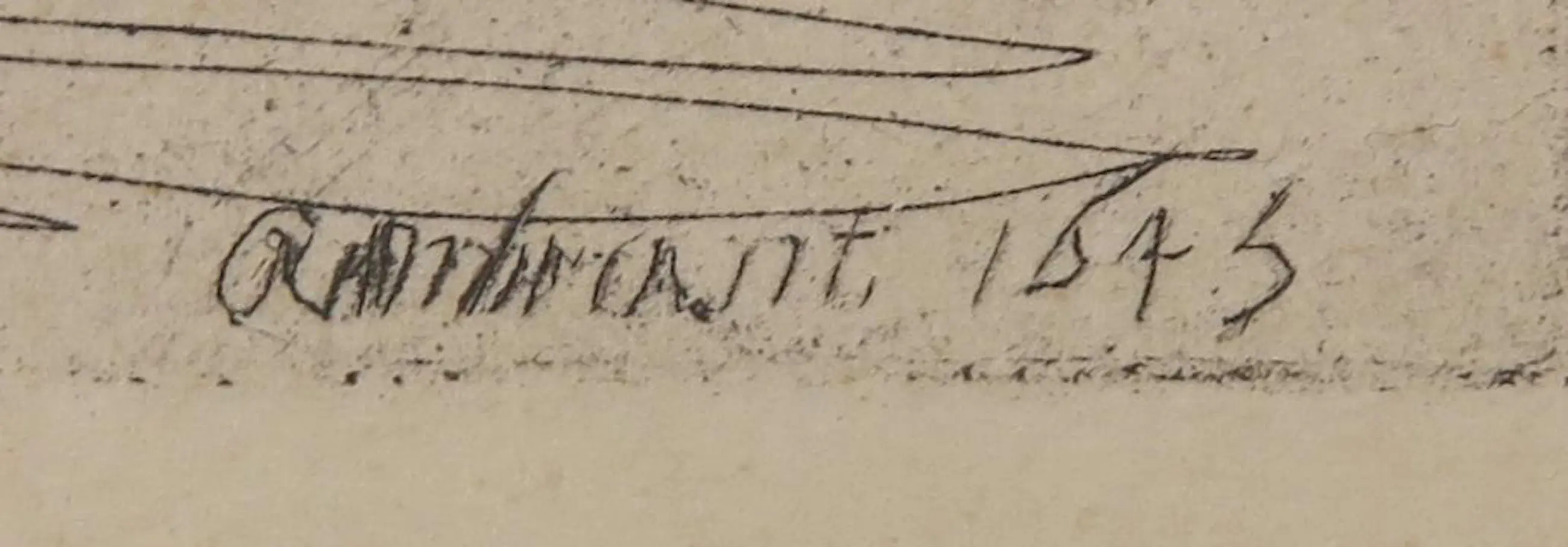 Latere druk van De Omval van Rembrandt van Rijn. Dit werk komt origineel uit 1645. In het papier is een watermerk te zien dat het gaat om een nadruk (facsimile druk) uit Berlijn. Zie de bijgevoegde foto.