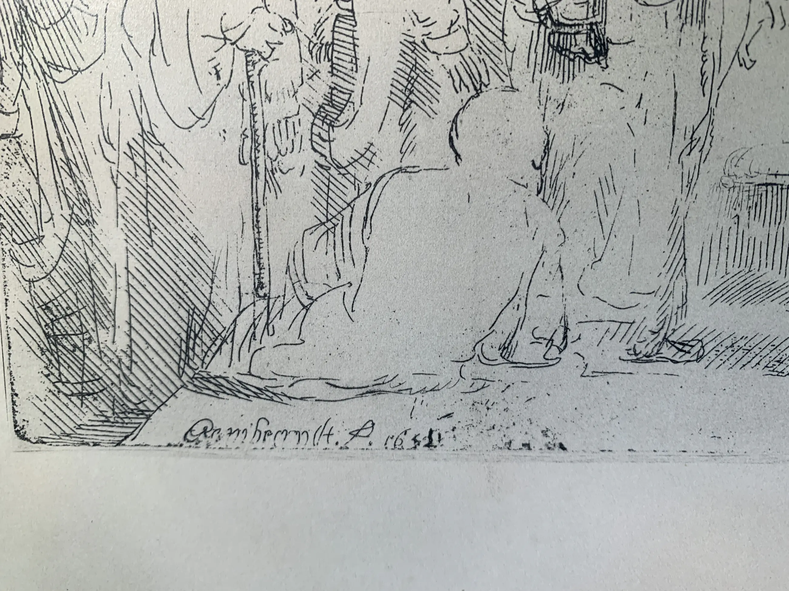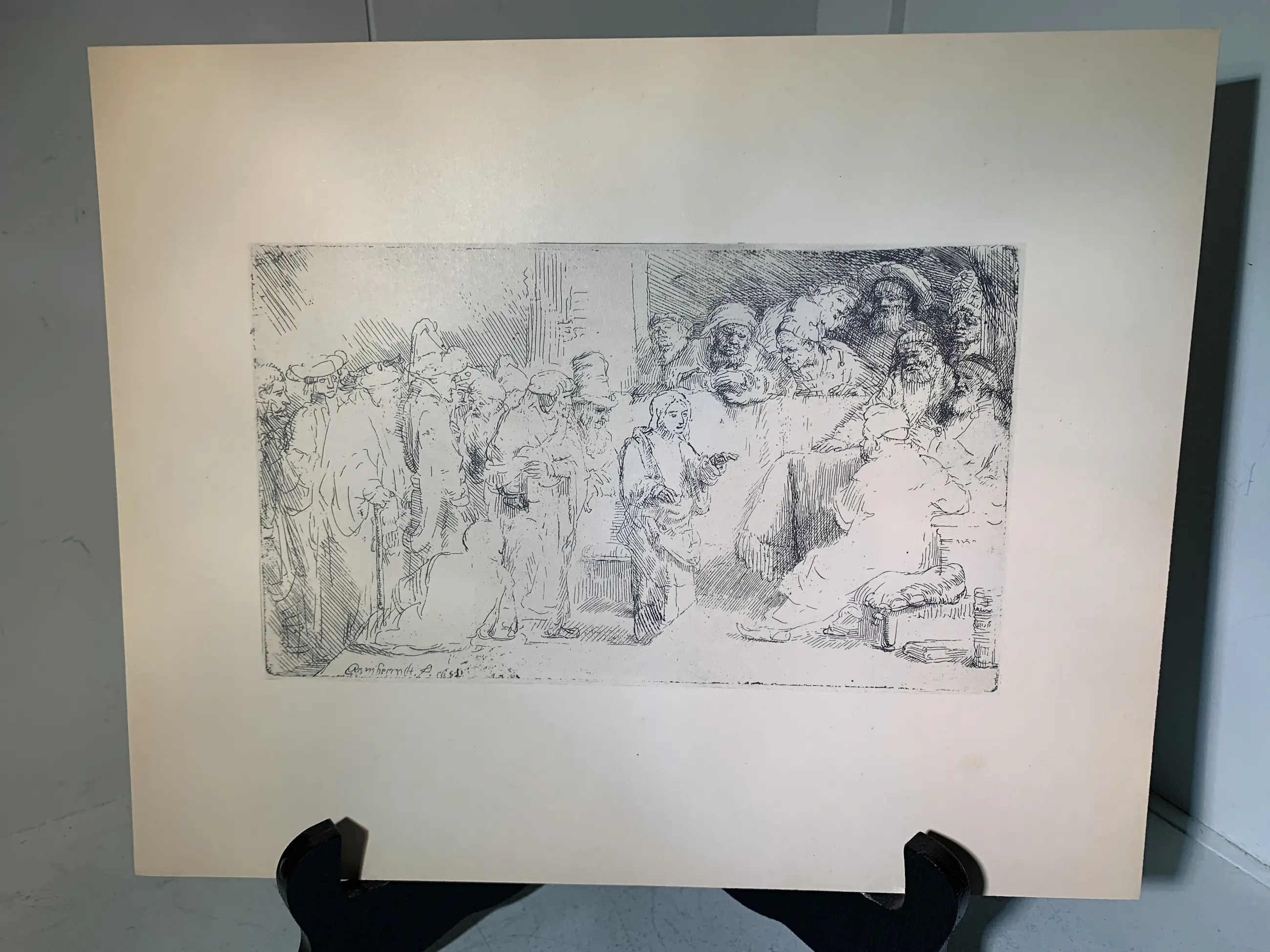 Techniek: Lichtdruk/Ets (Lichtdruk is een vorm van fotolithografie waarbij de drukplaat wordt geprepareerd met behulp van een bichromaat procédé. Het proces houdt in dat delen met ongeharde gelatine water vasthouden en vettige inkt afstoten, terwijl geharde delen inkt opnemen en deze vasthouden in een karakteristiek wormachtig scheurtjespatroon)
