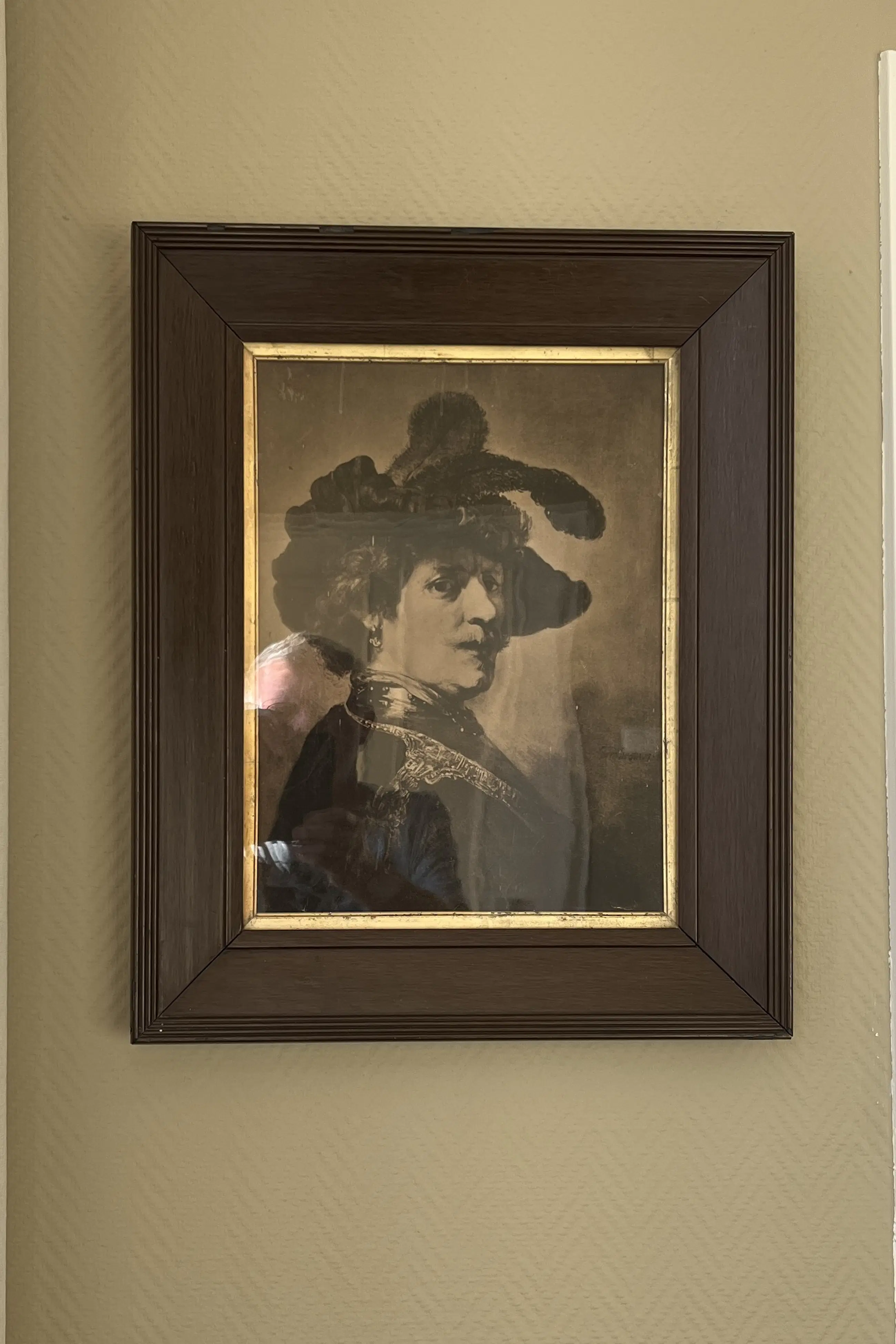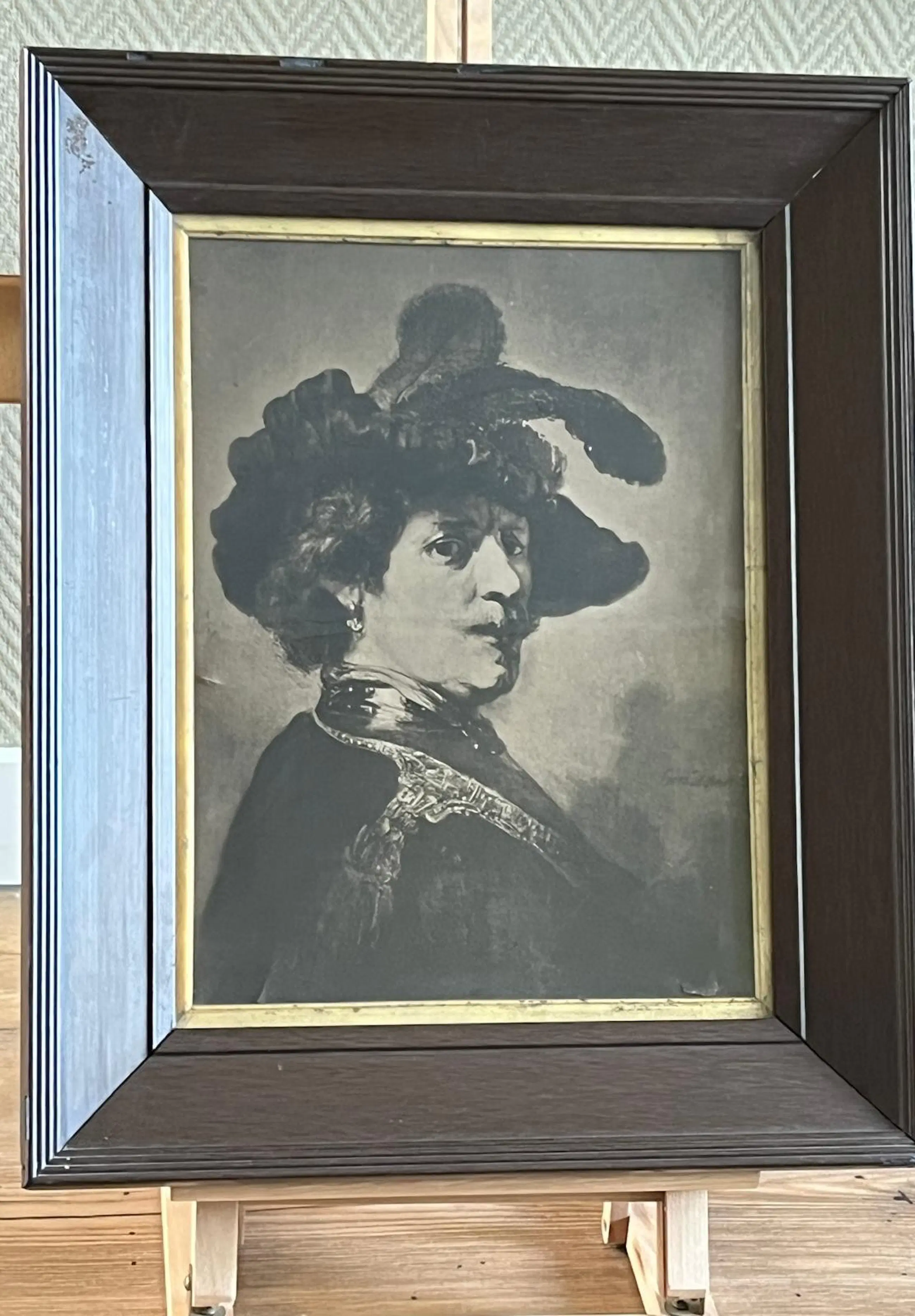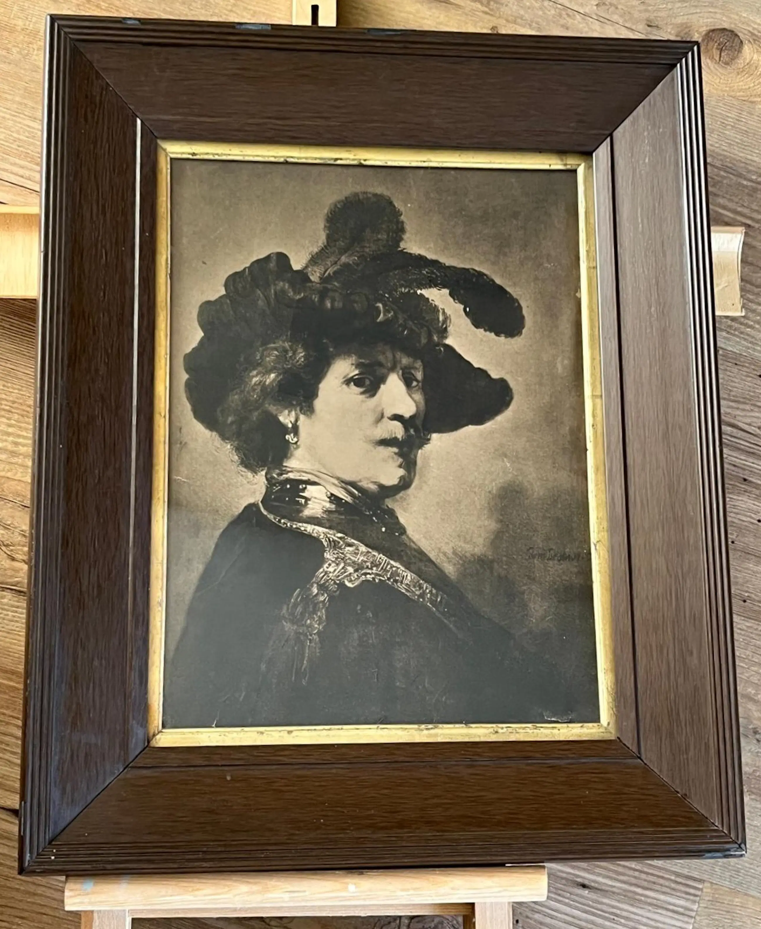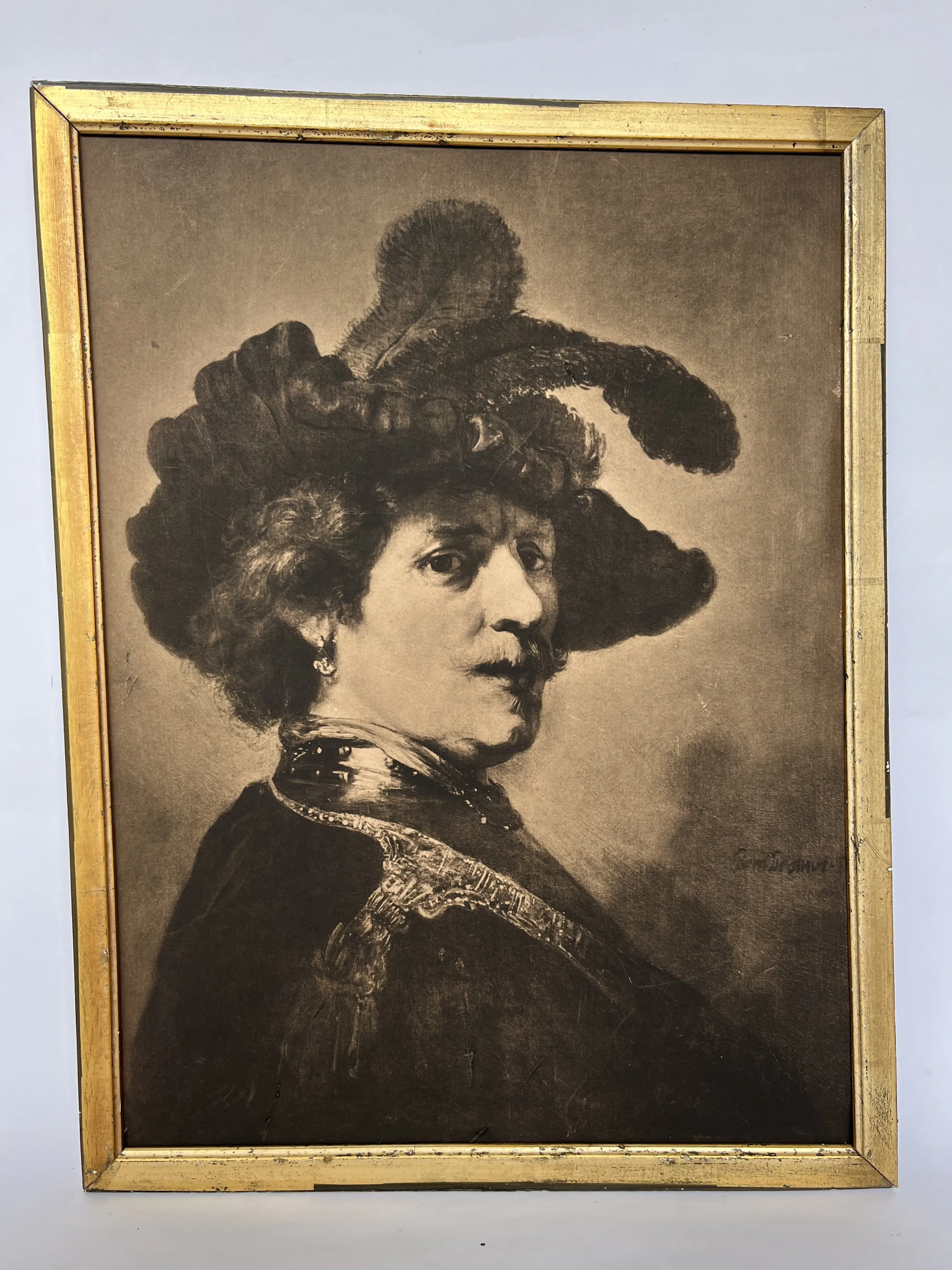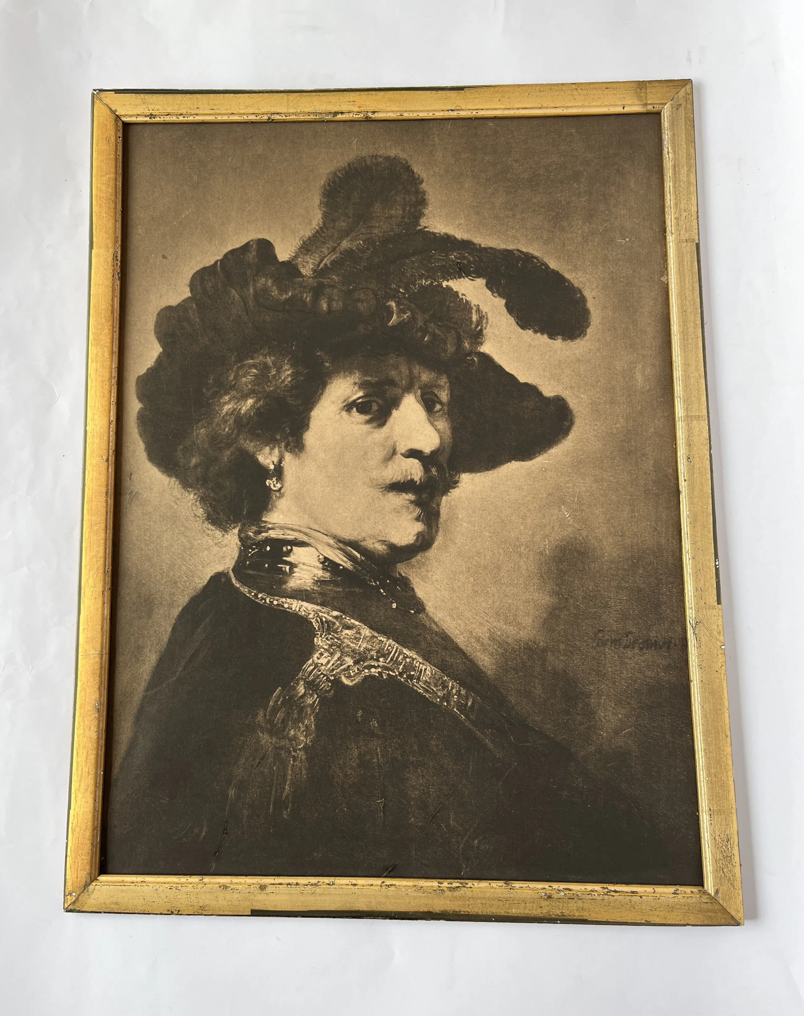 De lijst en prent tonen sporen van ouderdom